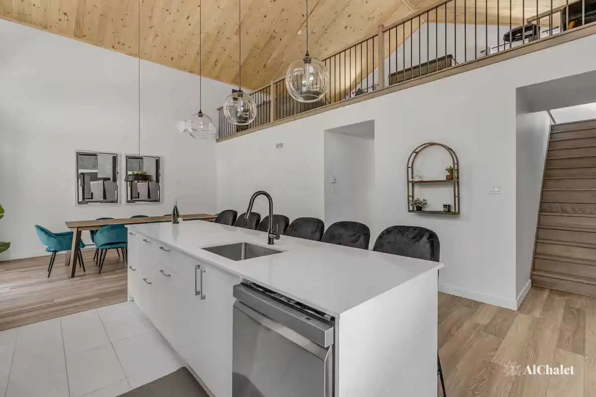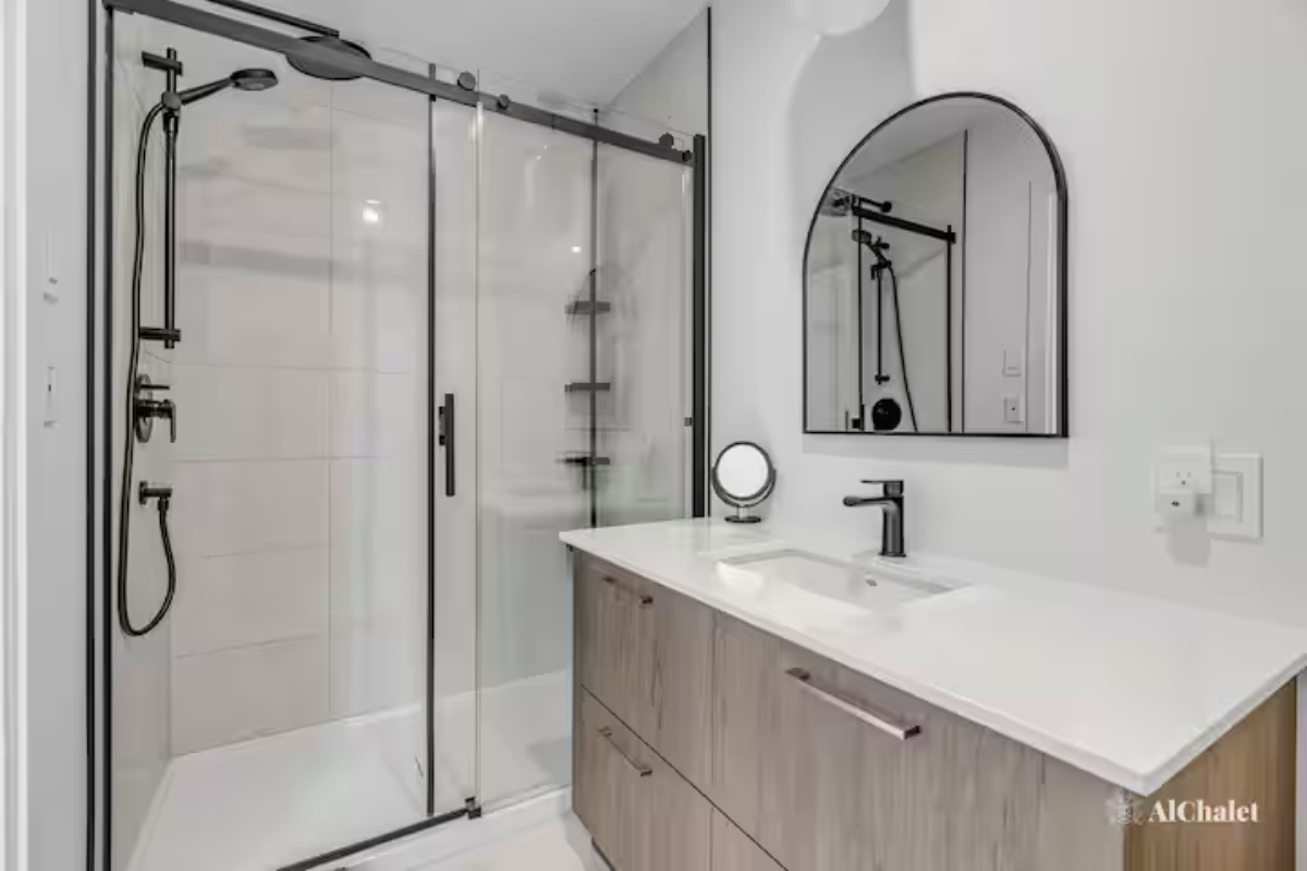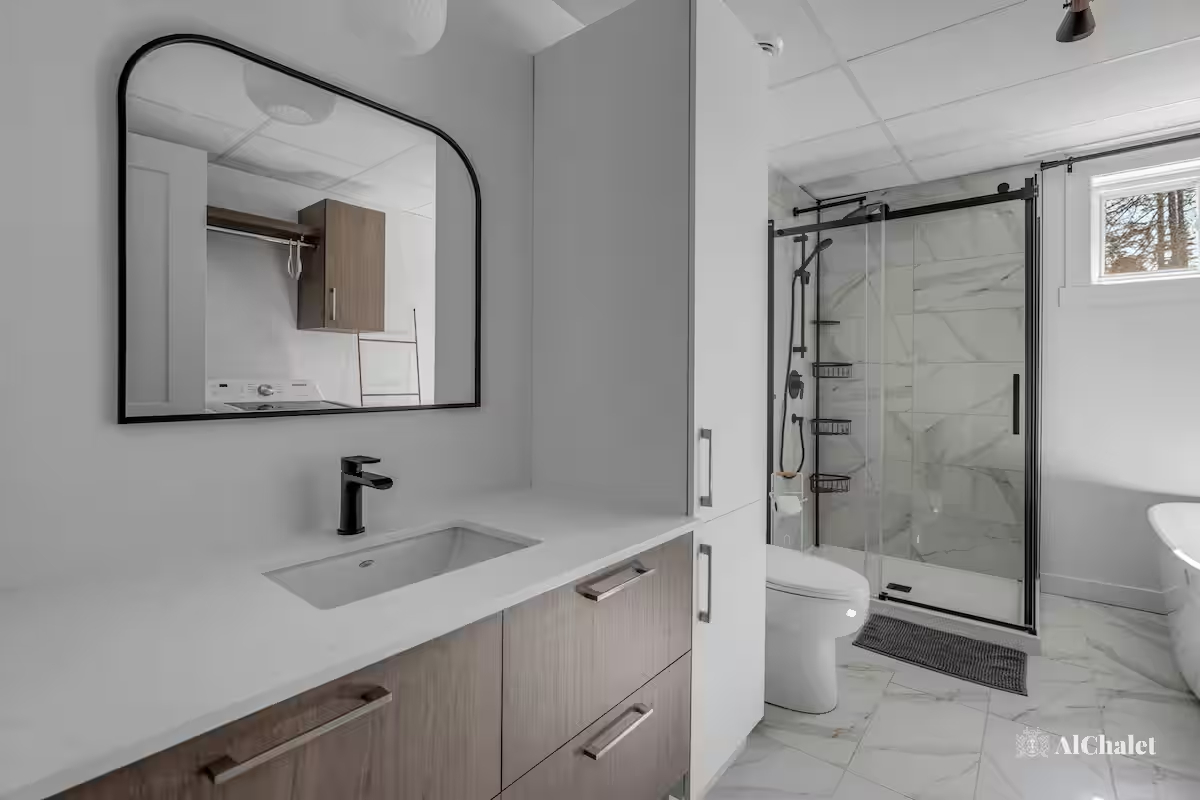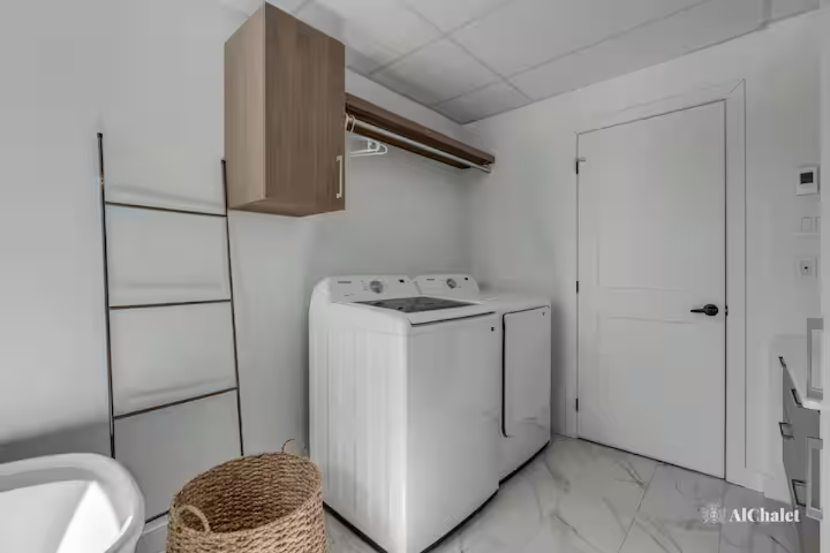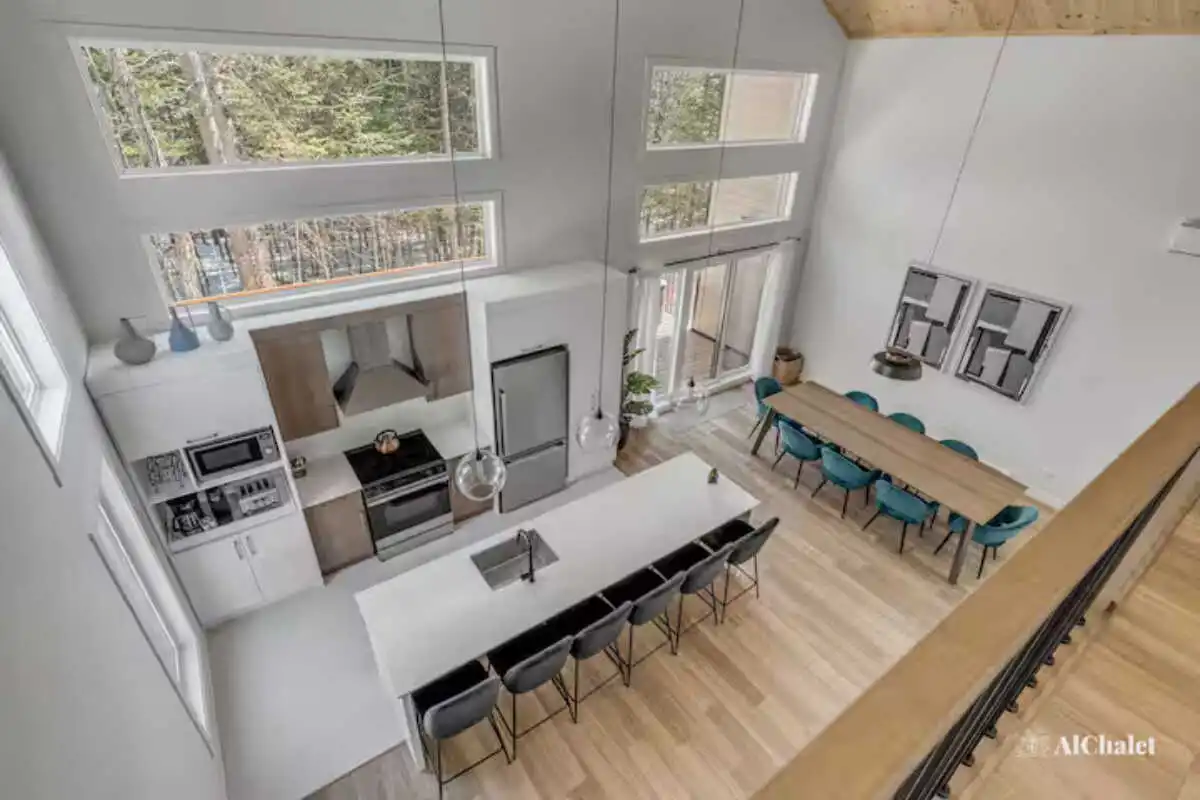 Nos clients ont accès à l'ensemble du chalet et à toutes ses installations. Vous pourrez également profiter des espaces communs avec la terrasse extérieure avec foyer, de la piscine chauffée (été seulement), du spa et du sauna.