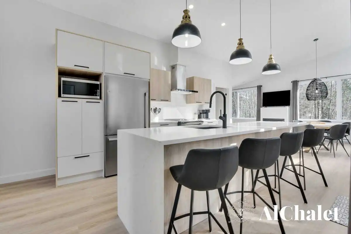 Astral a été pensé comme un refuge pour celles et ceux qui cherchent à s’éloigner du bruit sans pour autant renoncer au confort. Trois chambres chaleureuses, deux salles de bain modernes, une cuisine ouverte où préparer les repas devient un vrai plaisir… Ici, chaque détail compte. Le salon, avec son foyer invitant, devient vite le point de ralliement pour discuter, lire ou simplement ne rien faire.