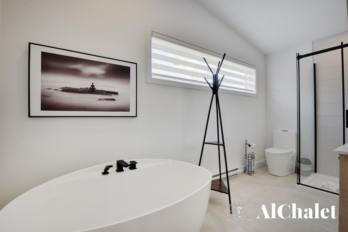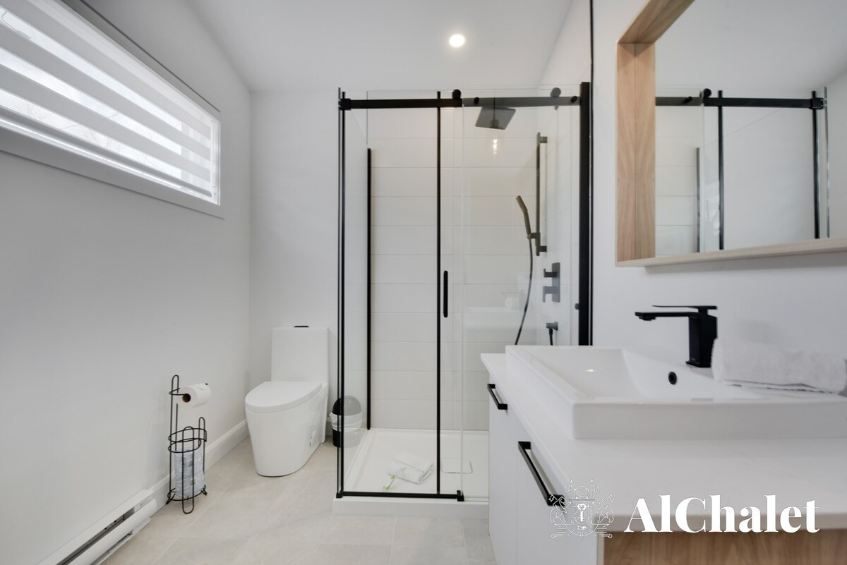 Nos clients ont accès à l'ensemble du chalet et à toutes ses installations. Vous pourrez également profiter des espaces communs avec le salon avec télé et billard, de la terrasse extérieure, de la piscine chauffée (été seulement), du sauna et du spa.