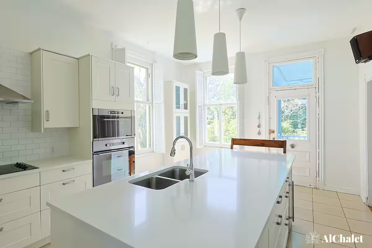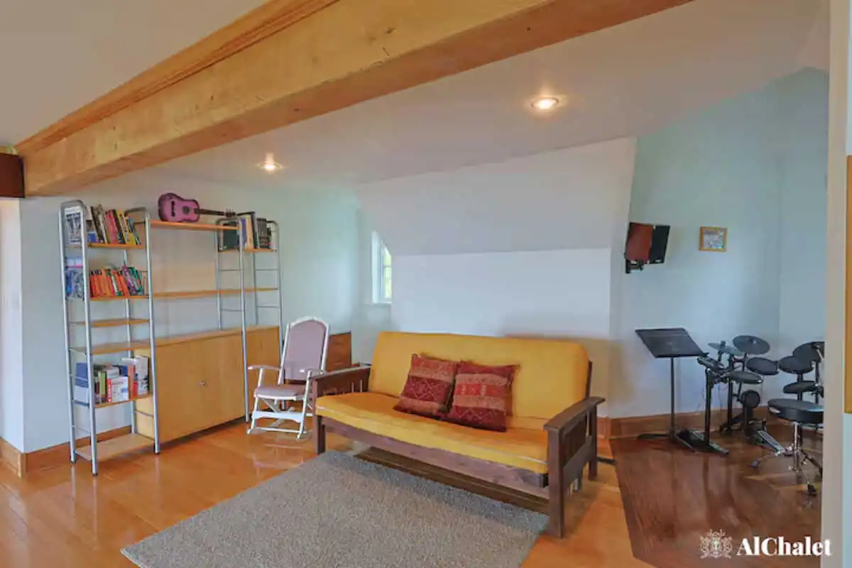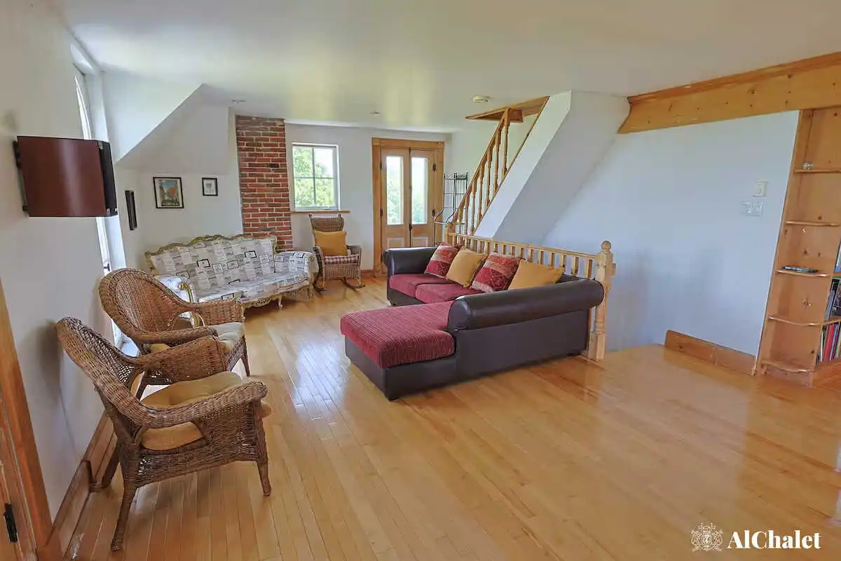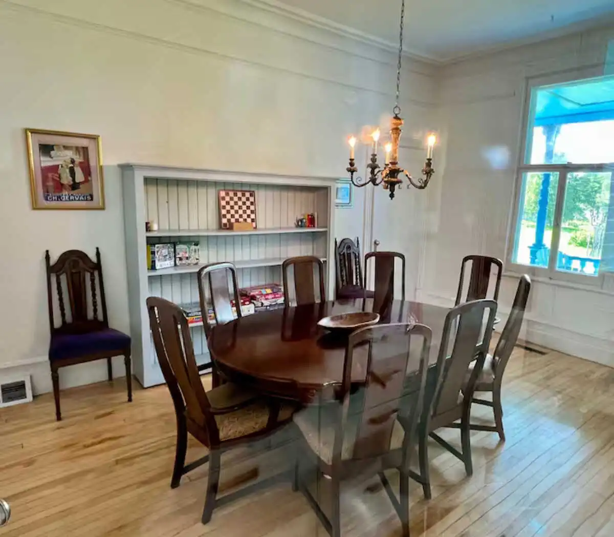 Vous aurez le privilège de profiter pleinement de toute la maison et de ses équipements. Détendez-vous dans les espaces communs chaleureux, comme le salon équipé d’une télévision, la salle de jeux avec billard et babyfoot, ou encore la grande terrasse extérieure et son trampoline dans le jardin. Pour des moments magiques, rendez-vous au gazebo qui offre une vue sur le fleuve Saint-Laurent.
