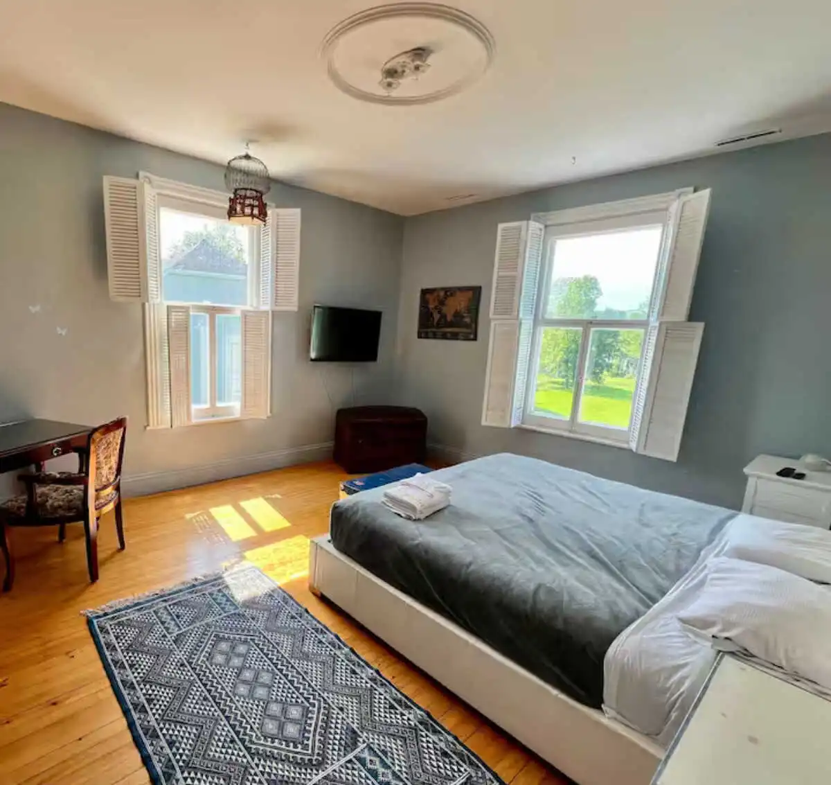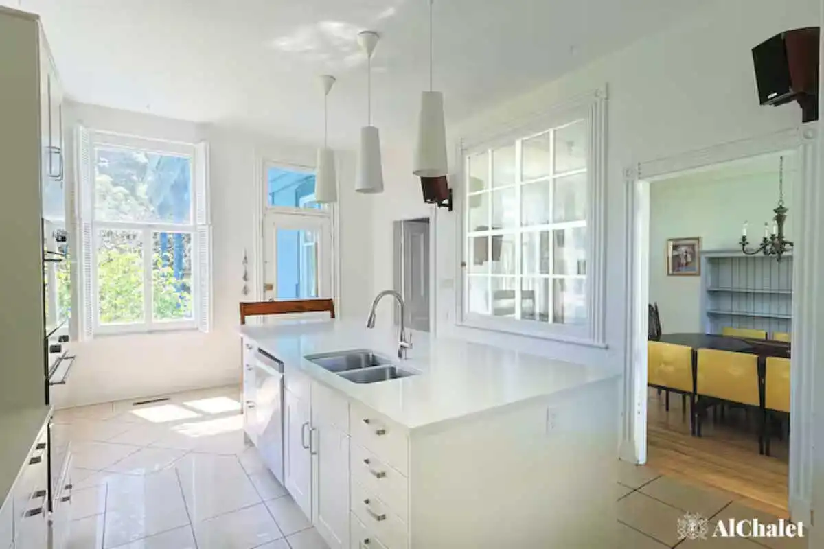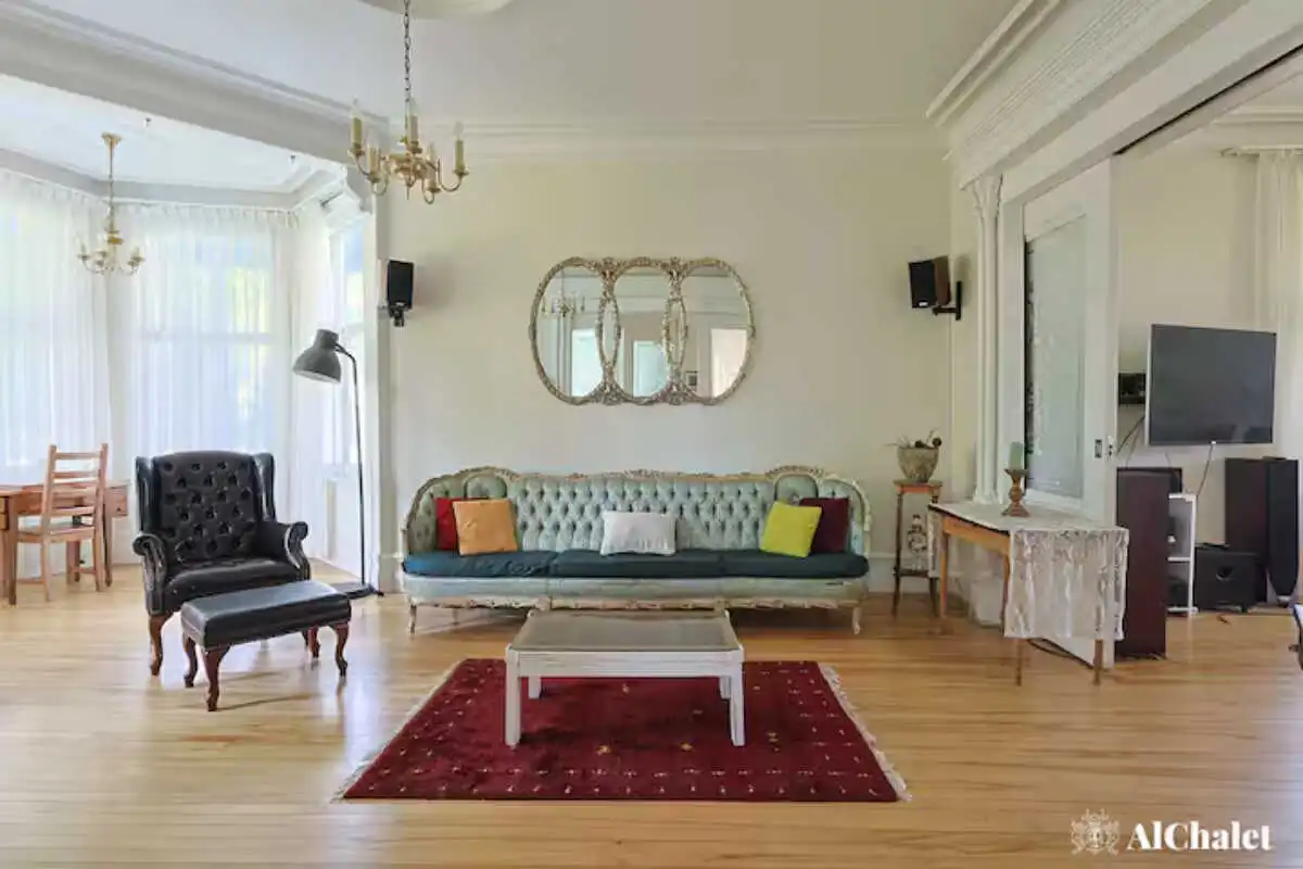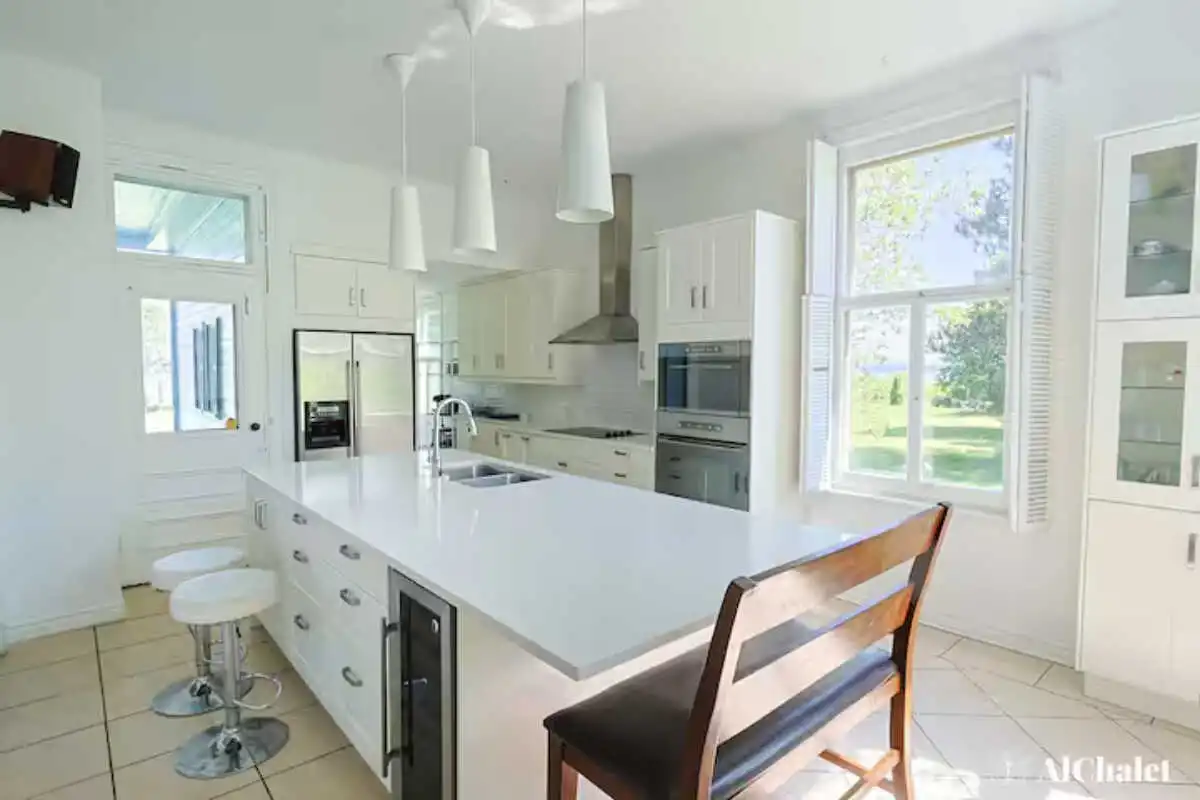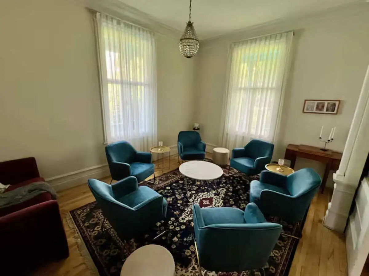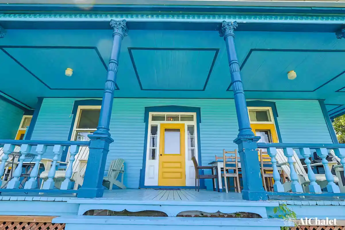 Dès que vous franchissez le seuil de cette demeure au bleu éclatant, l’élégance des hauts plafonds et l’architecture victorienne vous plongent dans une atmosphère raffinée, digne des plus beaux manoirs d’époque. Pensée pour accueillir jusqu’à 15 personnes, la maison propose 7 chambres confortables, 2 salles de bain complètes et 2 salles d’eau, garantissant intimité et bien-être à chaque invité. La vaste galerie ceinturant la maison invite à savourer des moments de convivialité, que ce soit pour un apéritif entre amis ou une pause café face au fleuve scintillant.