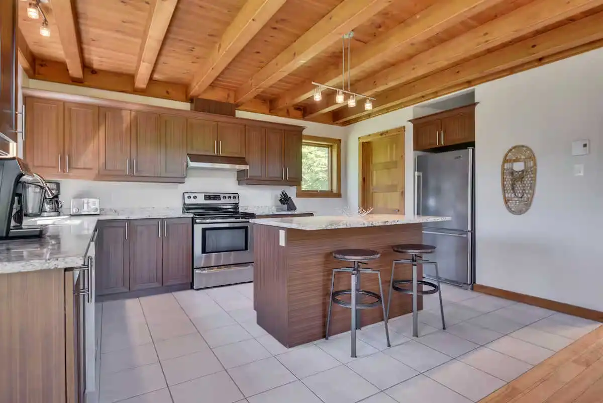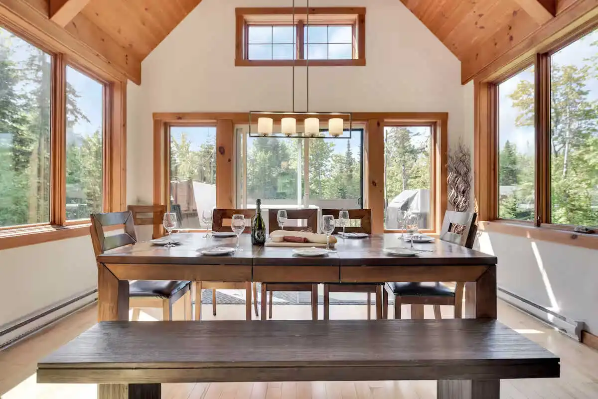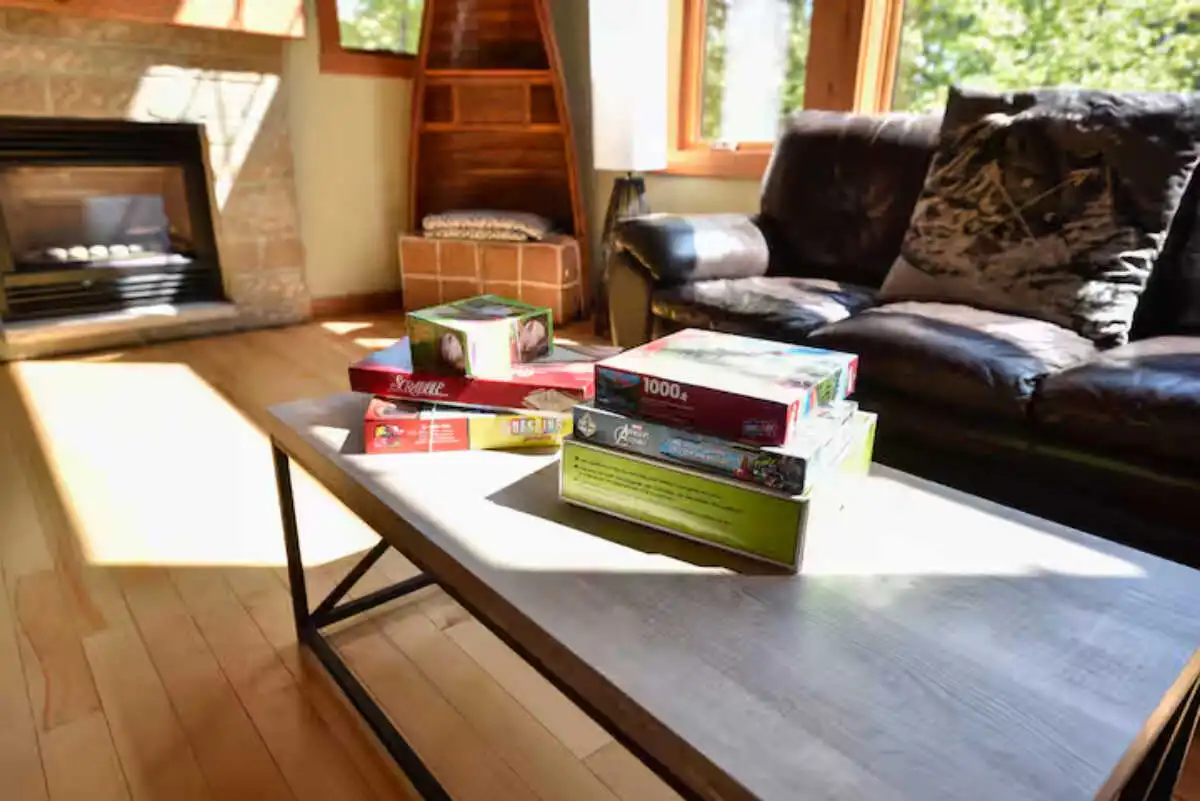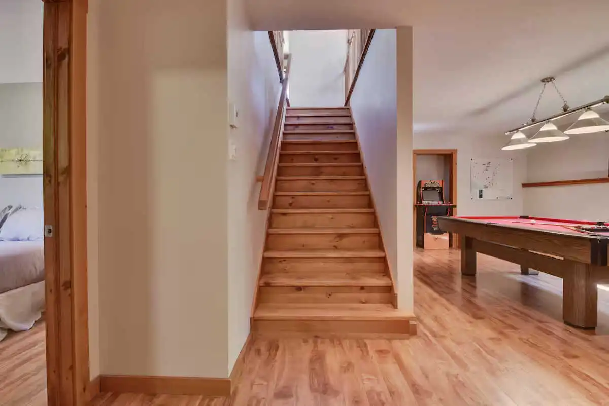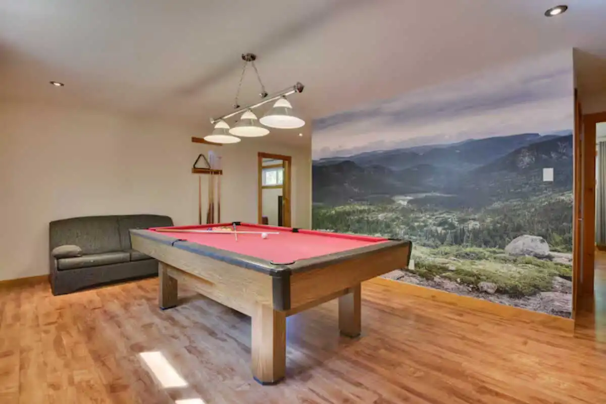 Ce chalet chaleureux et luxueux vous séduira avec ses cinq chambres et ses trois salles de bains, pouvant accueillir jusqu'à 12 personnes. Détendez-vous dans le spa et profitez du jeu d'arcade à quatre joueurs. Le salon est accueillant avec sa cheminée et son mur en pierre haut de plafond. Profitez d'une partie de billard avec vos proches pour passer un moment agréable.