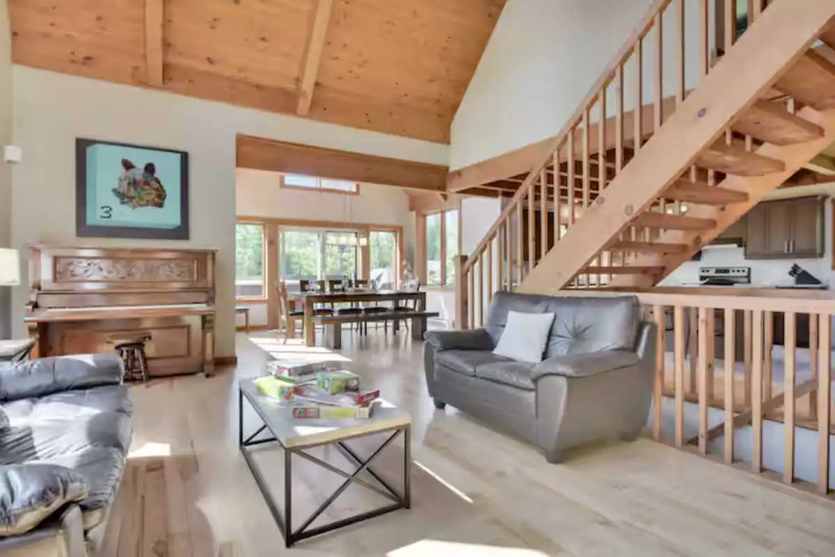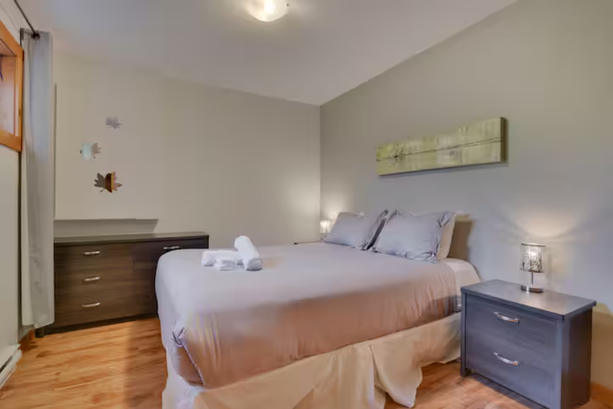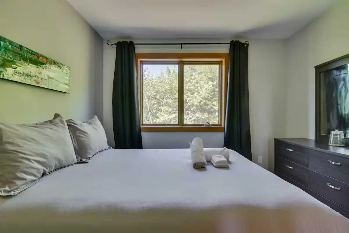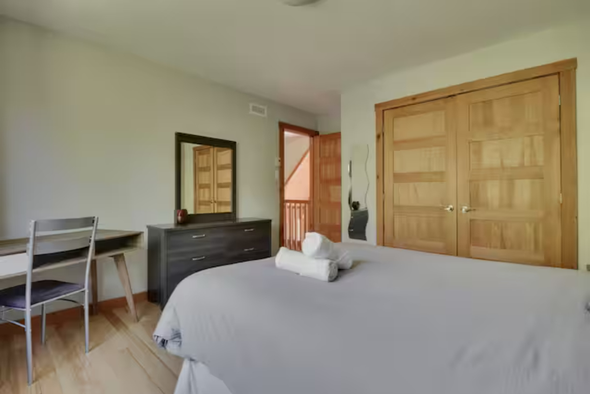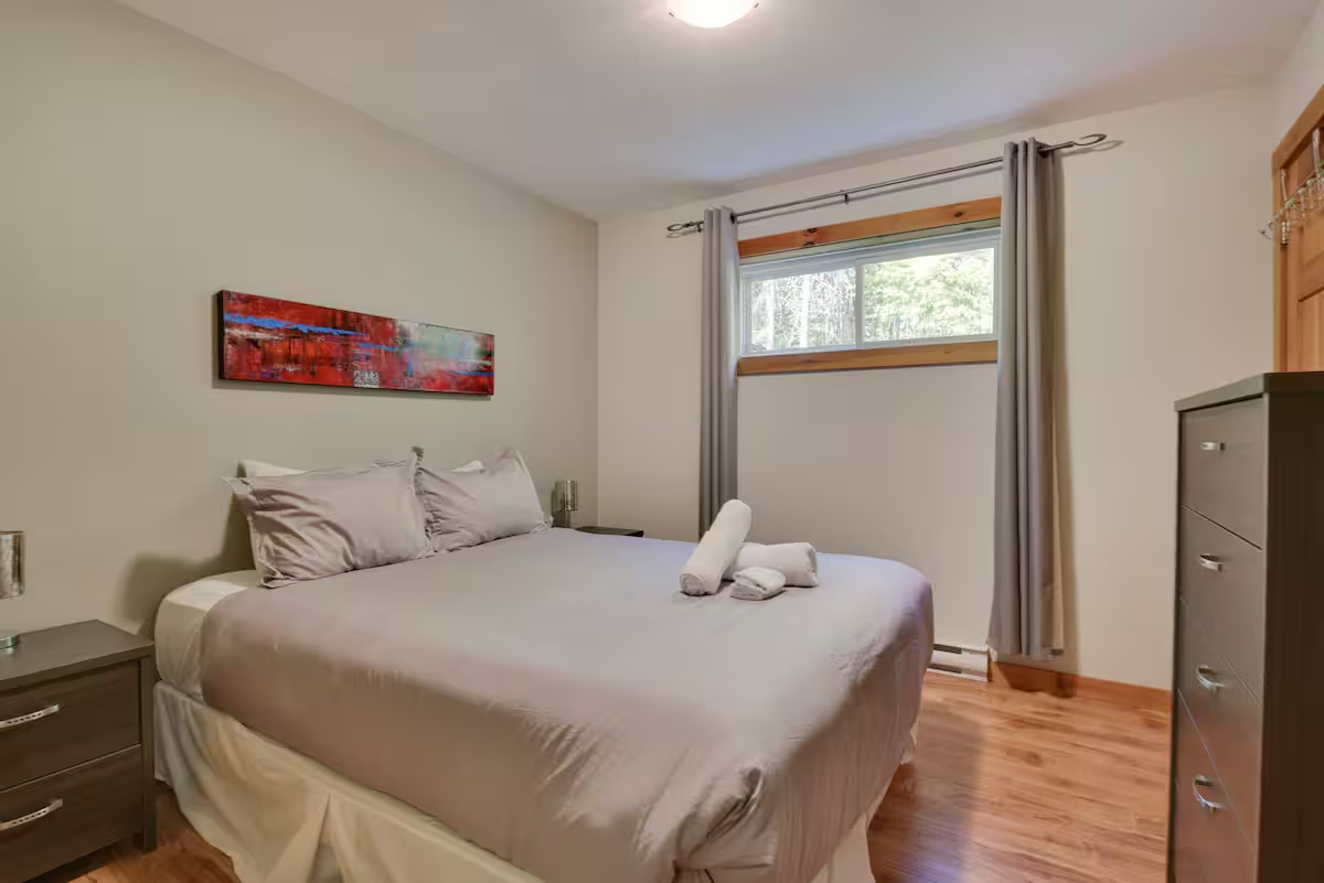 Ce chalet chaleureux et luxueux vous séduira avec ses cinq chambres et ses trois salles de bains, pouvant accueillir jusqu'à 12 personnes. Détendez-vous dans le spa et profitez du jeu d'arcade à quatre joueurs. Le salon est accueillant avec sa cheminée et son mur en pierre haut de plafond. Profitez d'une partie de billard avec vos proches pour passer un moment agréable.