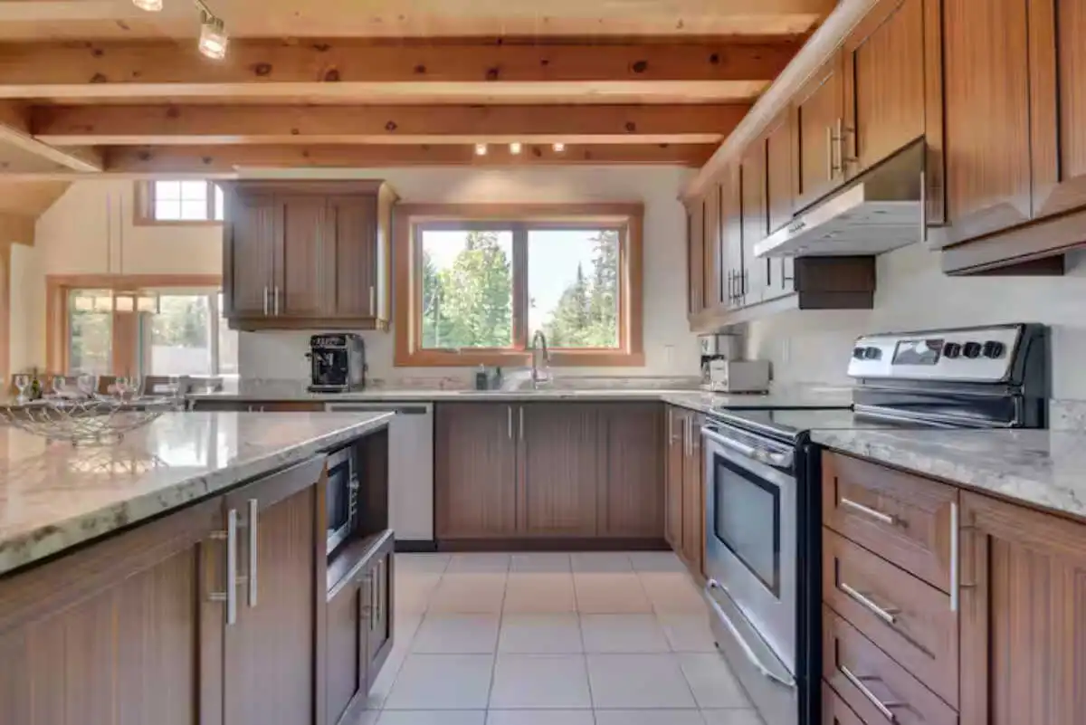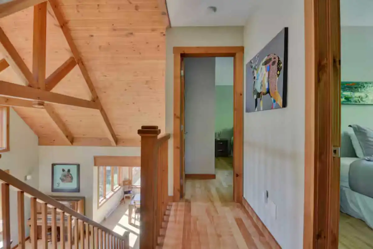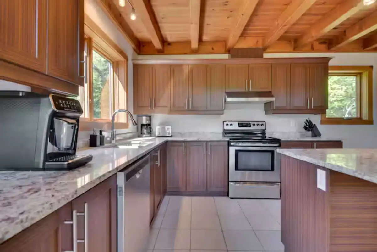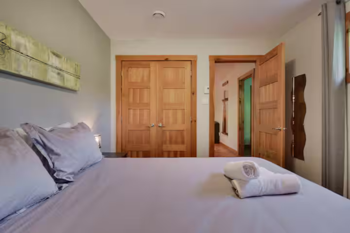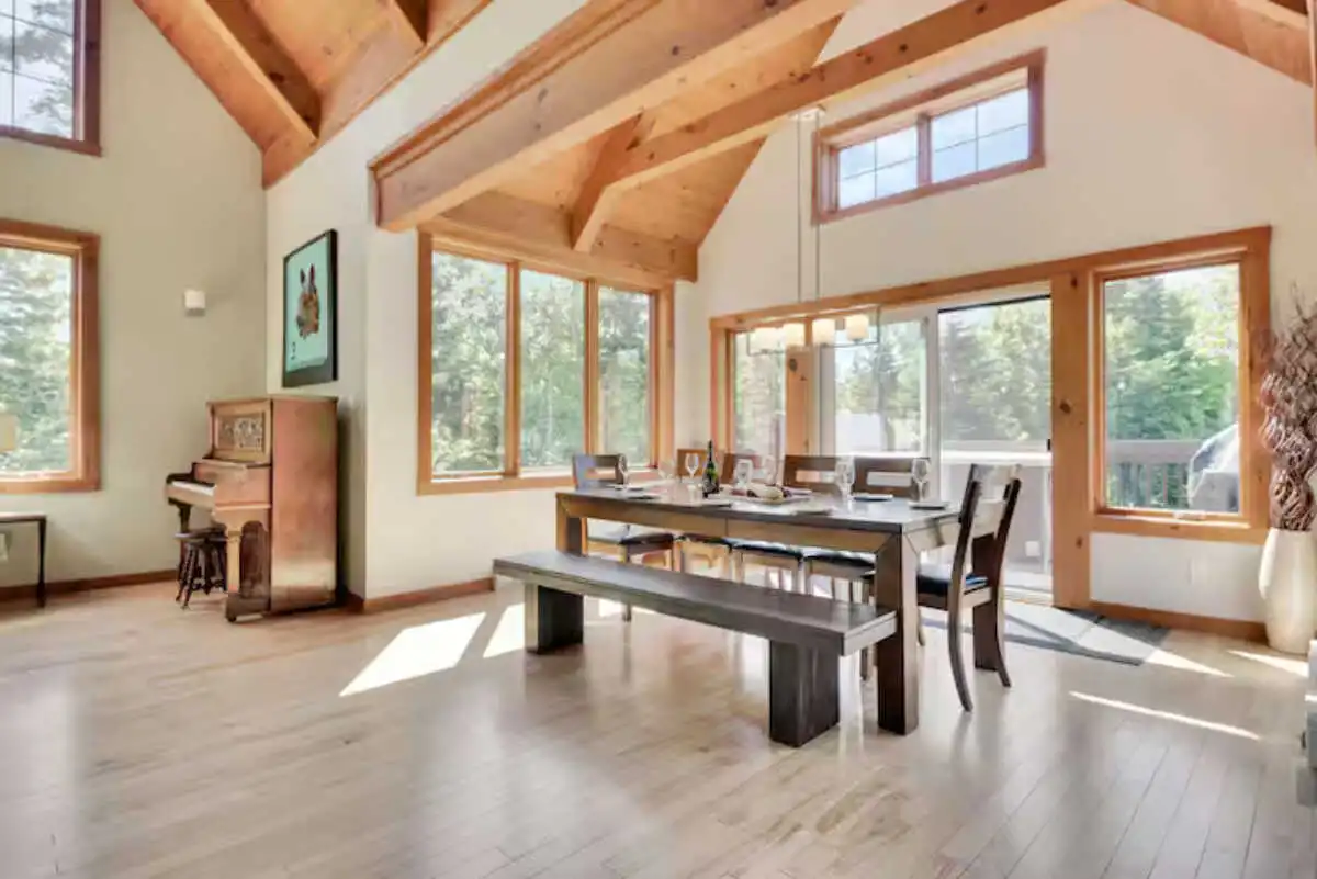 Ce chalet chaleureux et luxueux vous séduira avec ses cinq chambres et ses trois salles de bains, pouvant accueillir jusqu'à 12 personnes. Détendez-vous dans le spa et profitez du jeu d'arcade à quatre joueurs. Le salon est accueillant avec sa cheminée et son mur en pierre haut de plafond. Profitez d'une partie de billard avec vos proches pour passer un moment agréable.