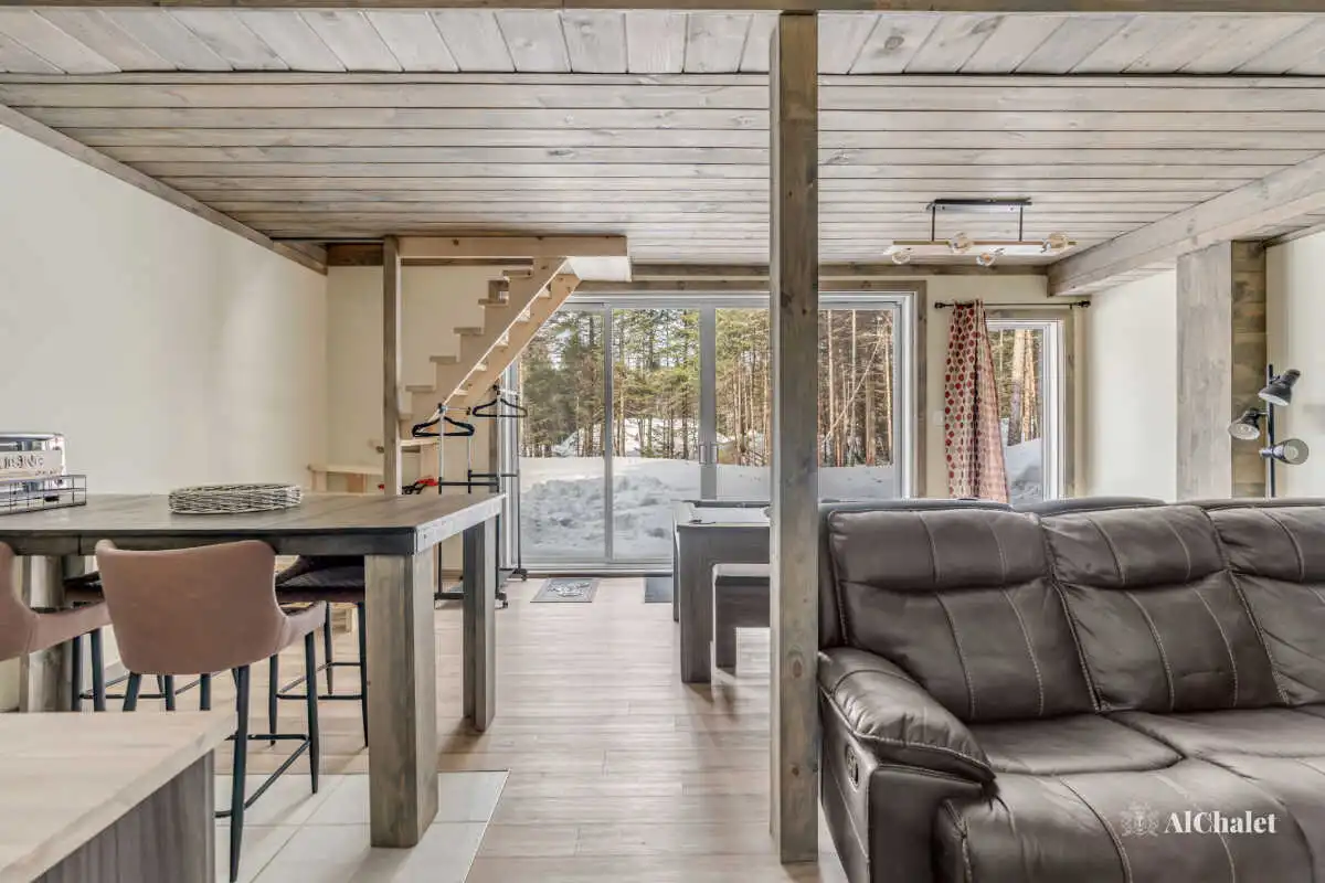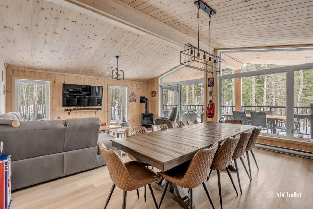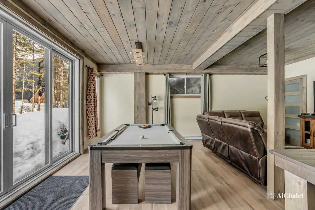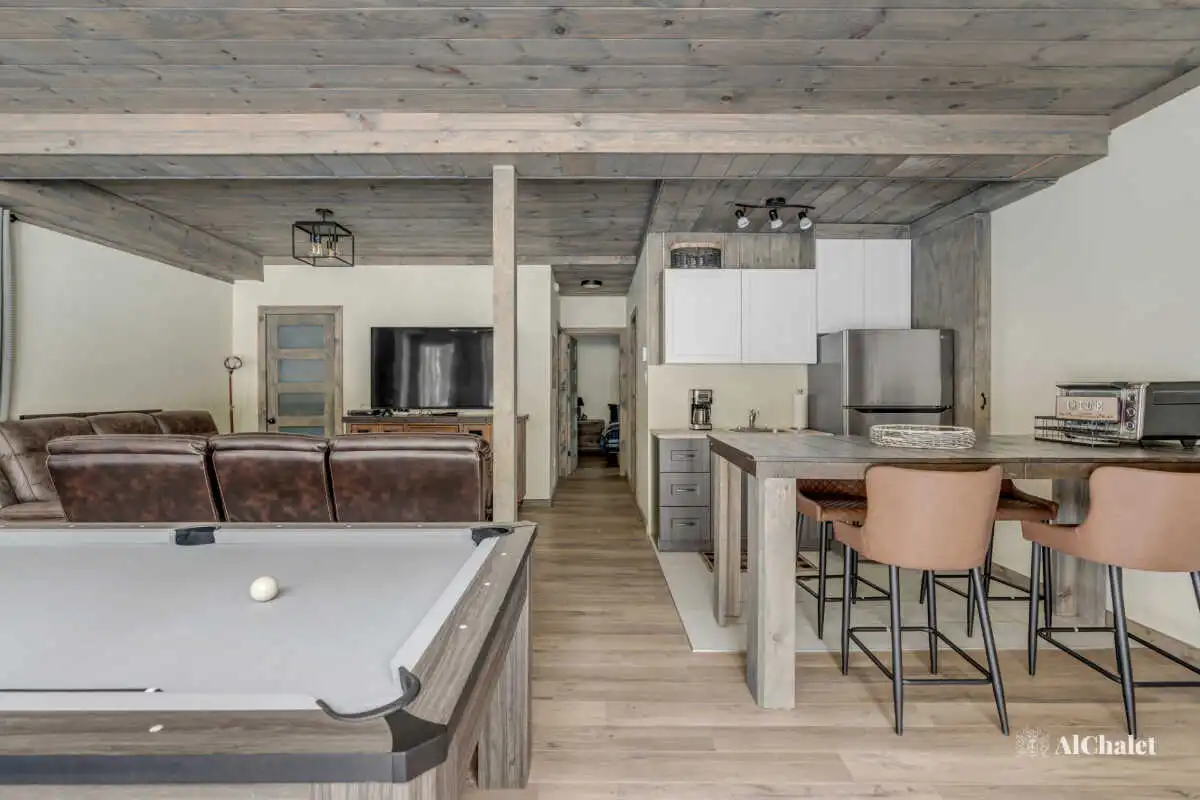 Son design en bois clair, inspiré de la légendaire Route 66, mêle ambiance authentique et charme boisé, créant un cadre à la fois unique et chaleureux. Le salon, doté d’un foyer intérieur, invite à des moments de détente, tandis que les amateurs de jeux apprécieront la table de billard pour des soirées conviviales au second salon au rez-de-jardin.