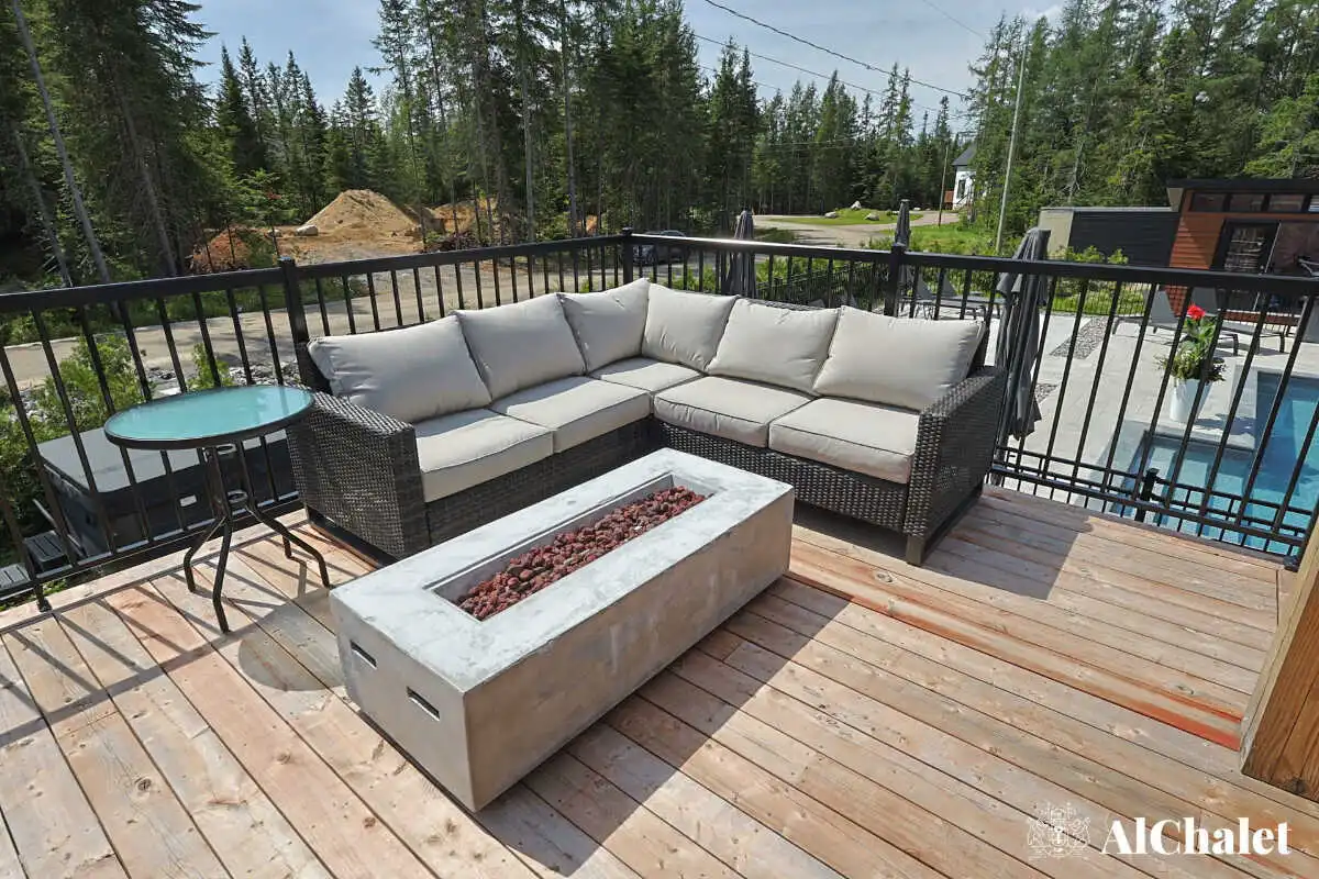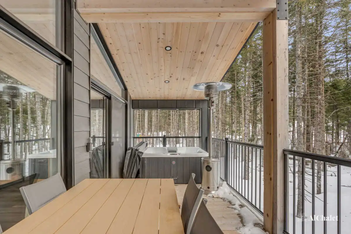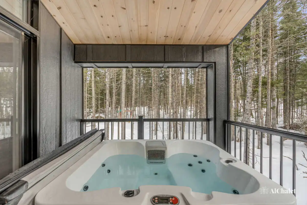 À l’extérieur, la sérénité de la forêt vous enveloppe. Détendez-vous dans le spa privé, loin de l’agitation, bercé par les sons apaisants de la nature.