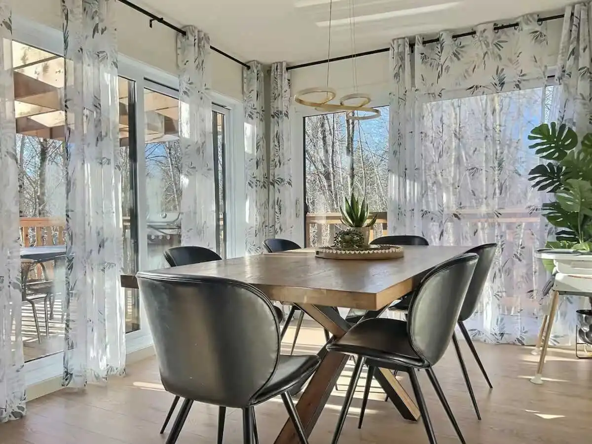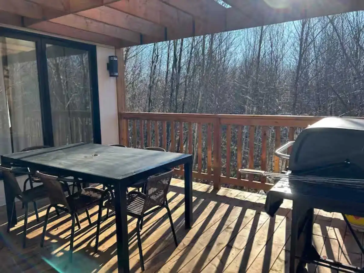 Bienvenue à Arianna, votre sanctuaire au Domaine du Grand Portneuf. Un espace de vie généreux et lumineux s'étend sur une terrasse. Deux chambres et un canapé-lit permettent d'accueillir six personnes. Préparez de bons plats dans la cuisine entièrement équipée et profitez du barbecue. Détendez-vous dans la piscine, le spa, le billard et terminez par une séance de sauna. Équipements supplémentaires : parc de bébé, vaisselle pour enfant et chaise haute.