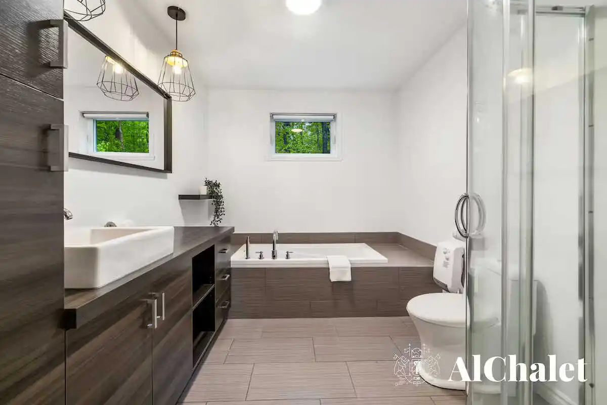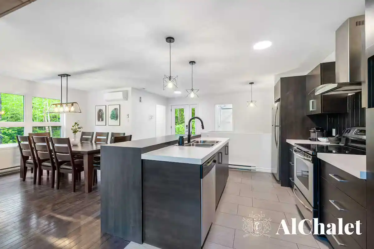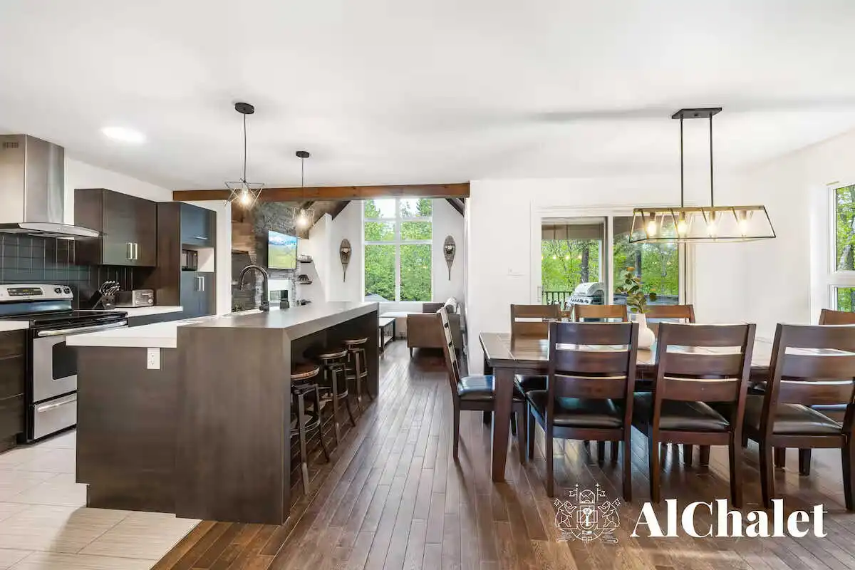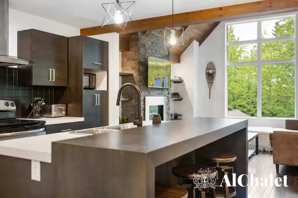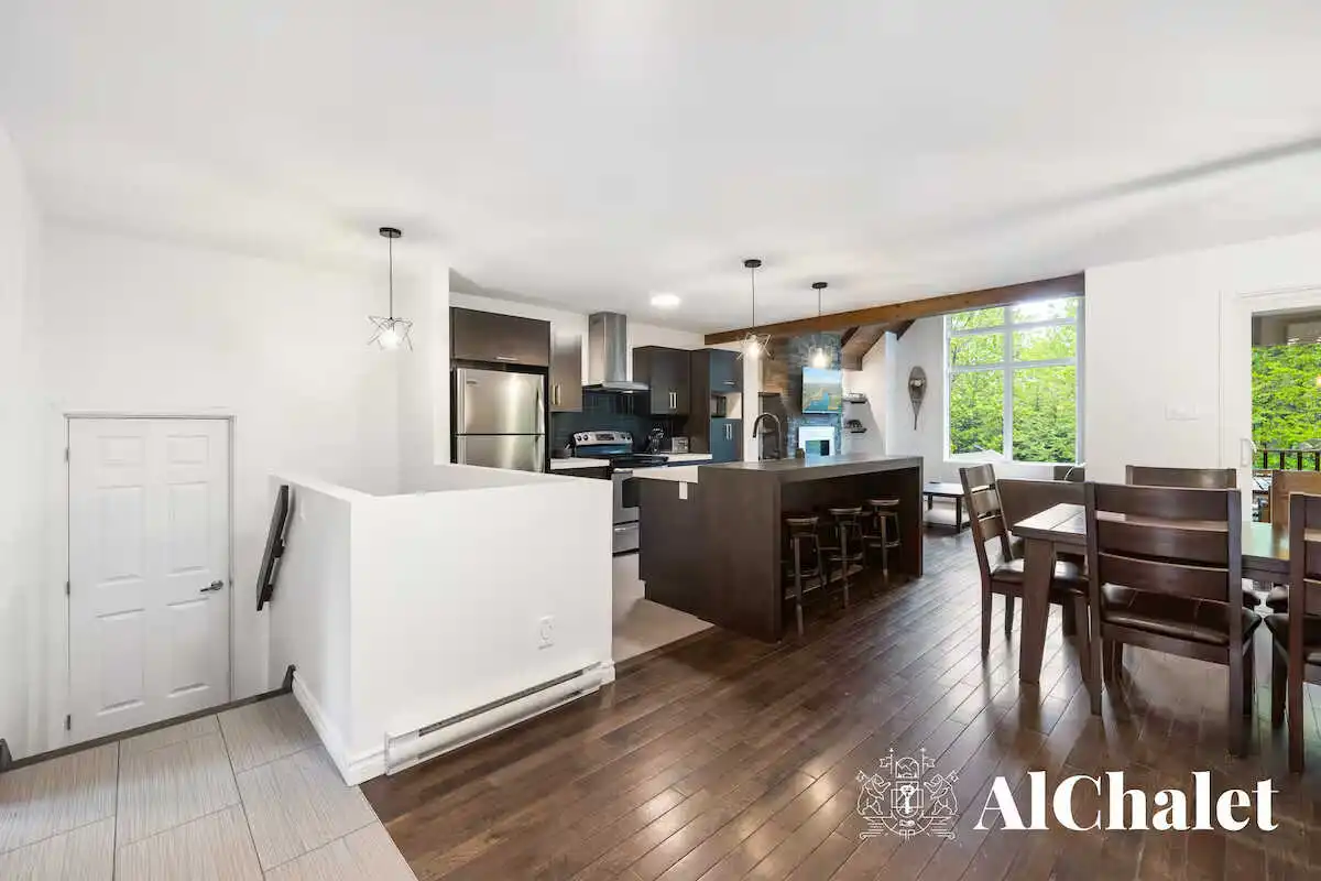 *2023 RENOVATIONS* Dans cette magnifique résidence, vous trouverez deux salons, ainsi que deux grandes cuisines fonctionnelles. En effet, vous aurez deux unités bien distinctes pour séjourner avec deux groupes de 8 en même temps. Dans chaque salon, vous aurez la chance de découvrir un foyer, et 2 spas vous attendent pour vos moments détente.