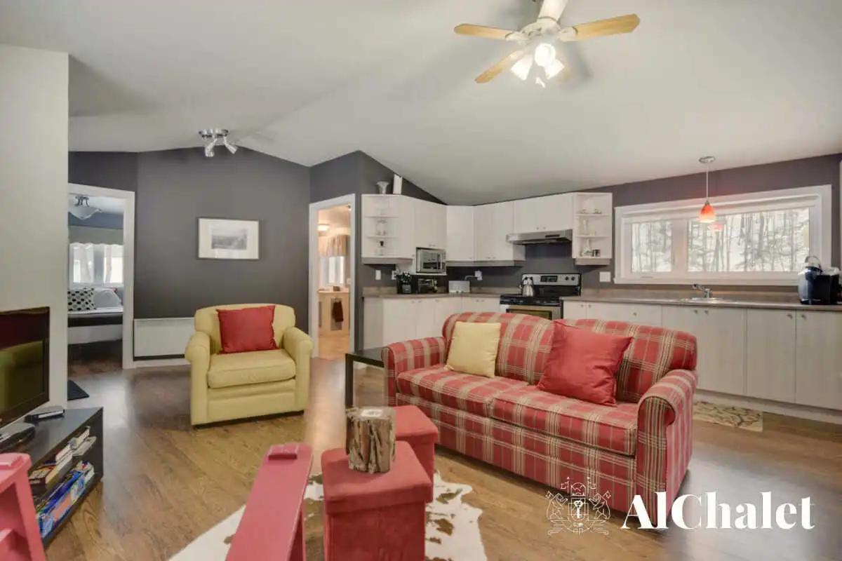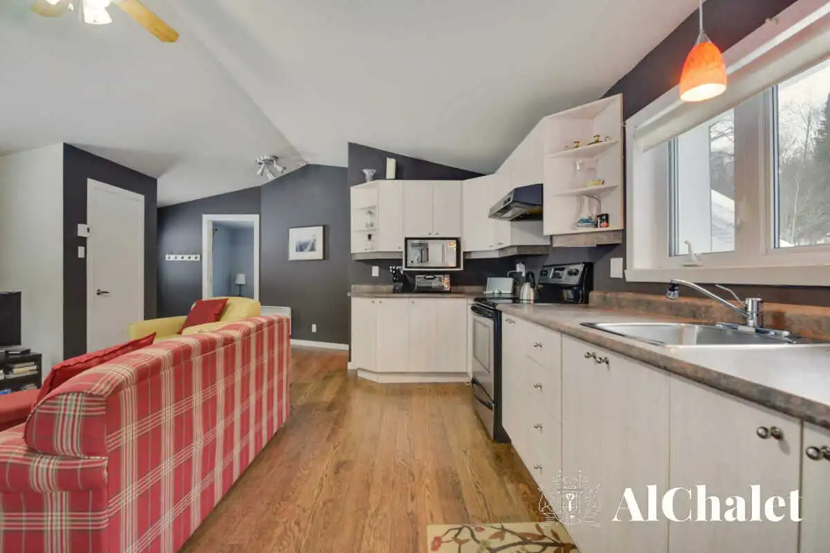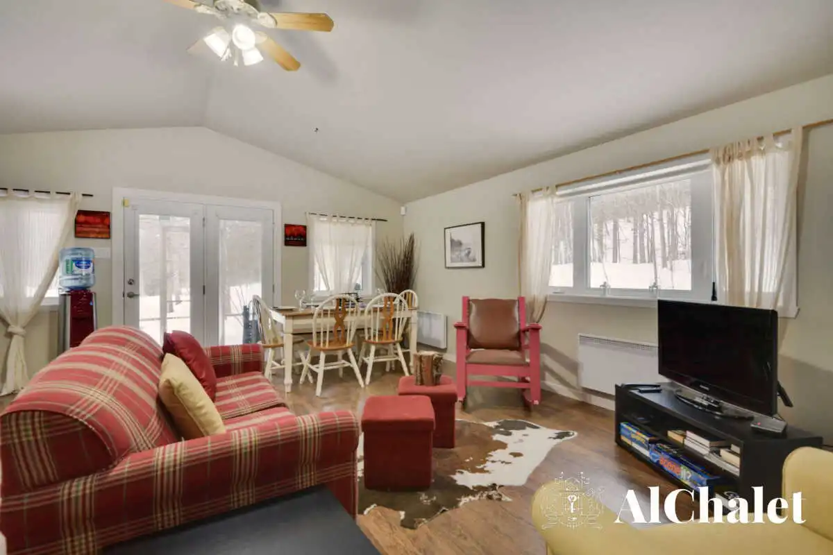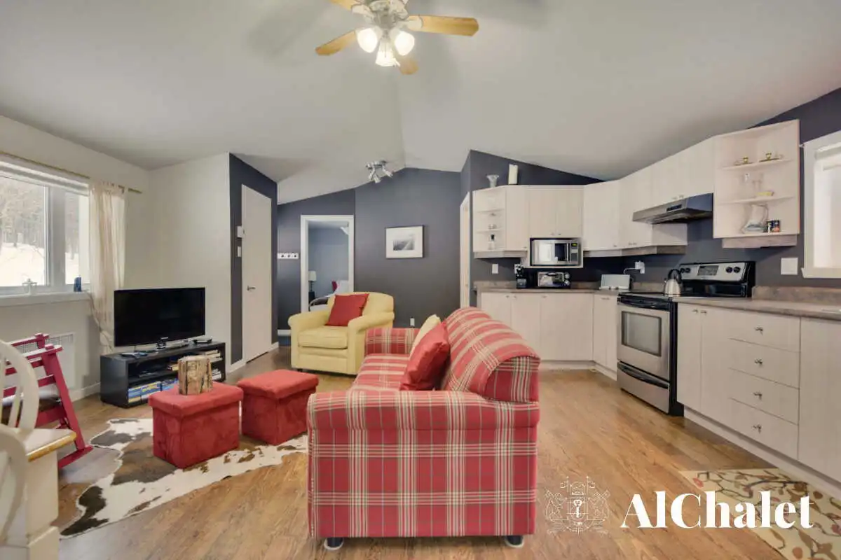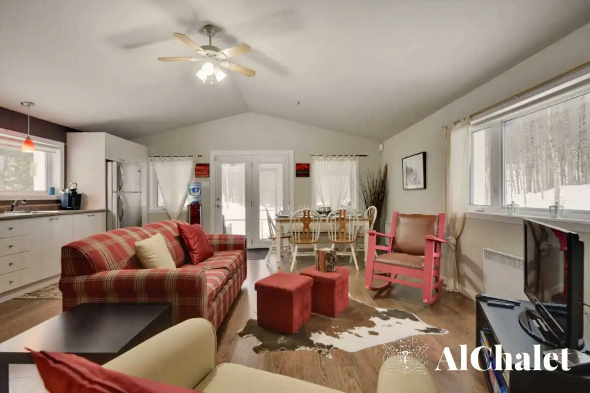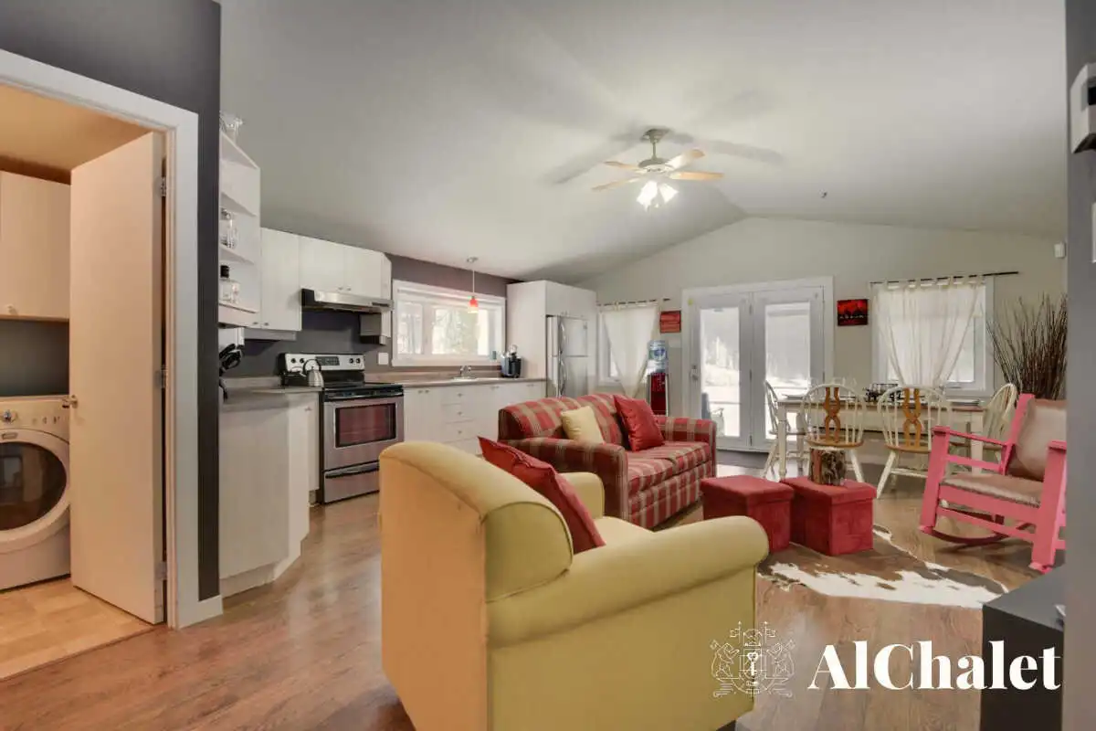 Idéal pour une escapade en couple ou en solo, le chalet offre tout le nécessaire pour se déposer : une chambre confortable, une salle de bain pratique avec laveuse-sécheuse, et un espace de vie douillet pour cuis... Lire la suite