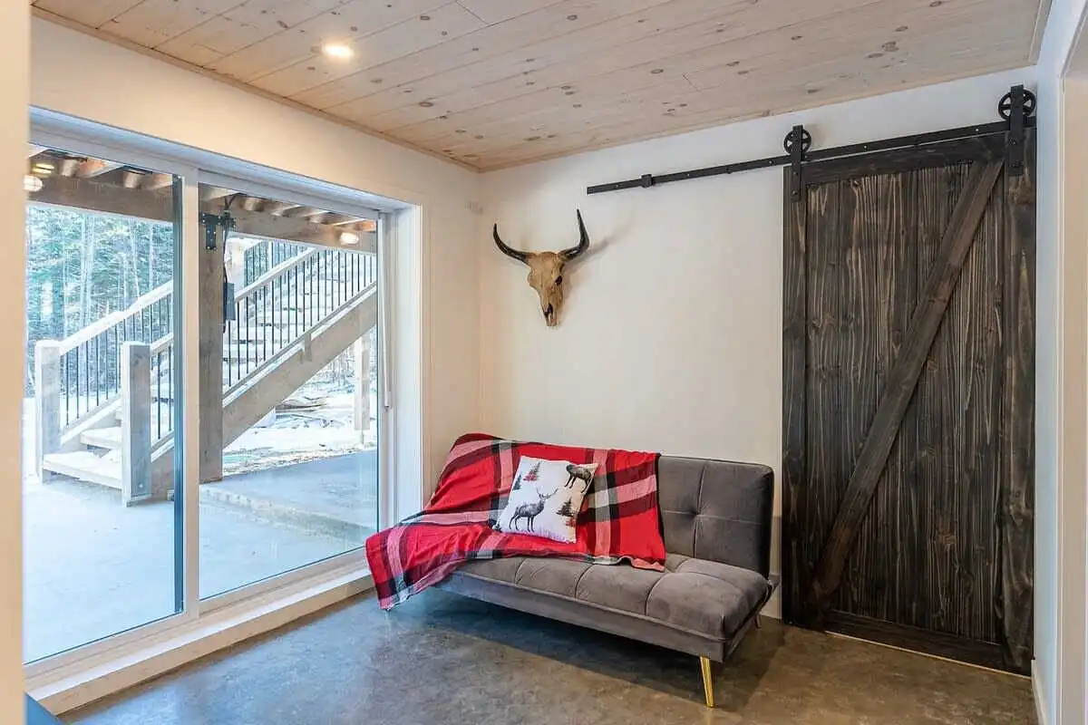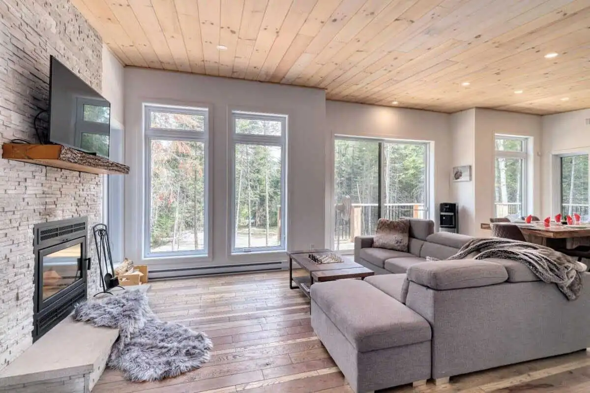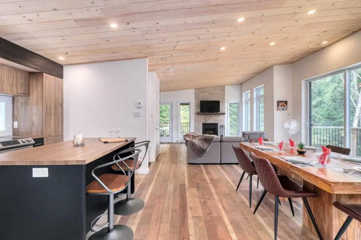 Découvrez le refuge parfait au cœur de la nature, notre magnifique chalet avec spa et un TOUT NOUVEAU sauna situé dans un cadre enchanteur, en bordure de la Rivière Noire.