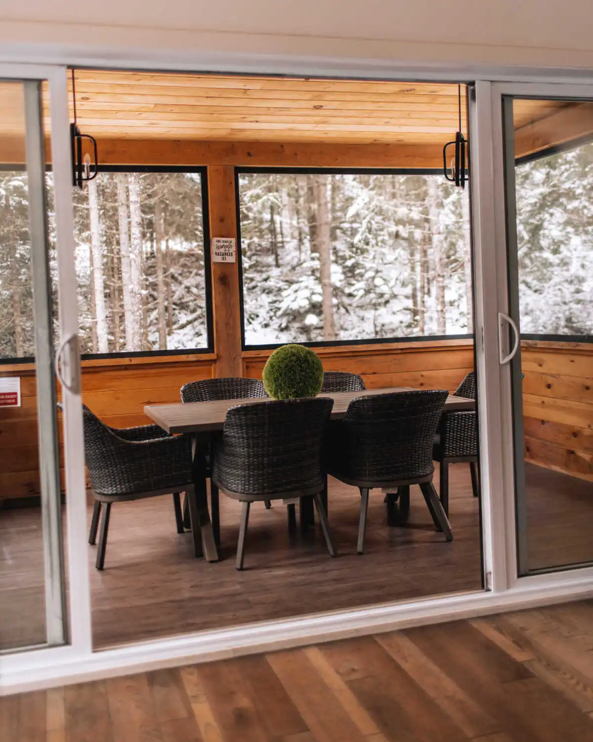 Vous pourrez prendre un bon repas dans la véranda 3 saisons ou profiter de la terrasse extérieure pour prendre un bon café ou une coupe de vin. Profitez également du spa avec une vue magnifique sur la nature entourant le domaine.
