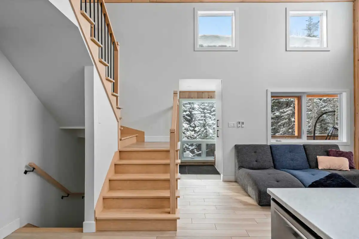 À votre arrivée, vous serez immédiatement séduit par l'architecture typique scandinave du chalet, alliant harmonieusement bois et pierre offrant une ambiance chaleureuse et cosy.