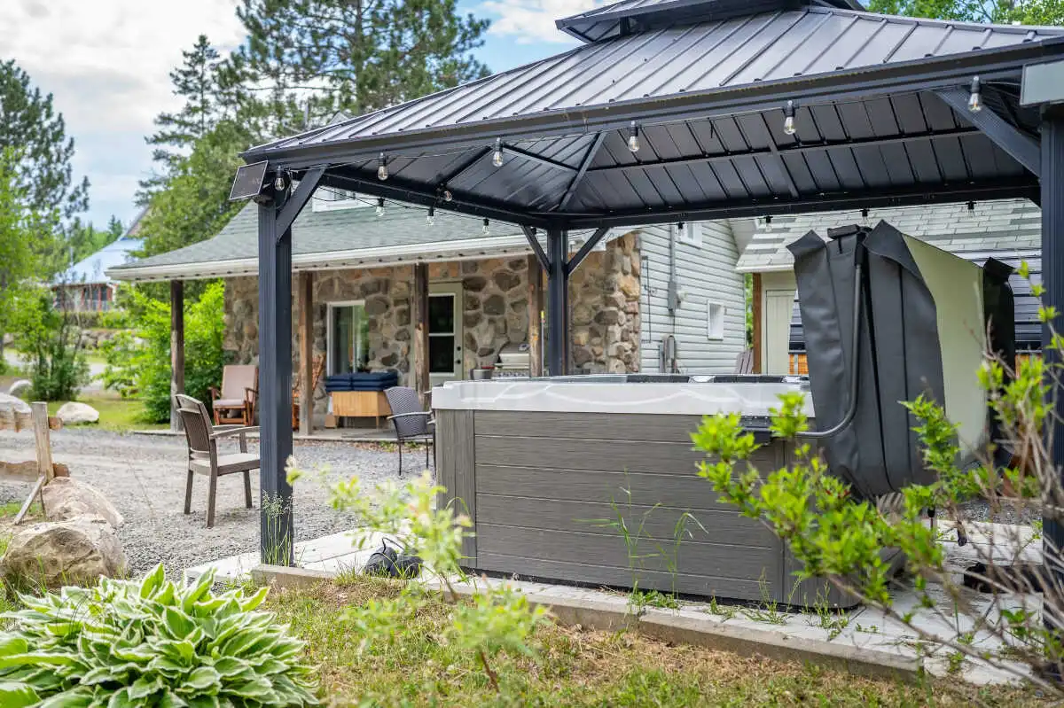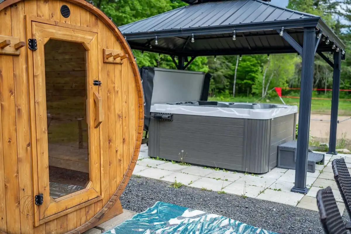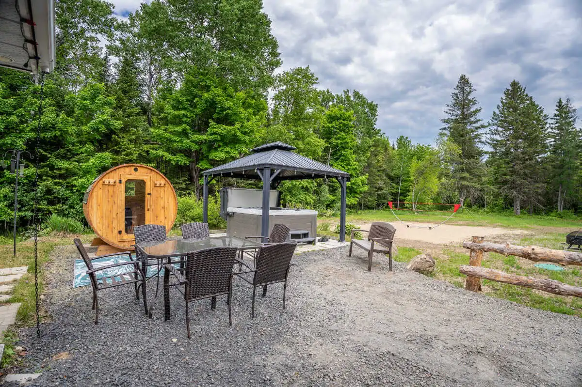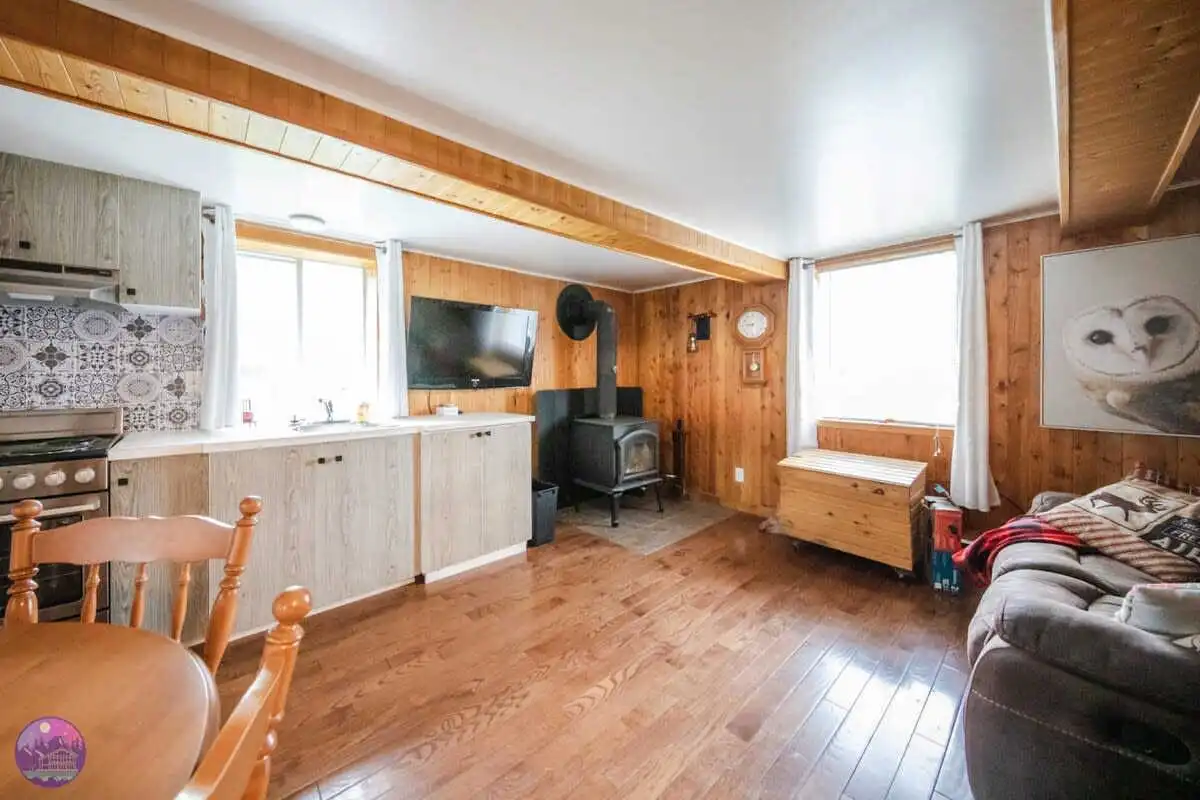 Venez passer la soirée sur le bord du foyer au bois, tout en cuisinant un bon repas dans l'aire de vie ouverte.