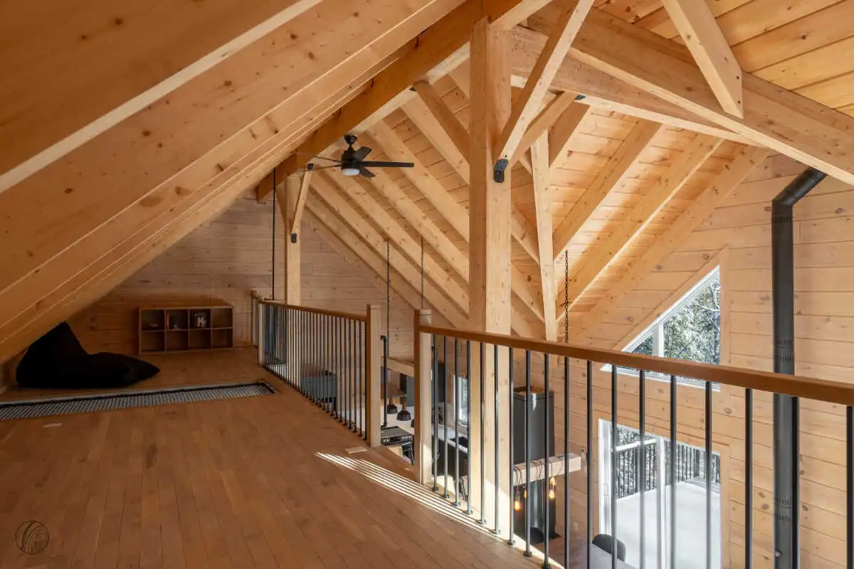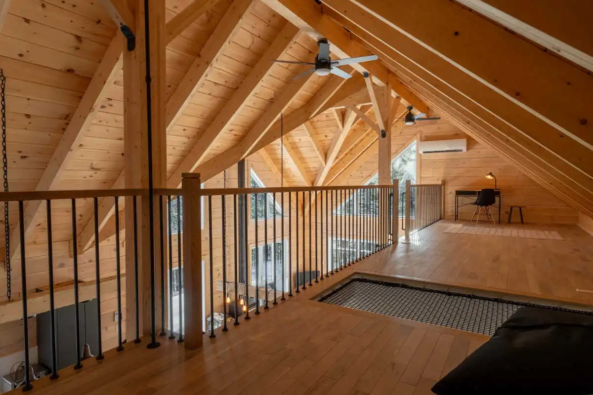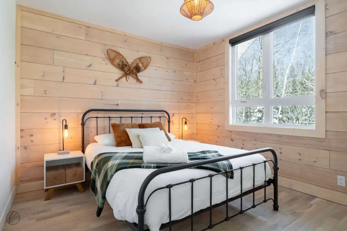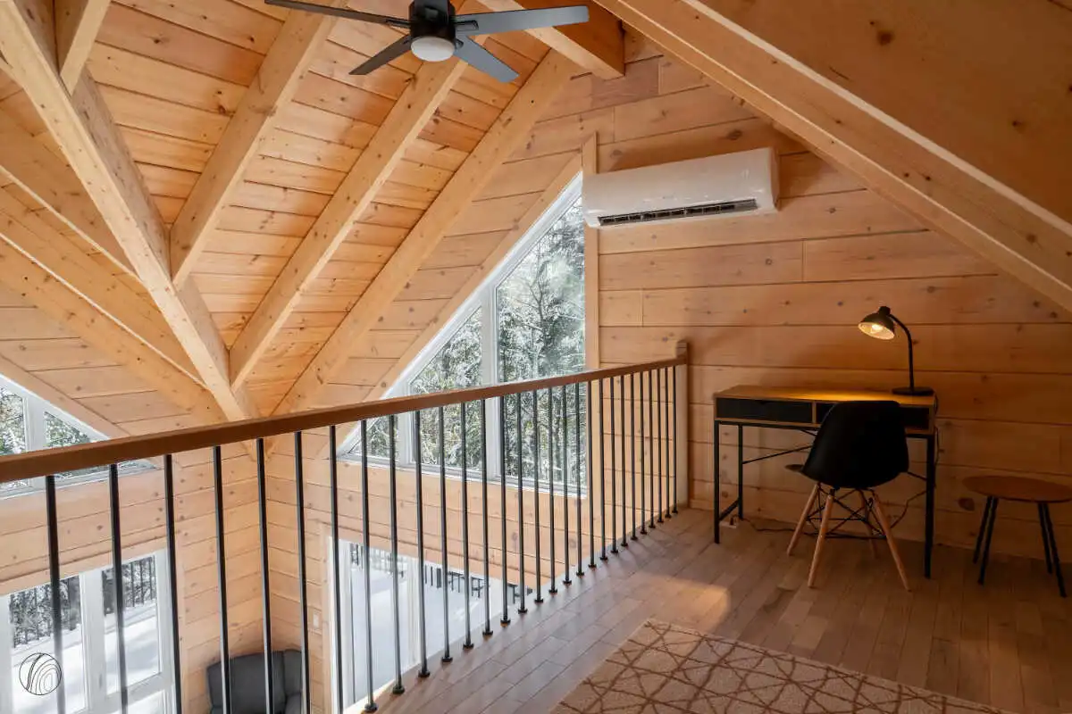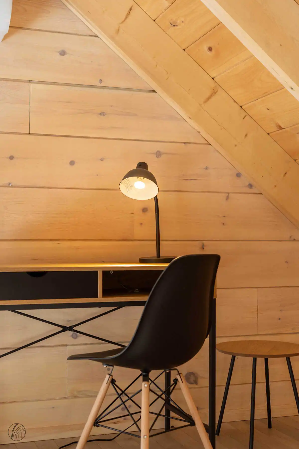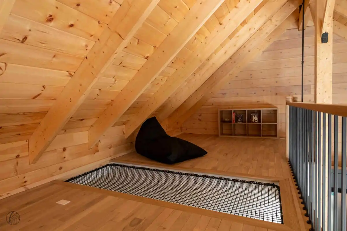 Avec ses 4 chambres confortables et une mezzanine unique comprenant un espace de jeu avec un filet suspendu ainsi qu’un espace de travail, ce chalet offre un parfait mélange de détente et de fonctionnalité pour vos séjours.