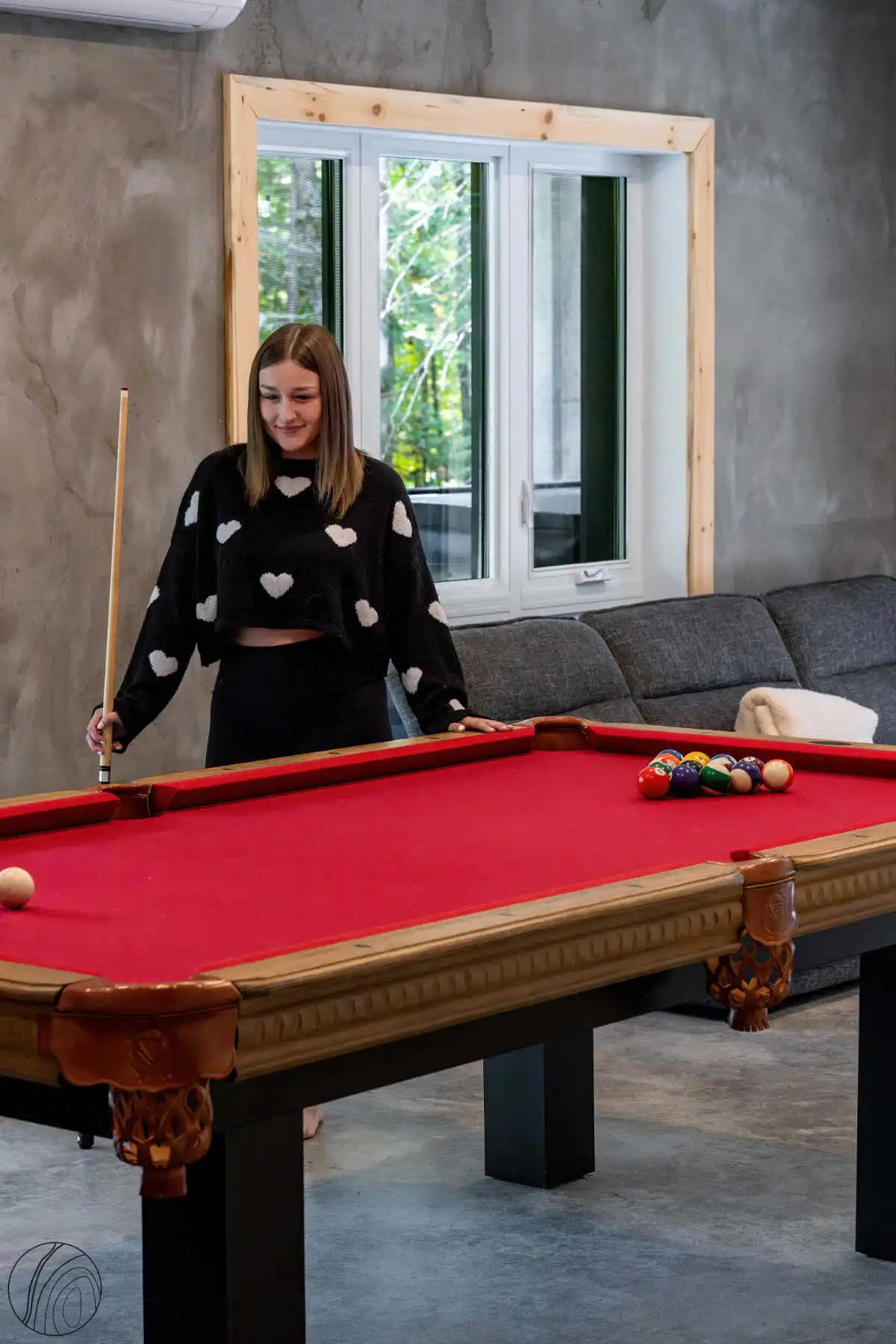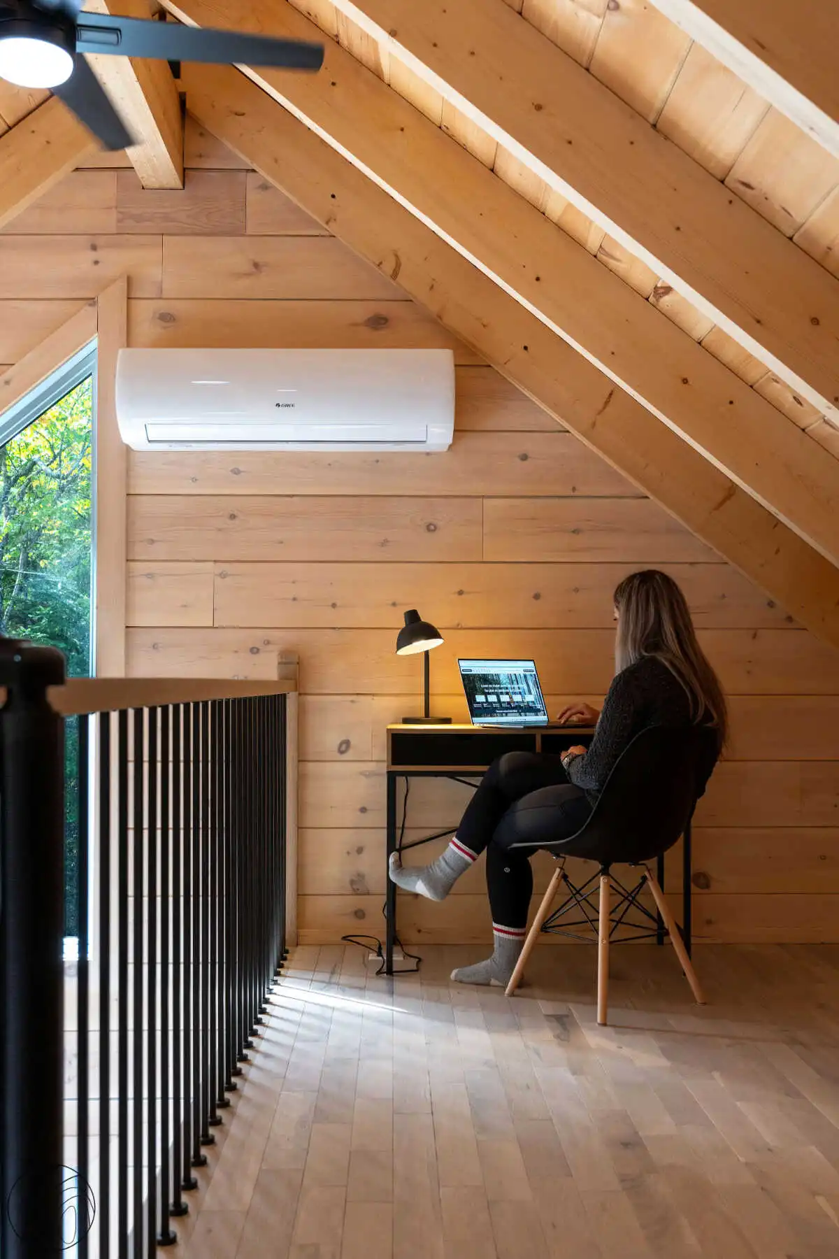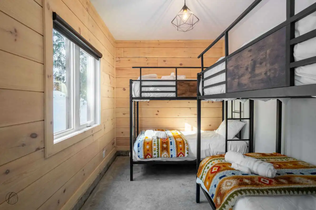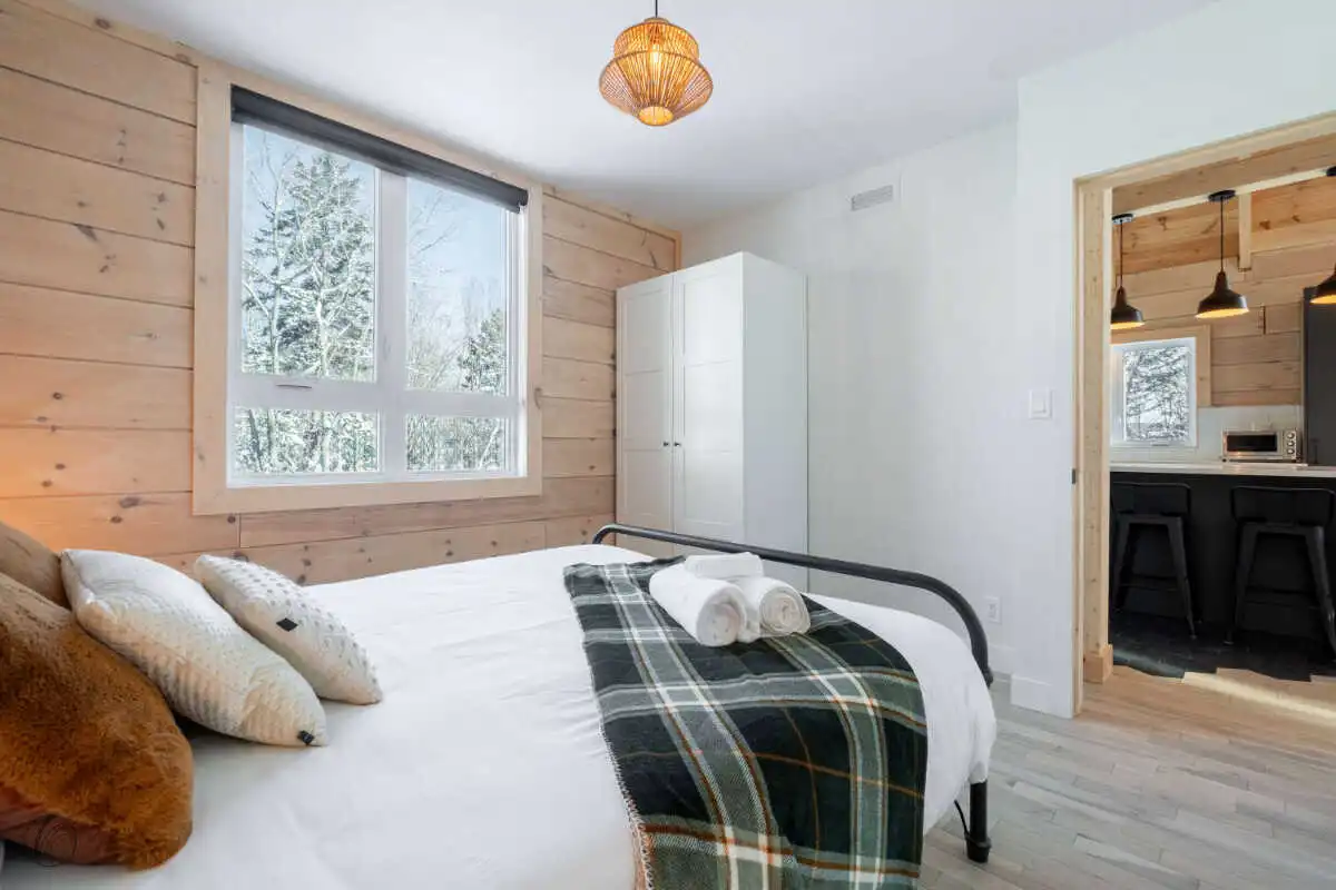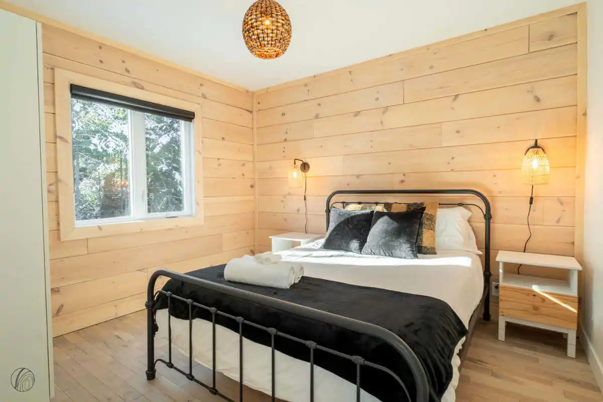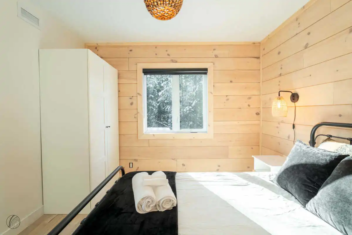 Avec ses 4 chambres confortables et une mezzanine unique comprenant un espace de jeu avec un filet suspendu ainsi qu’un espace de travail, ce chalet offre un parfait mélange de détente et de fonctionnalité pour vos séjours.