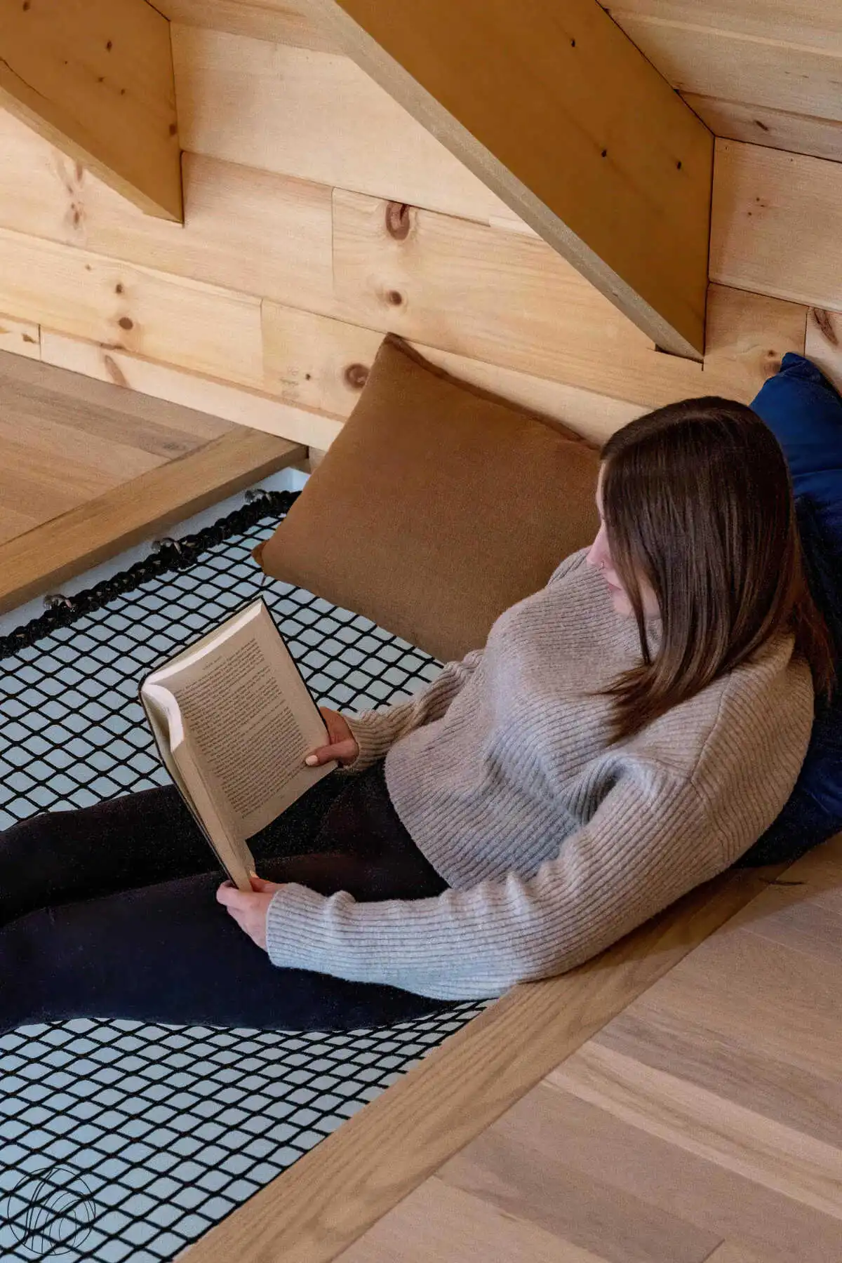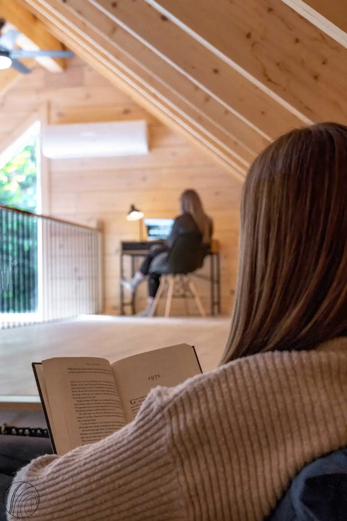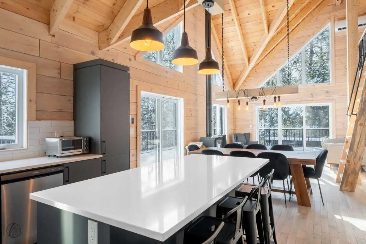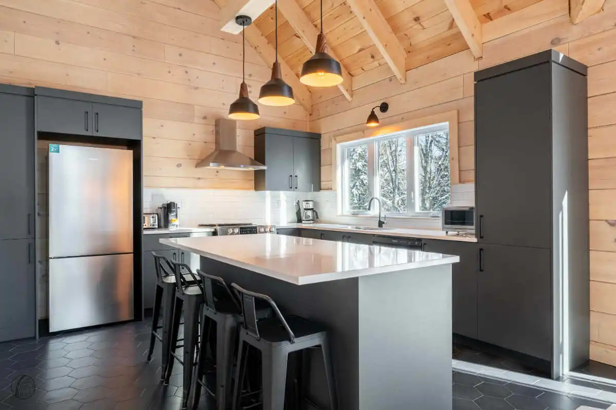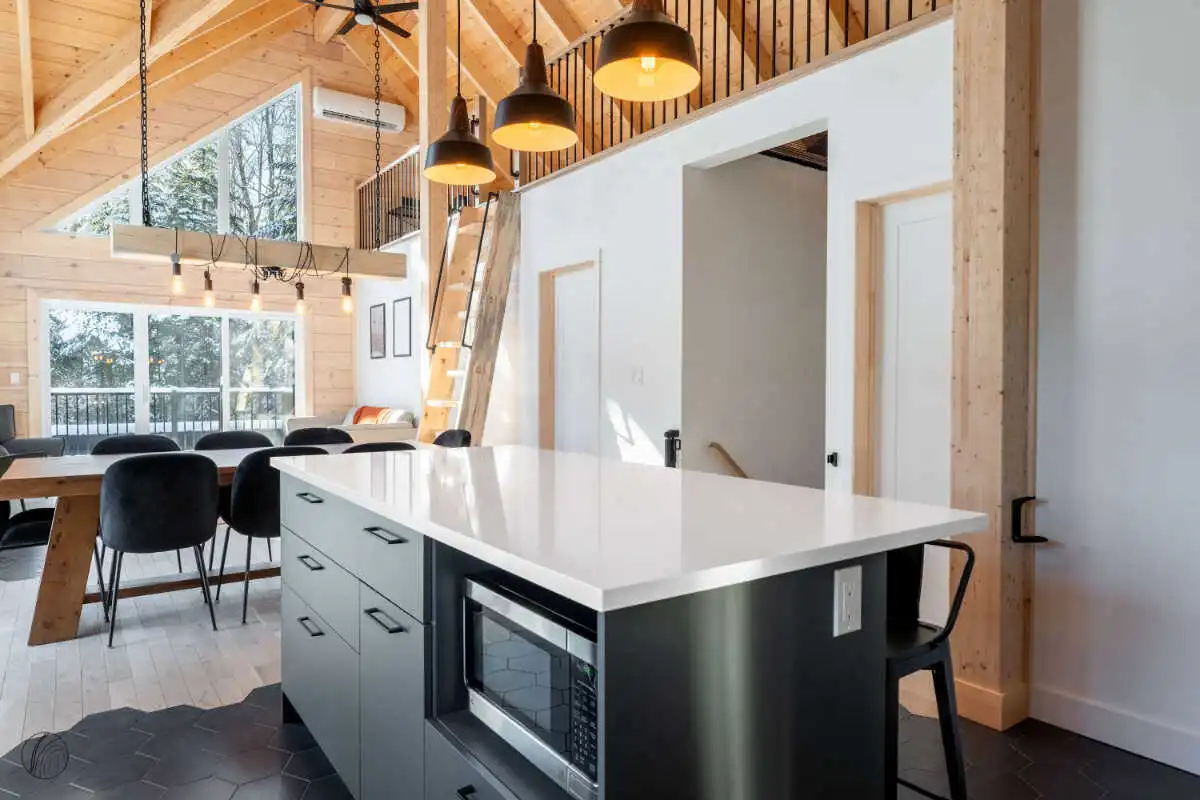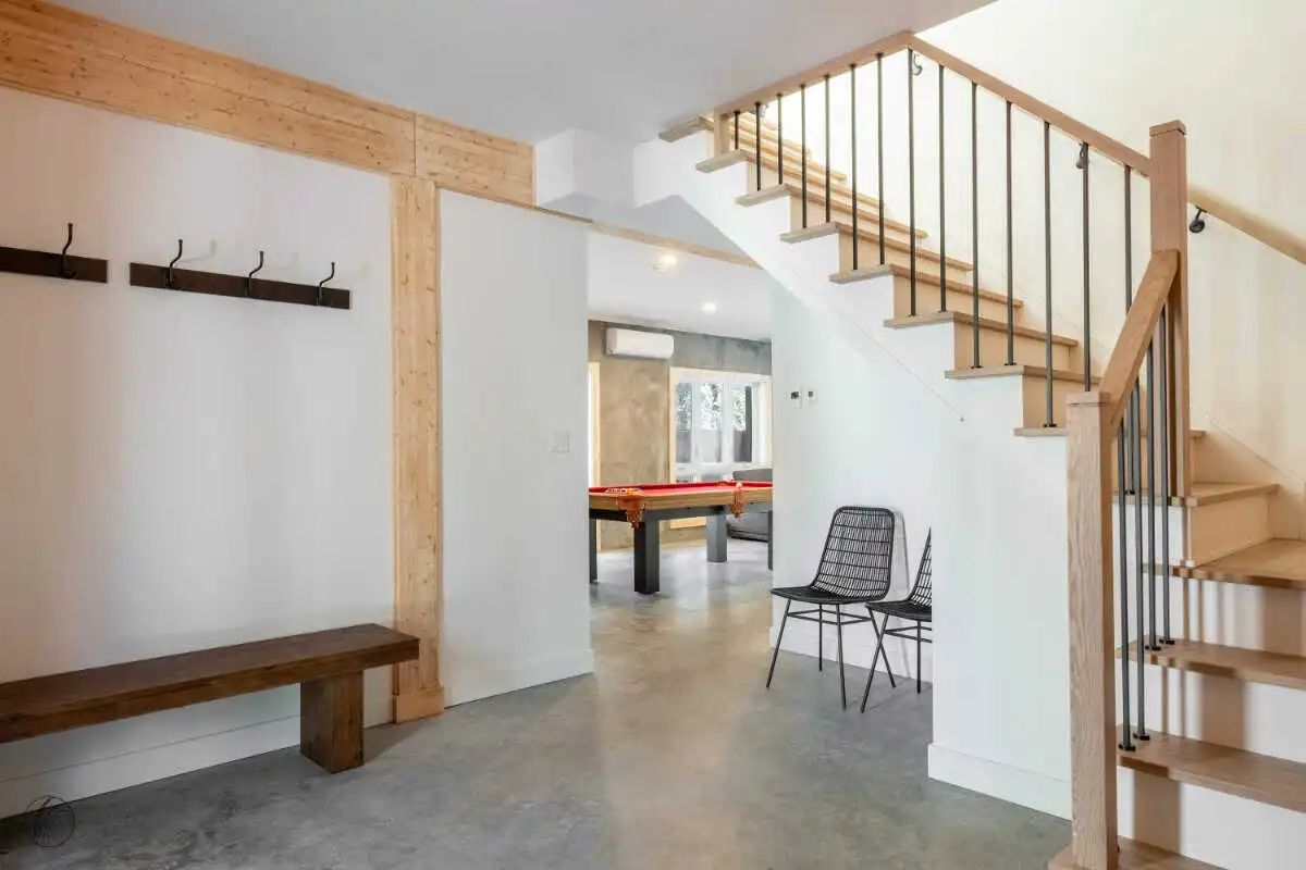 Avec ses 4 chambres confortables et une mezzanine unique comprenant un espace de jeu avec un filet suspendu ainsi qu’un espace de travail, ce chalet offre un parfait mélange de détente et de fonctionnalité pour vos séjours.