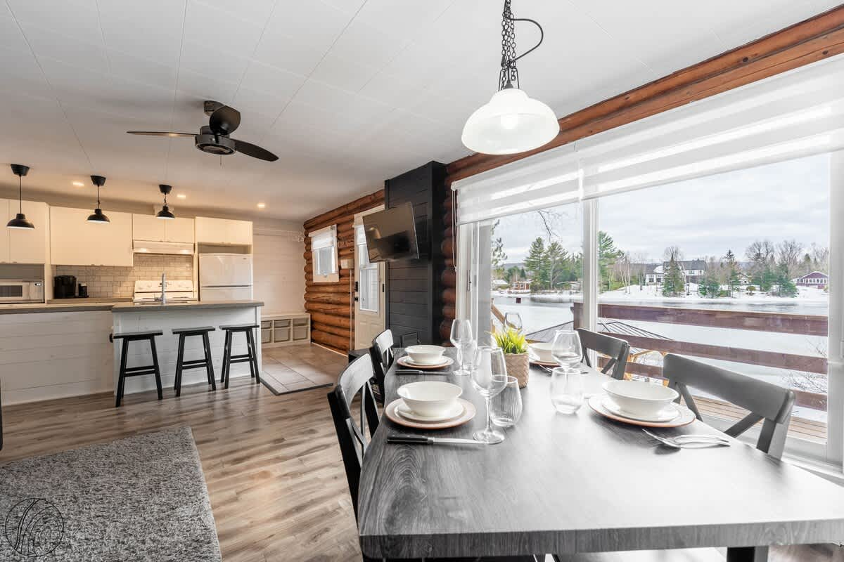 Profitez d’un accès direct au lac pour admirer la vue, relaxer dans le SPA ou savourer une soirée au coin du feu avec le foyer au bois.