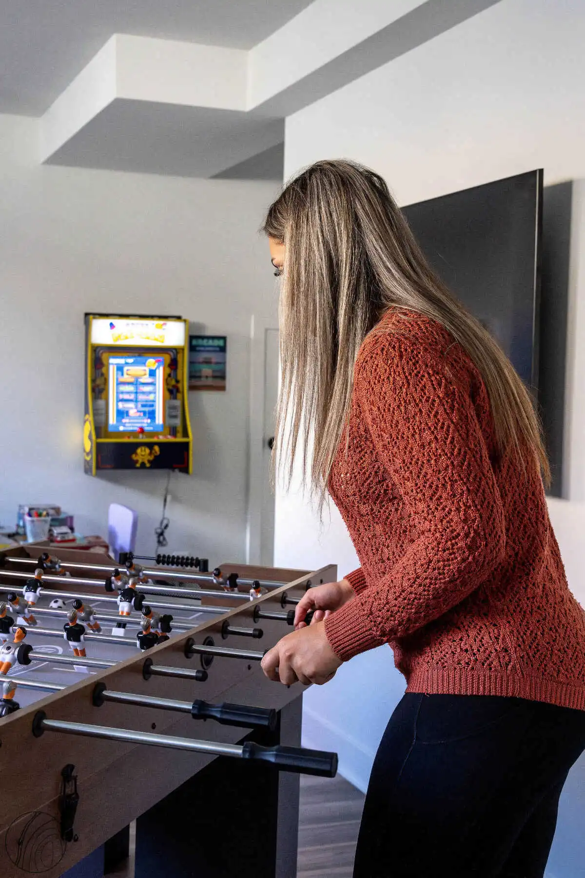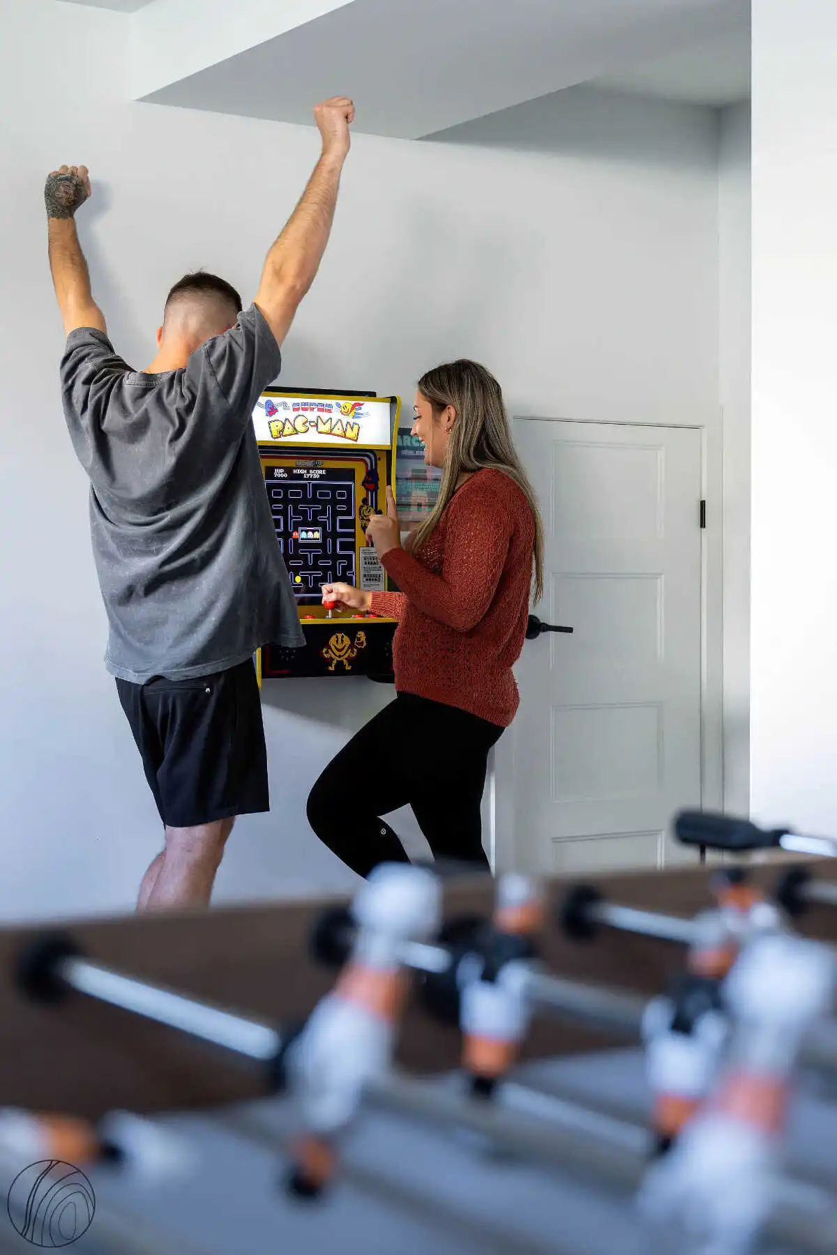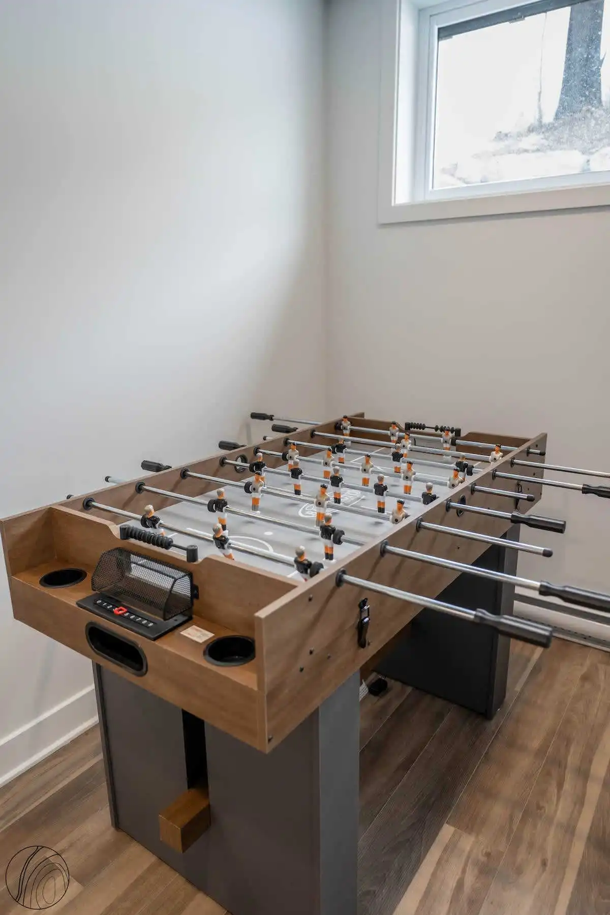 Profitez d’un espace de divertissement unique au sous-sol avec une table de babyfoot 3 en 1 et une arcade Pac-Man, idéal pour petits et grands. Détendez-vous au salon devant le foyer au propane ou plongez dans le spa extérieur... Lire la suite