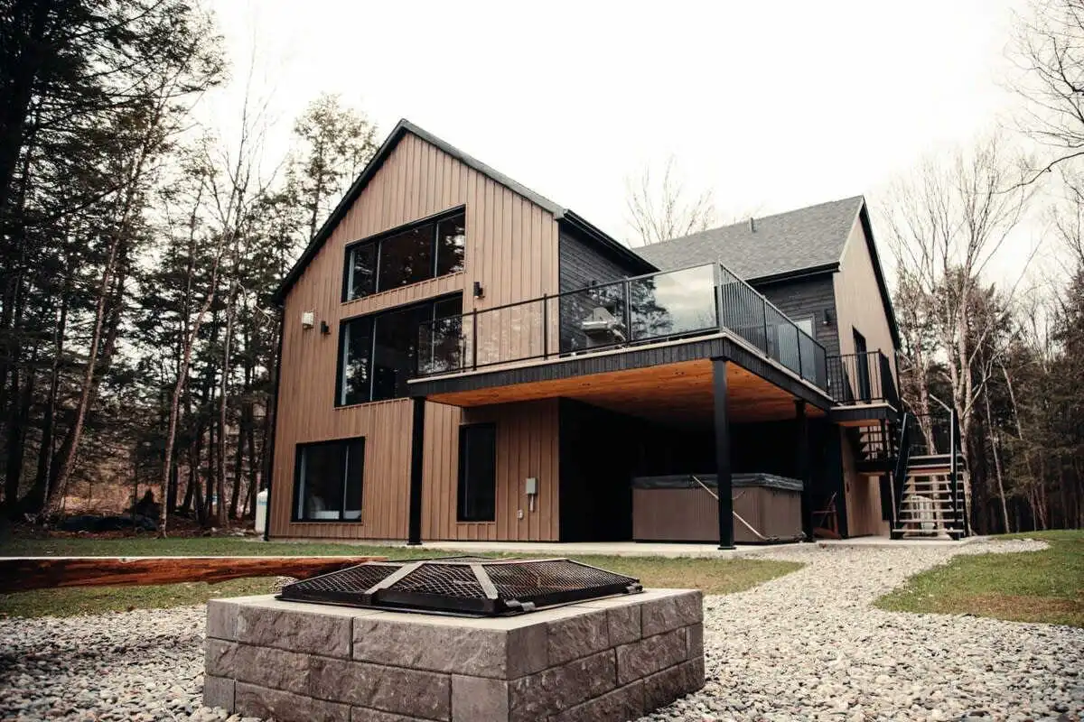 Magnifique chalet moderne situé à Mansonville en Estrie à moins de 10 minutes du golf et de la station de ski Owl's Head.