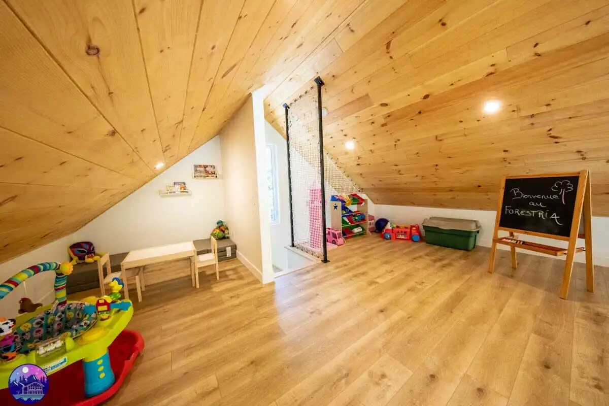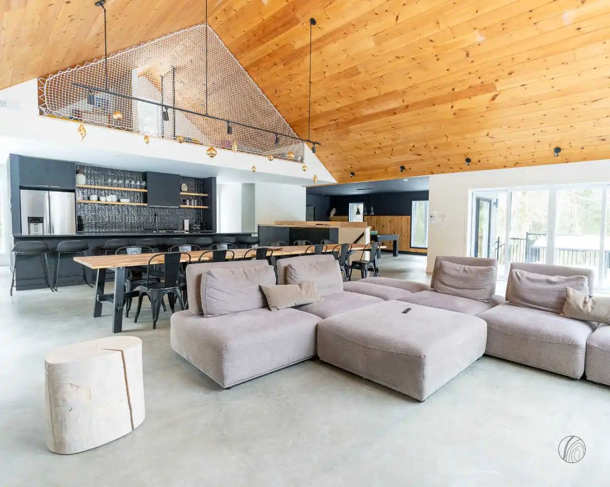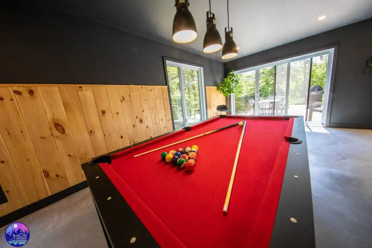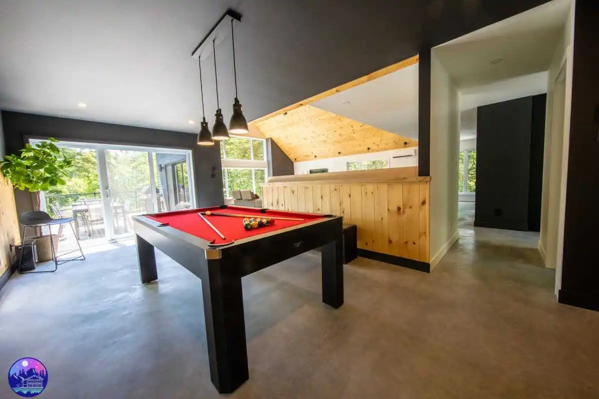 Le Forestria se démarque par ses grands espaces intérieurs ouverts; cuisine, salon, salle de billard/ping-pong.