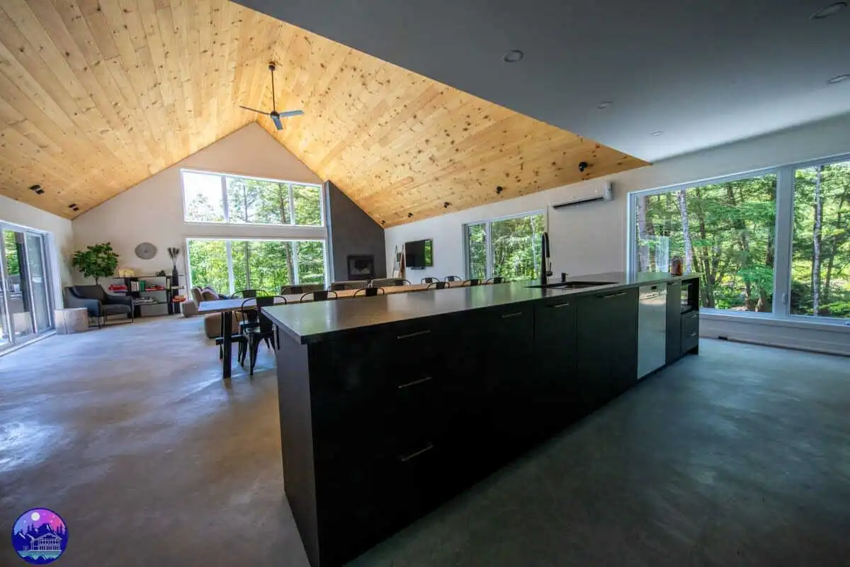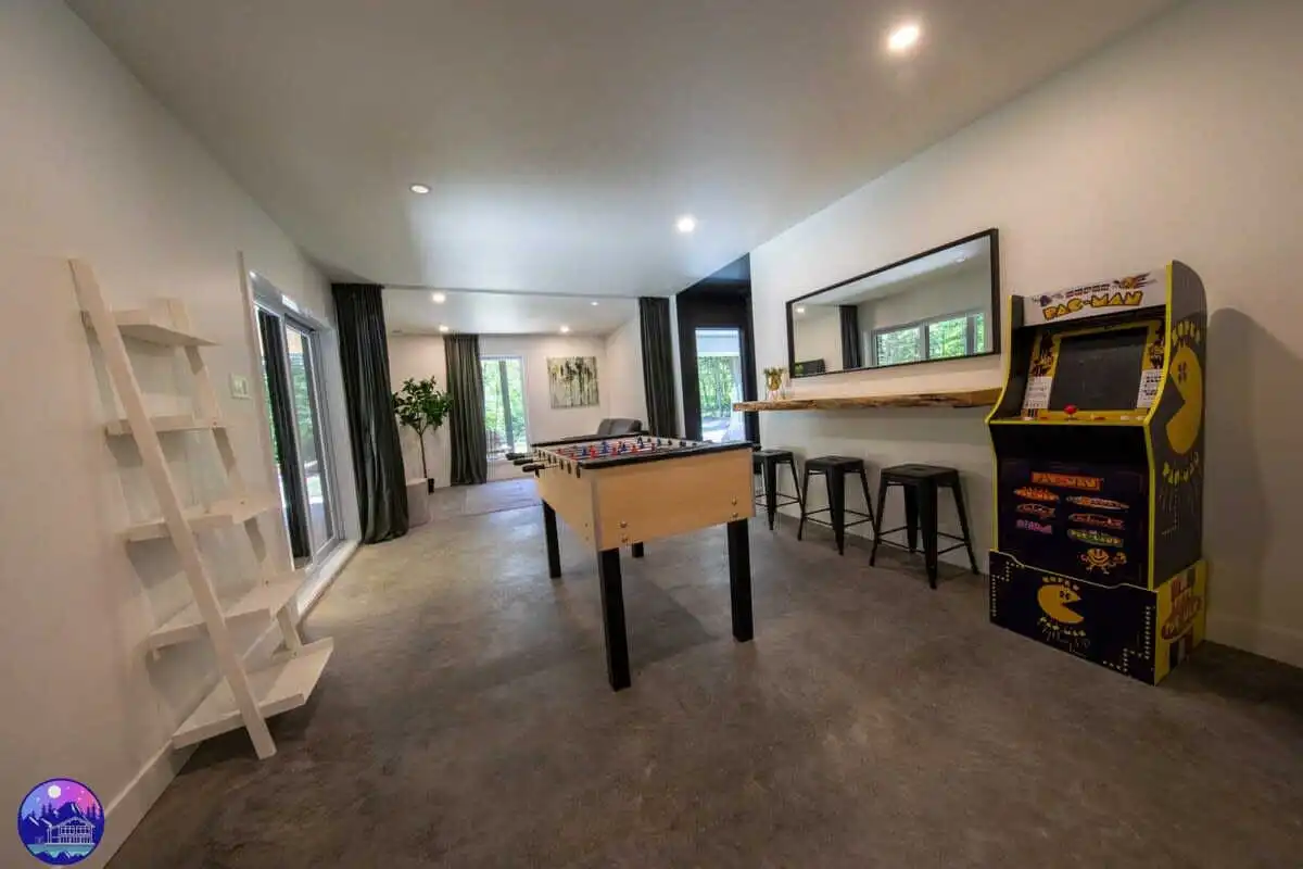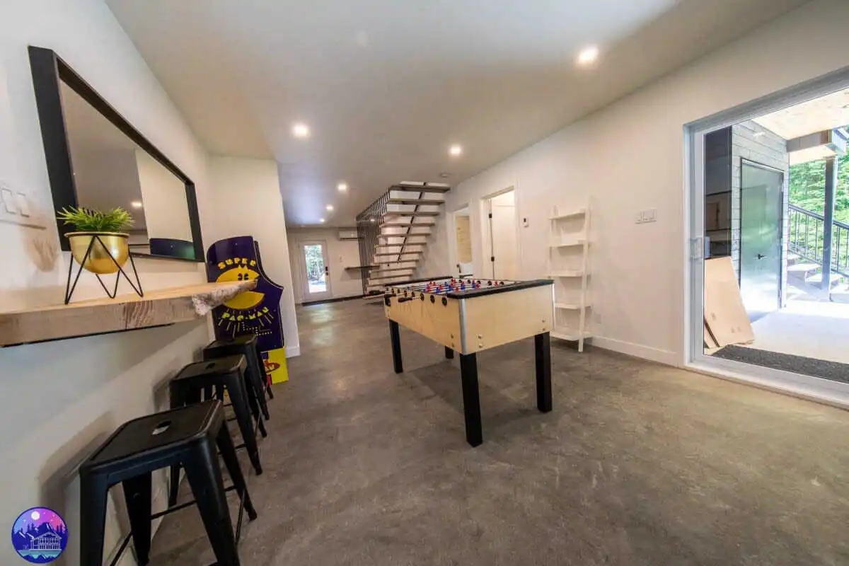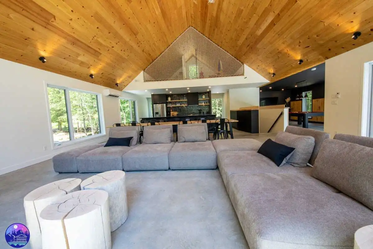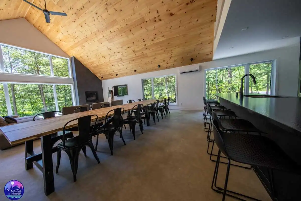 Le Forestria se démarque par ses grands espaces intérieurs ouverts; cuisine, salon, salle de billard/ping-pong.
