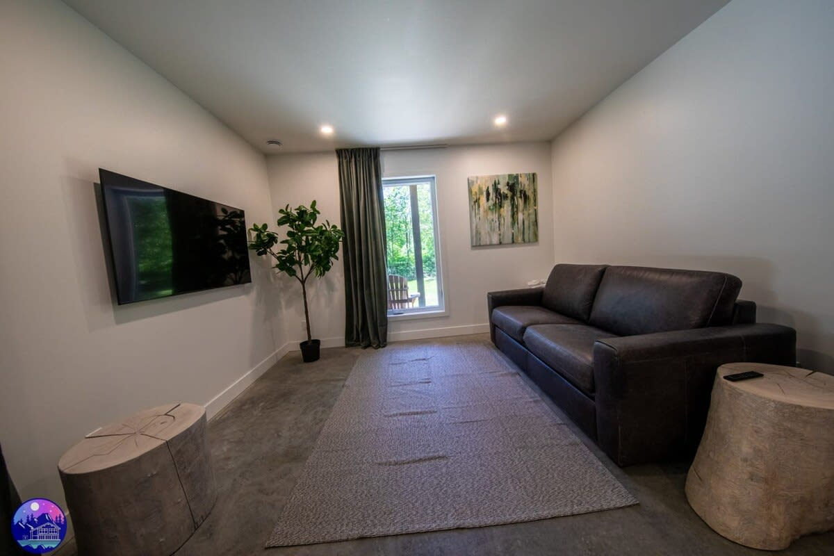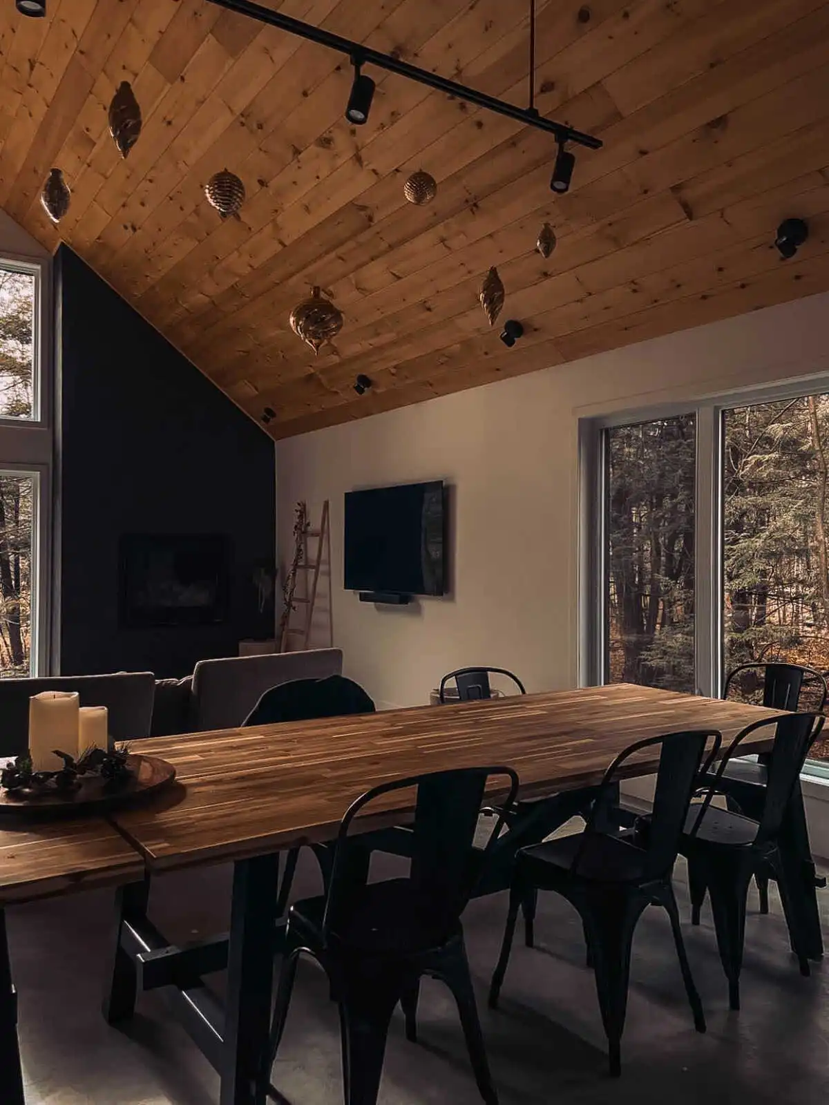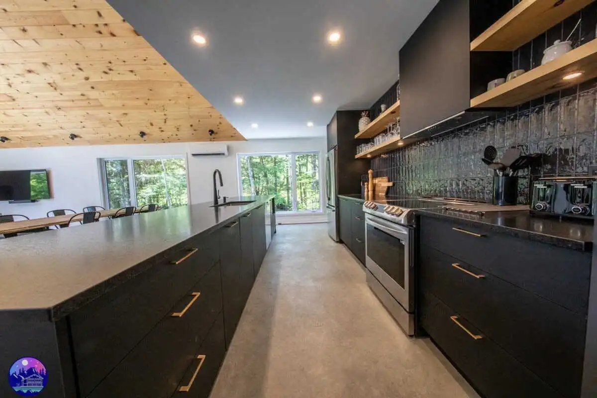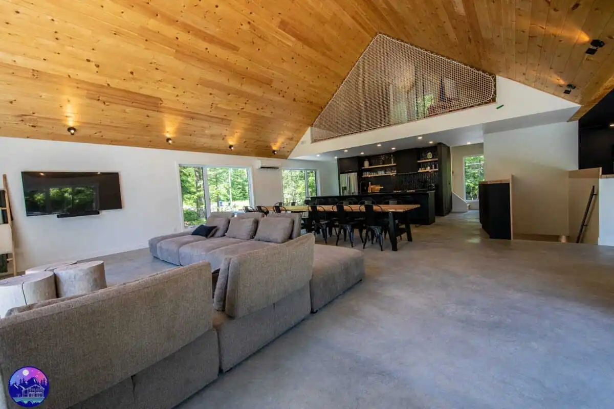 Le Forestria se démarque par ses grands espaces intérieurs ouverts; cuisine, salon, salle de billard/ping-pong.