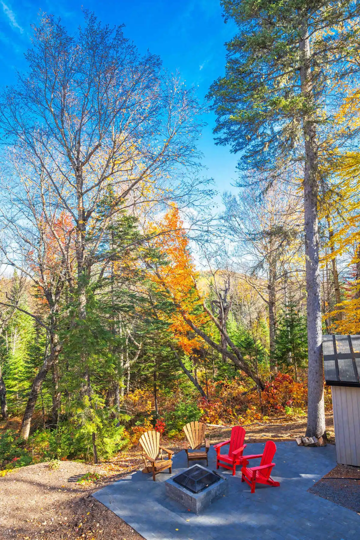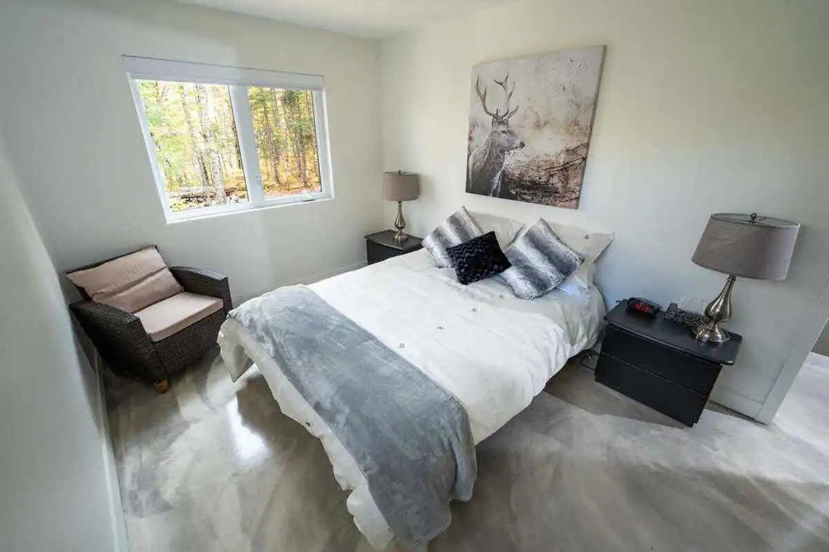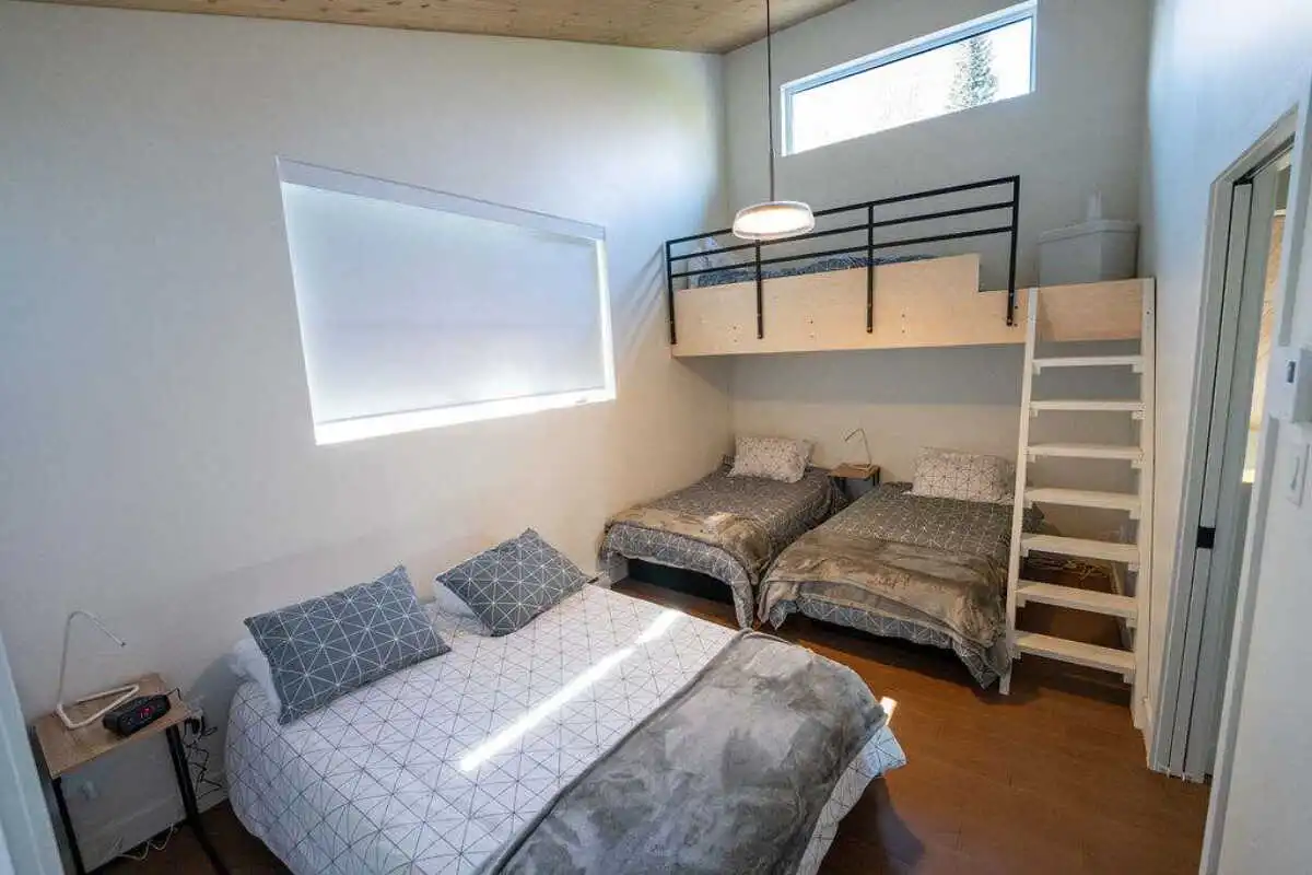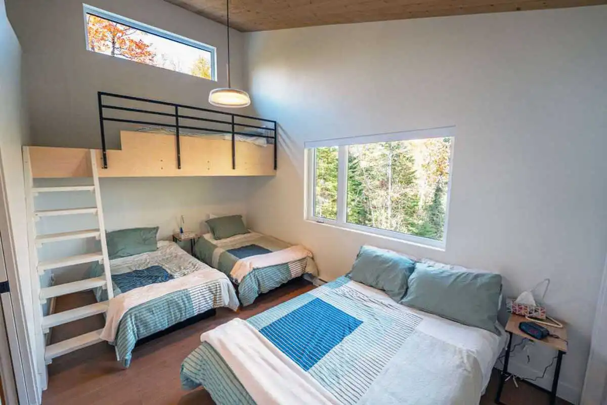 Le Chalet Le Fief offre 4 chambres confortables : deux avec lits queen, et deux autres avec un lit double et trois lits simples.