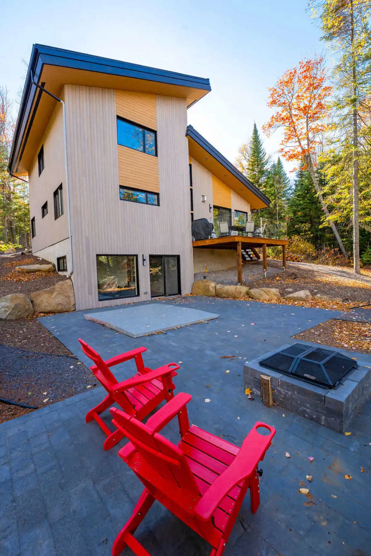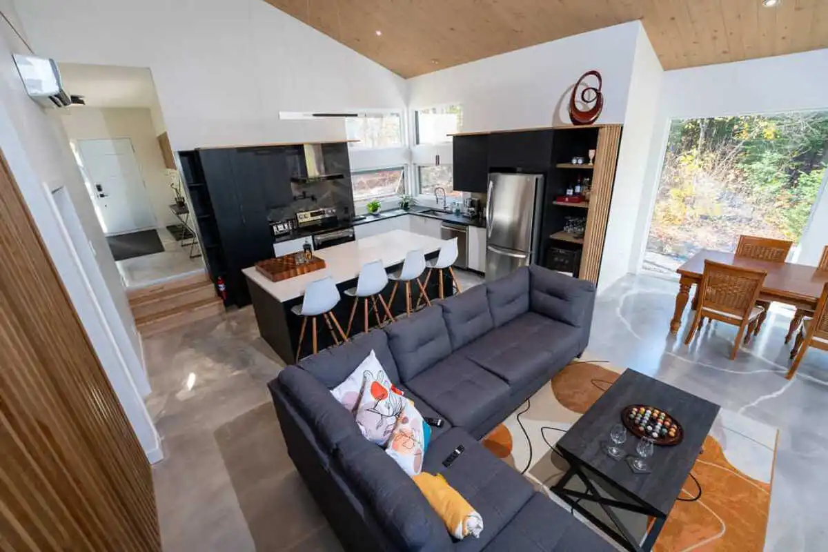 Évadez-vous dans un chalet neuf avec spa et ruisseau privé, niché en pleine nature à 15 min du Massif et 18 min de Baie-St-Paul.