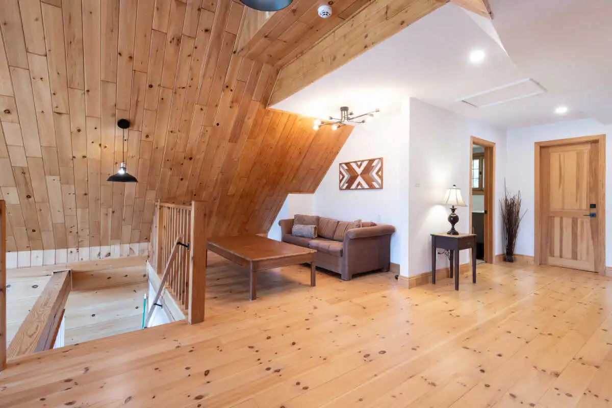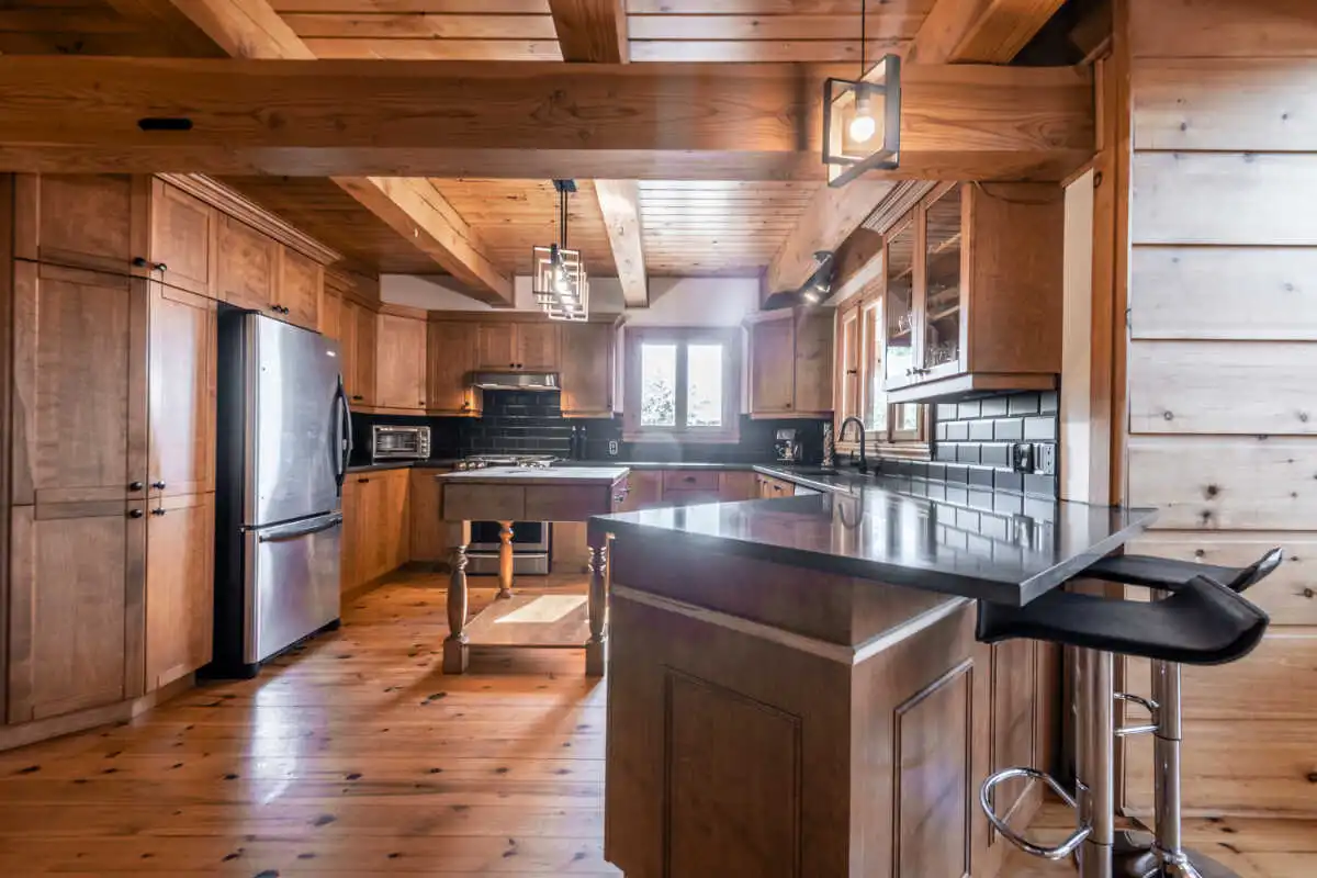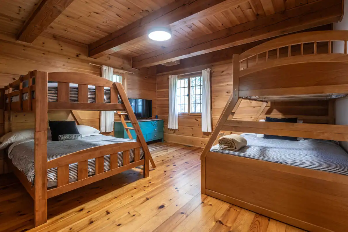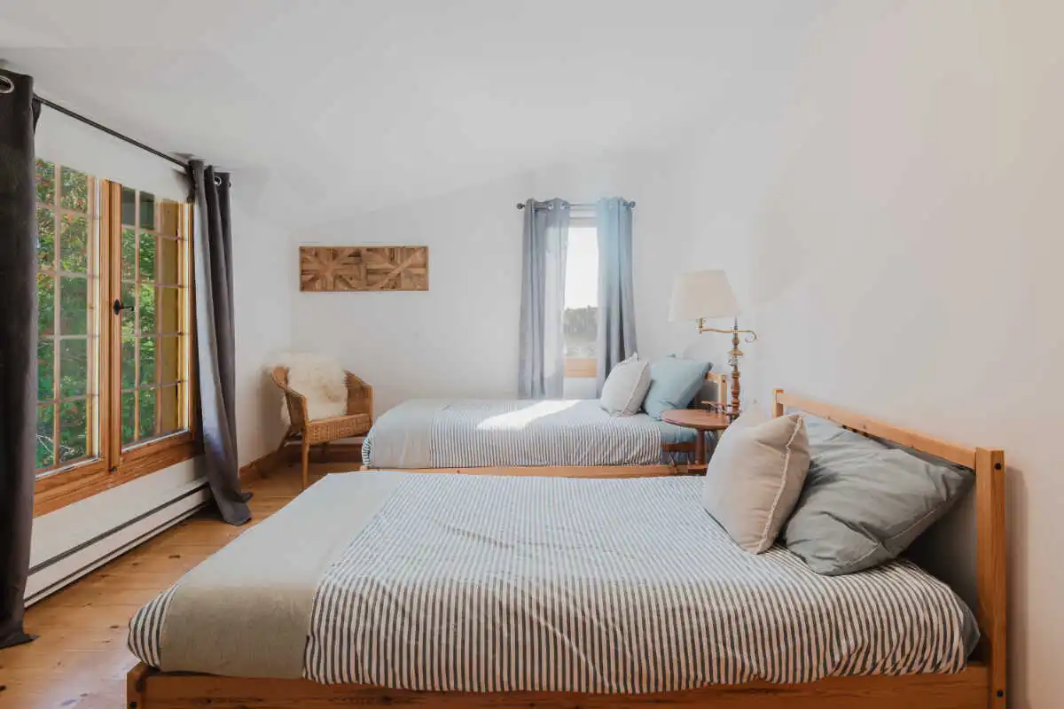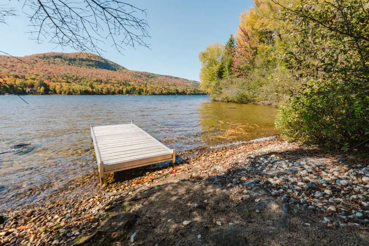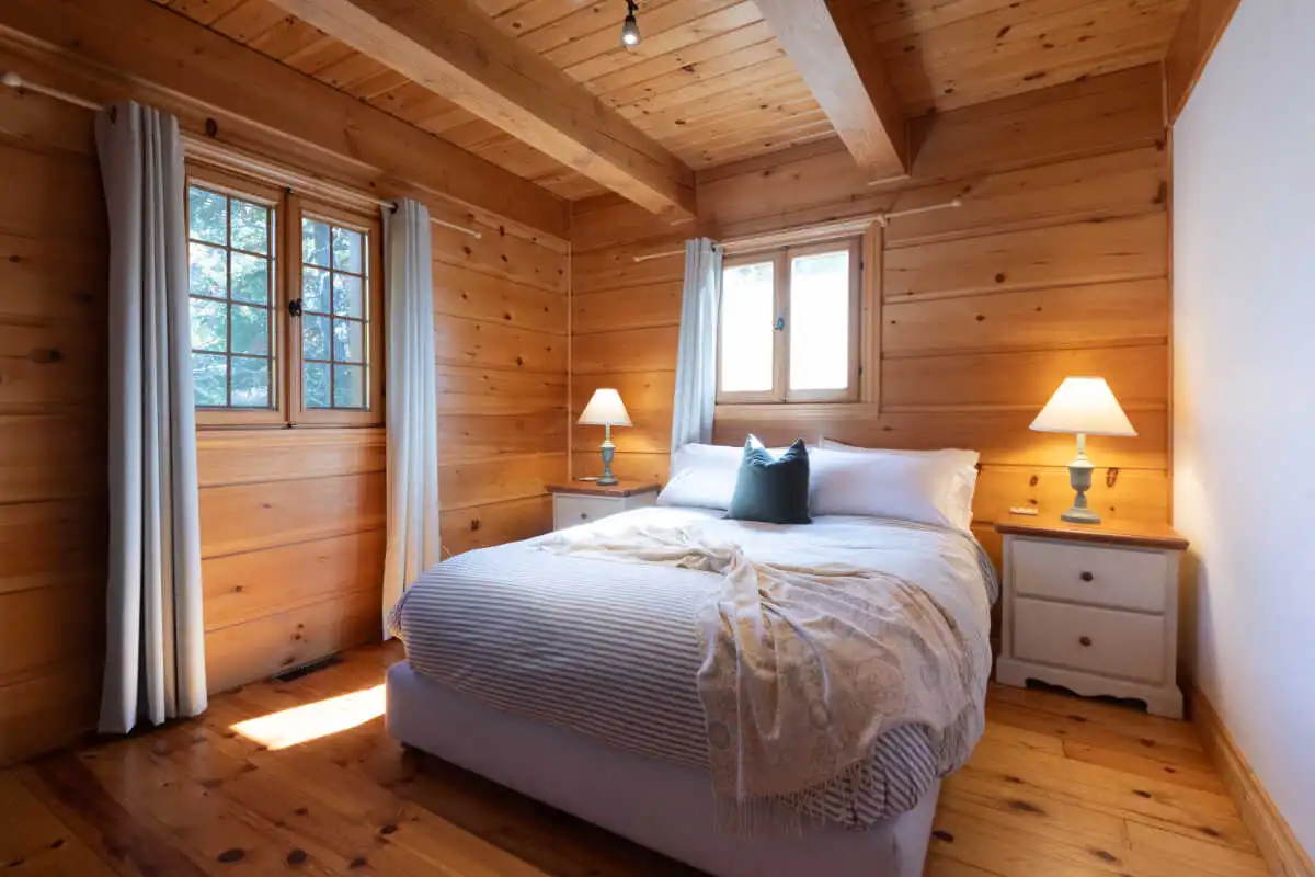 Directement sur le lac Ouareau avec accès à 2 quais sur un terrain plat de plus de 120 pieds de façade, cette propriété pièce sur pièce de type Bondu charme par son cachet unique.