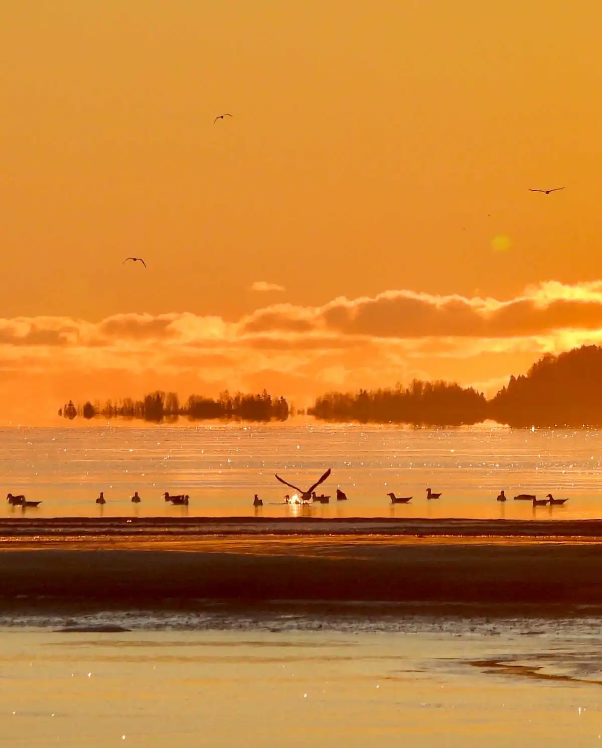 Situé sur une plage privée baignable, le chalet est entouré d’une faune sauvage exceptionnelle et de paysages à couper le souffle.