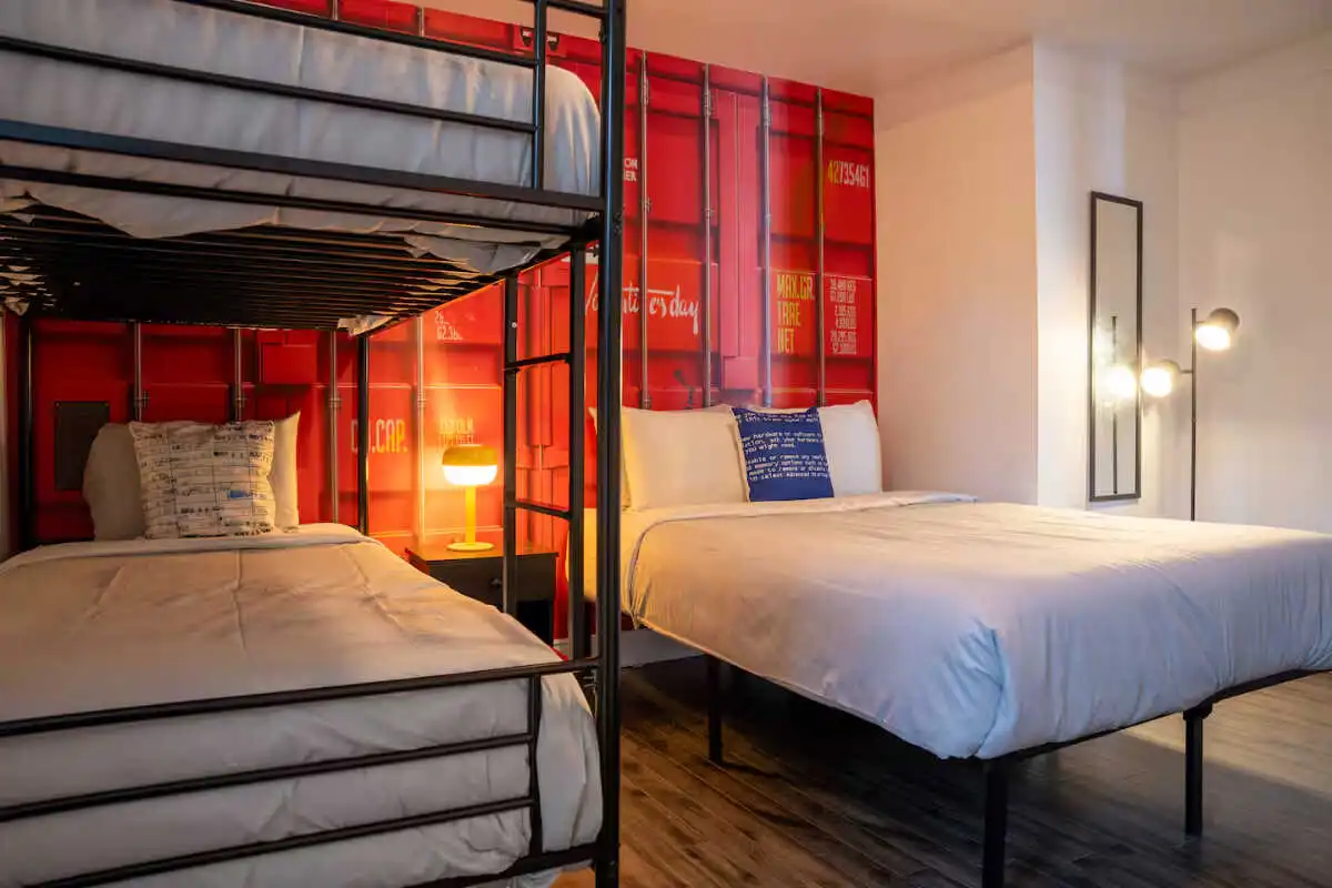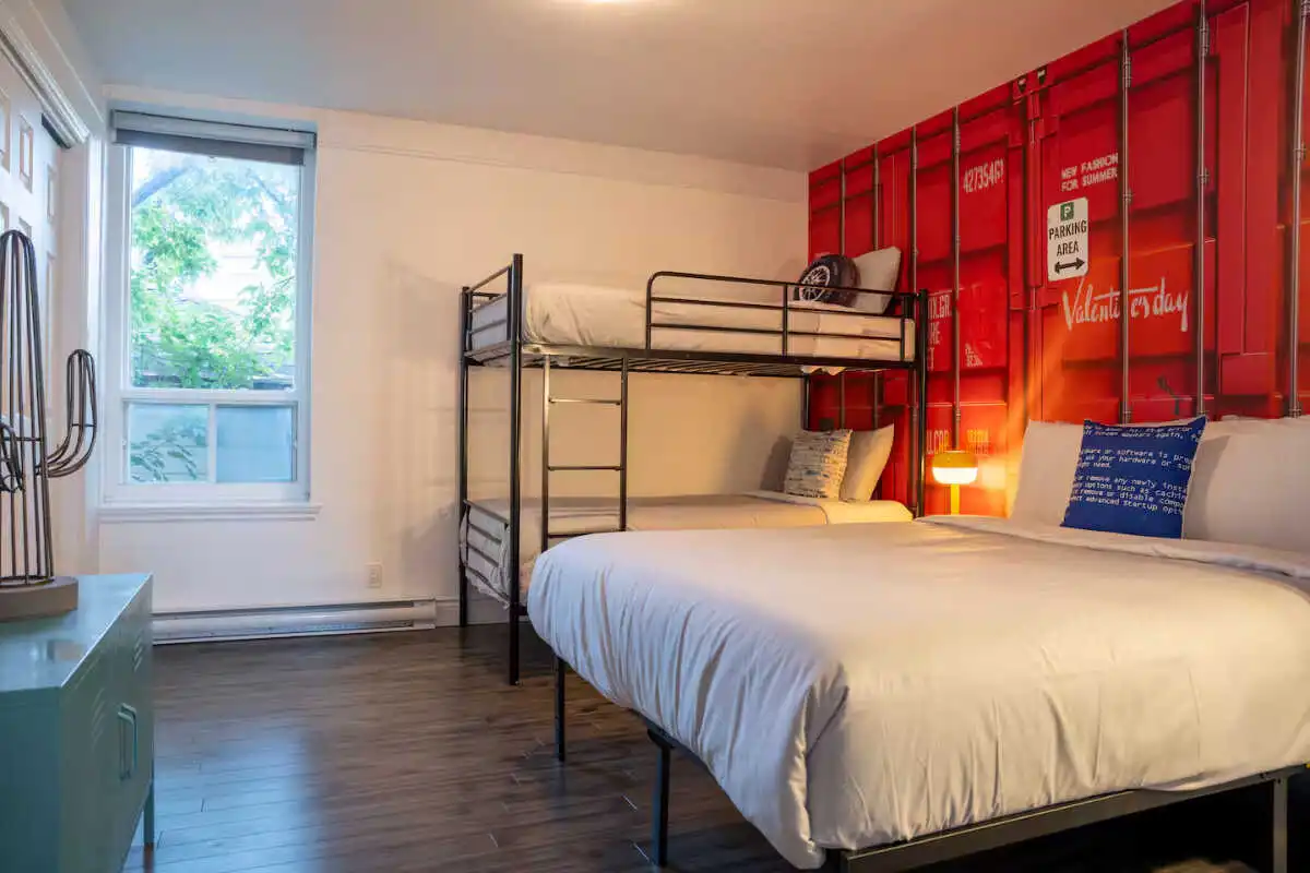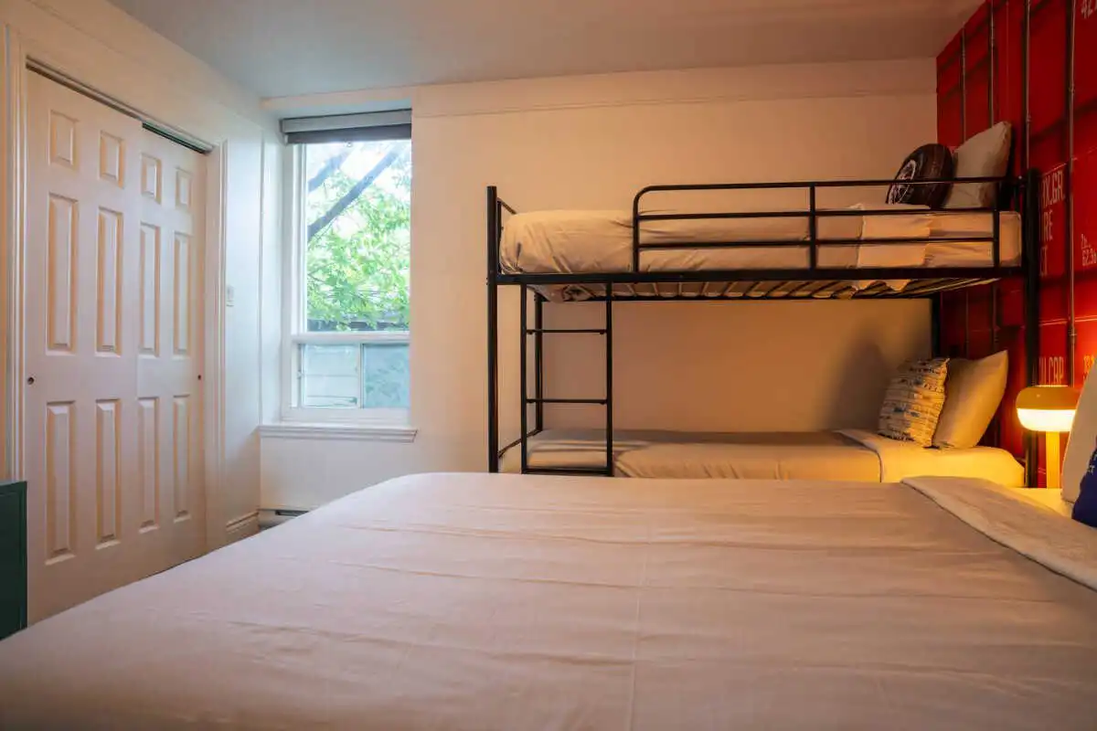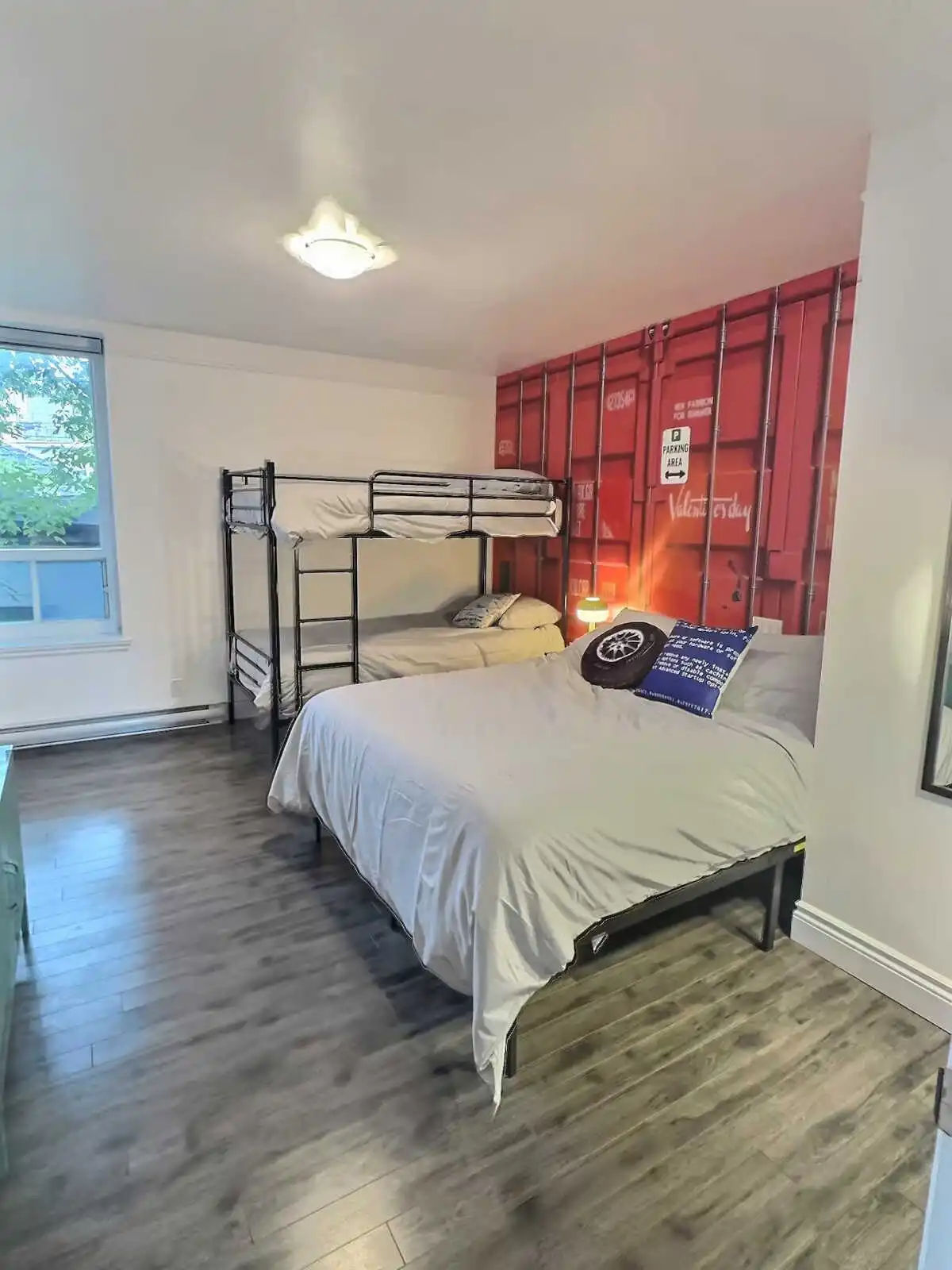 1 chambre avec lit queen et lit superposé (2 lits doubles)