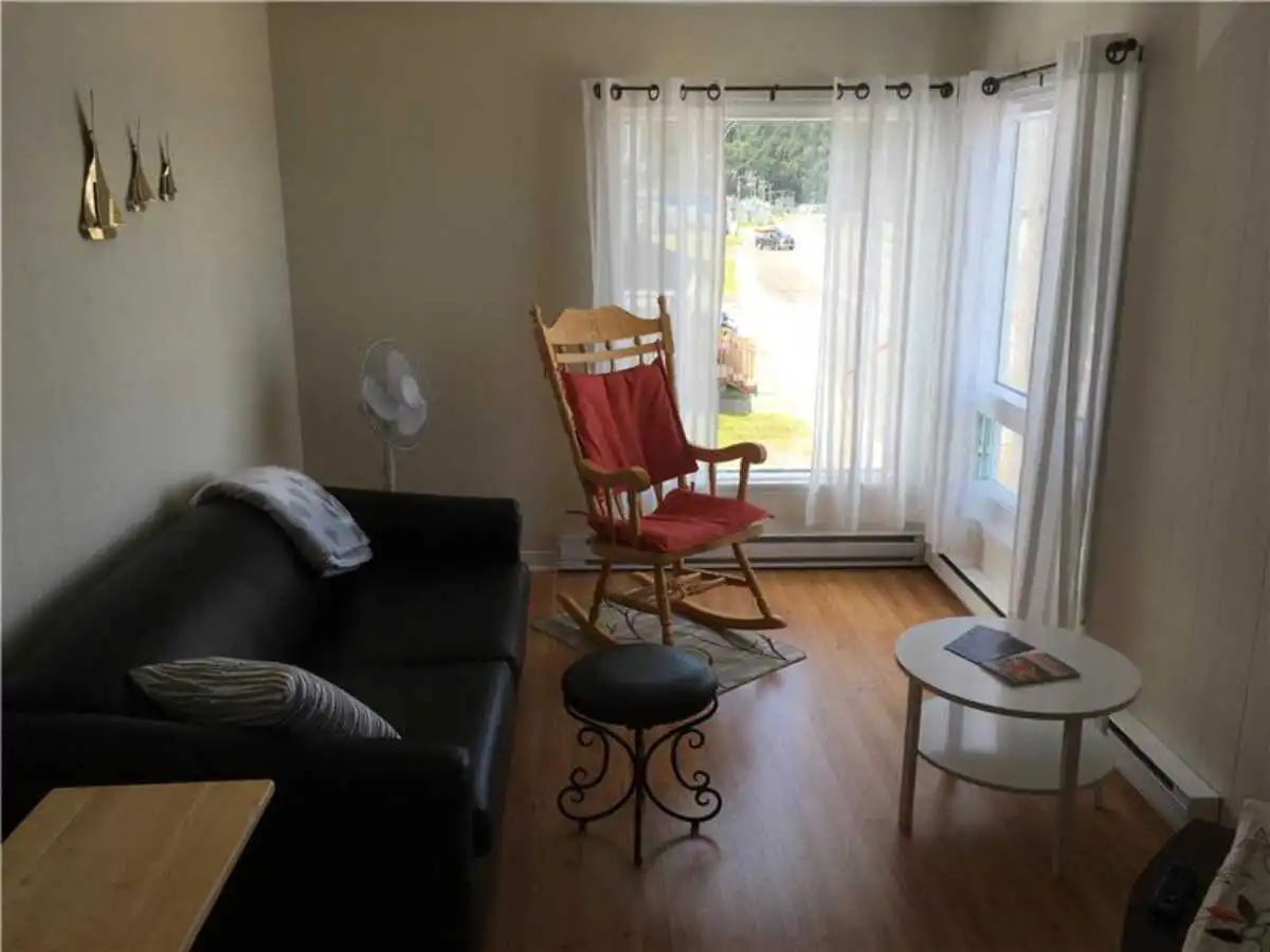 Charmant hébergement à 50 pieds de la plage, avec balcon, chaise et table pour admirer le Fleuve Saint-Laurent.