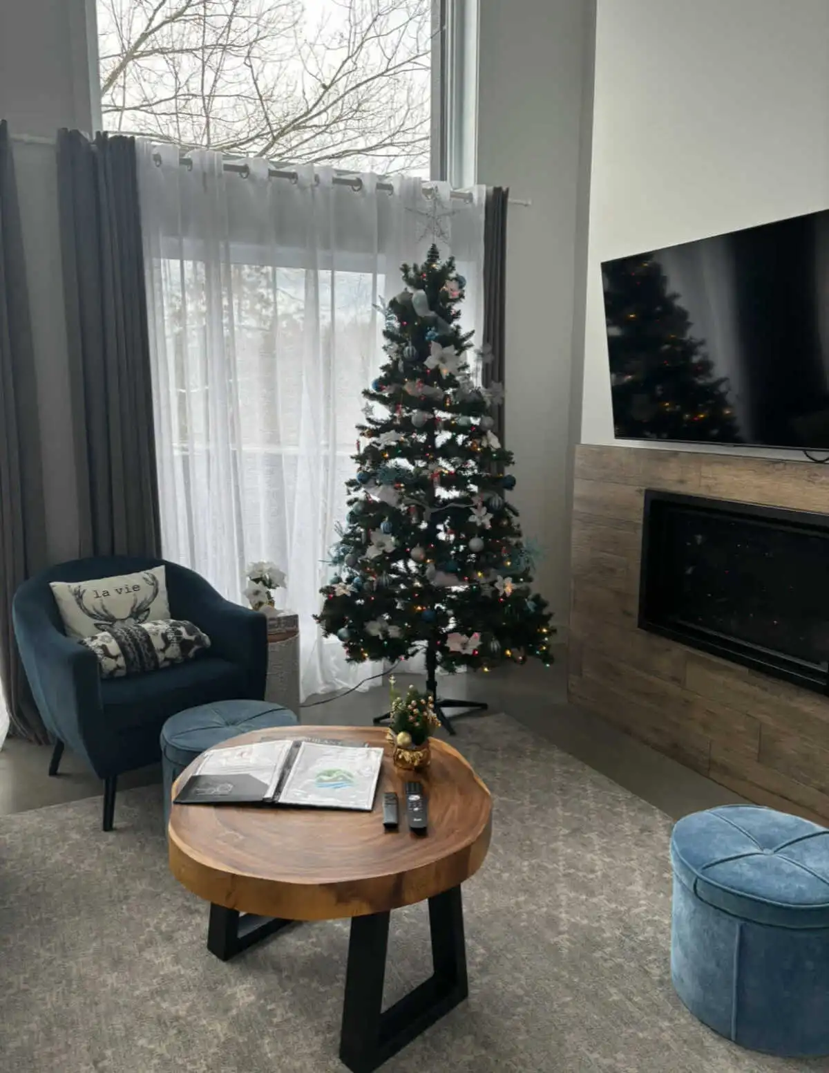 Entouré de verdure et de tranquillité, ce chalet spacieux et raffiné vous promet un séjour des plus relaxants, que ce soit en famille ou entre amis.