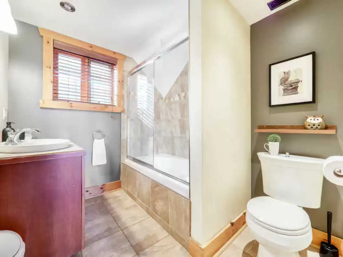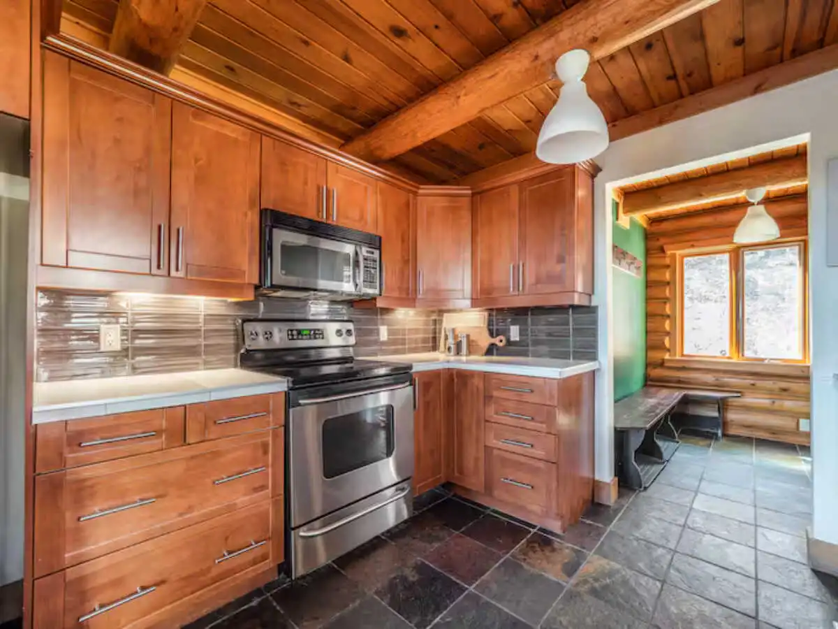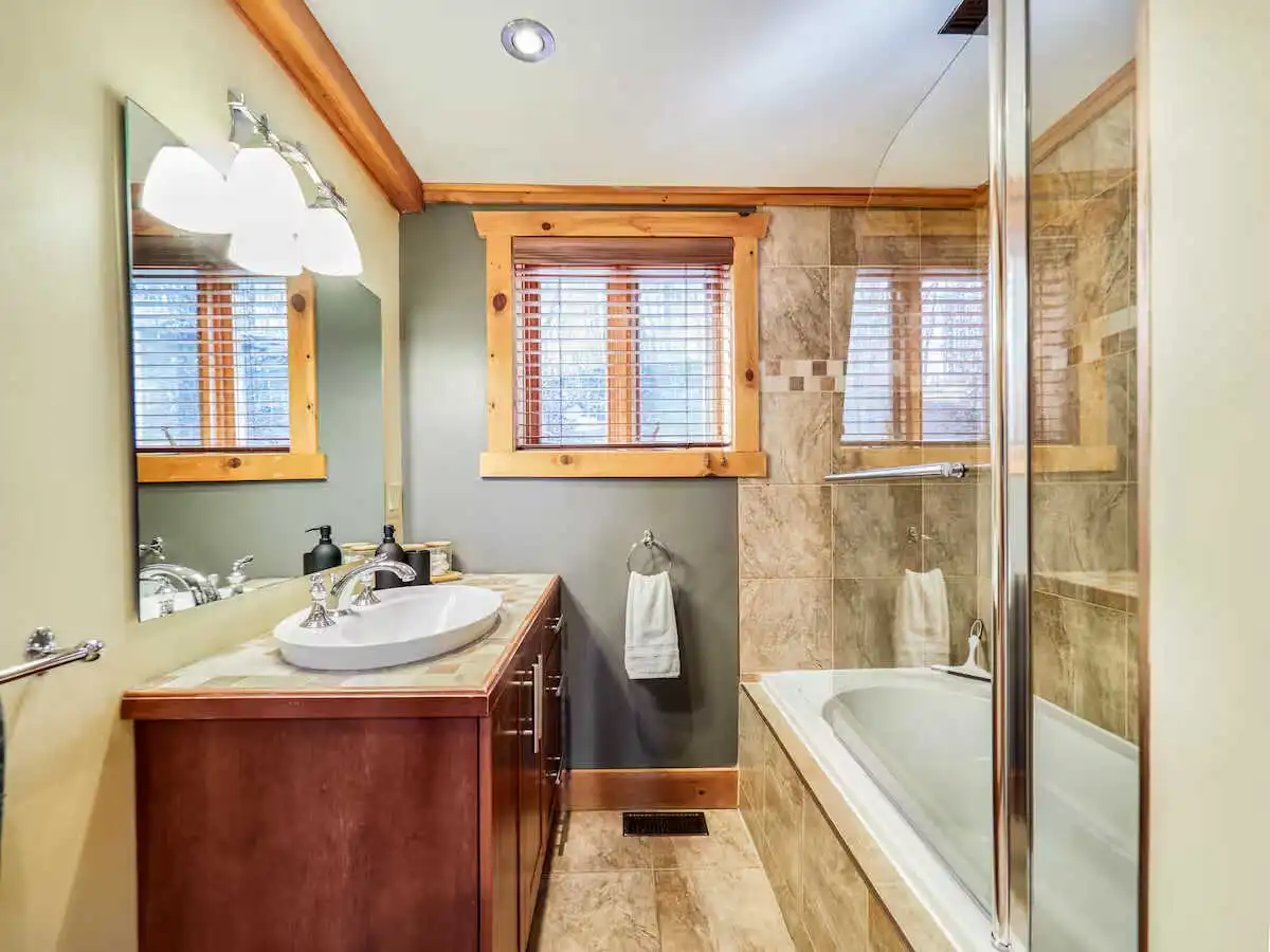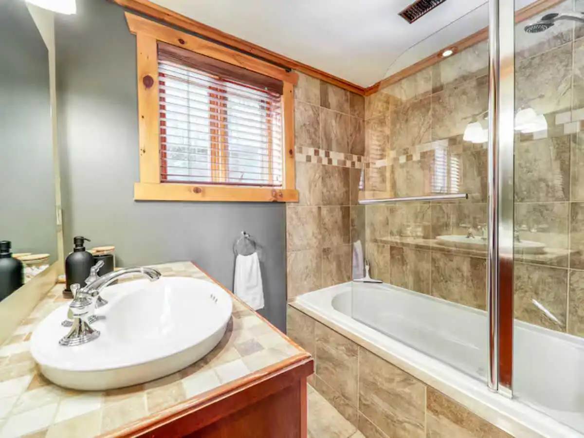 Profitez d’un spa extérieur ouvert toute l’année, d’un foyer intérieur en pierre, d’un foyer extérieur élégant, d’une terrasse massive avec barbecue et table de pique-nique, et d’une véranda avec lumières d’ambiance.