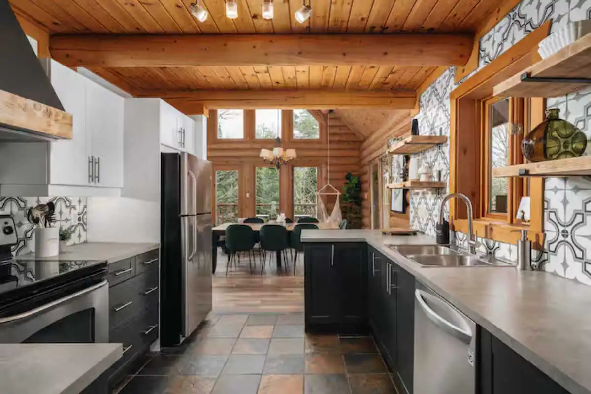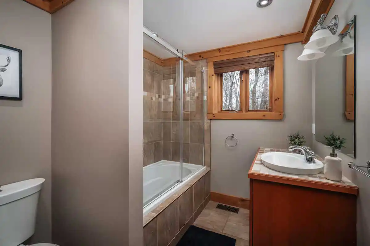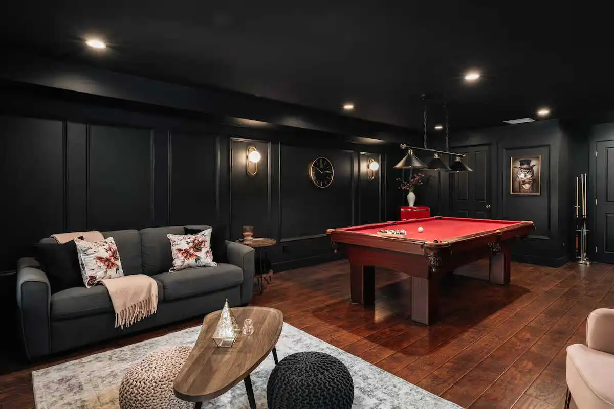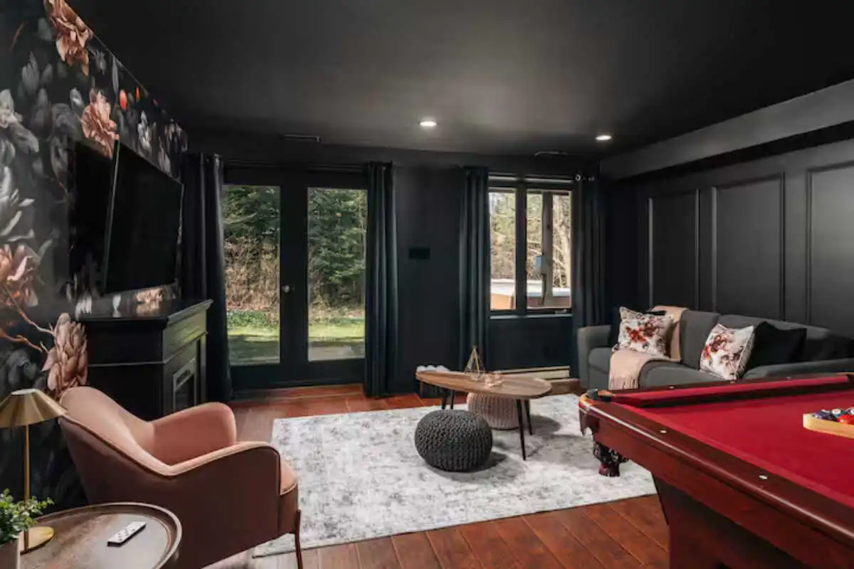 Profitez d’un spa privé, d’un foyer intérieur et extérieur, d’un sous-sol lounge avec table de billard et TV 4K, ainsi que d’un terrain boisé offrant une intimité totale.