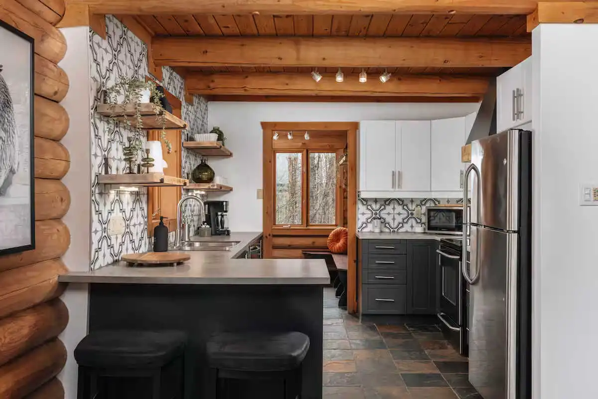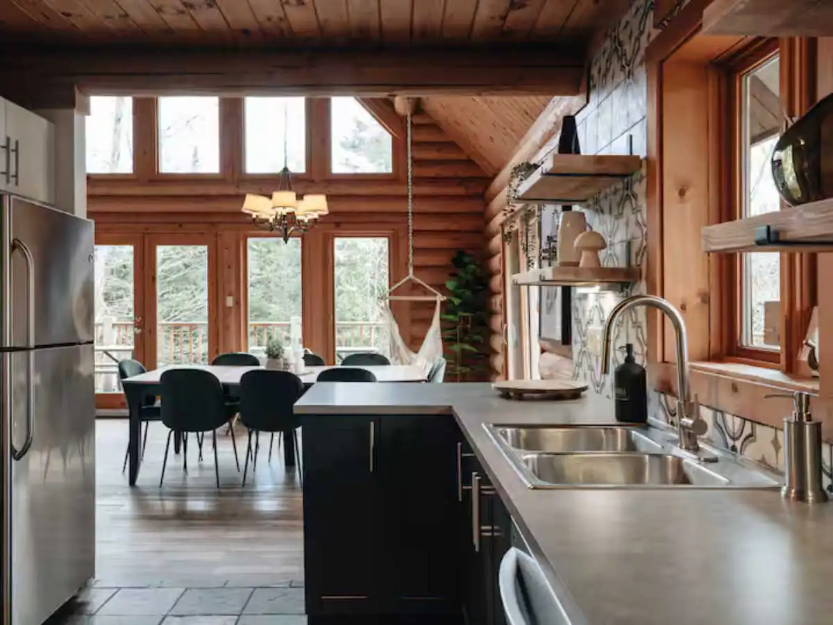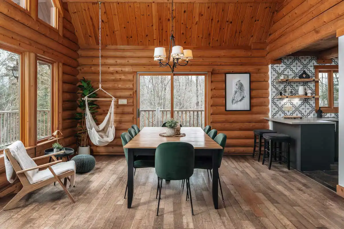 Bienvenue au Campanie Tremblant, un chalet en bois rond alliant charme rustique et design moderne, idéal pour des séjours mémorables en famille ou entre amis.