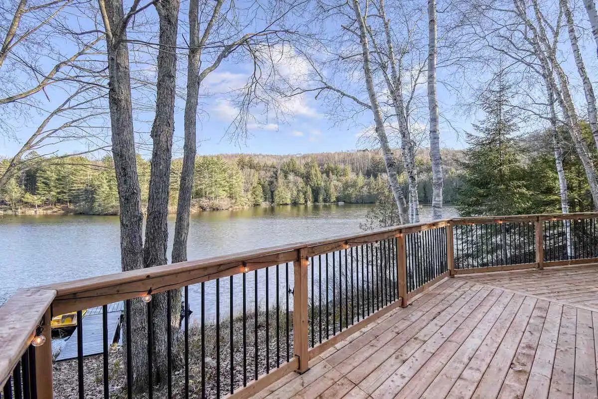 Grand balcon avec barbecue et vue imprenable sur le lac