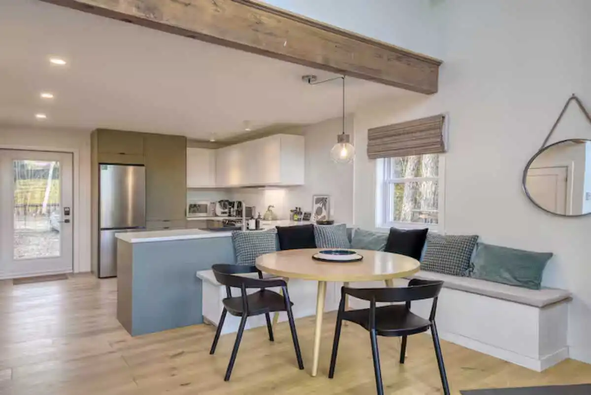 Profitez du spa 4 saisons, des foyers intérieur et extérieur, et d’une ambiance paisible au cœur des Laurentides.