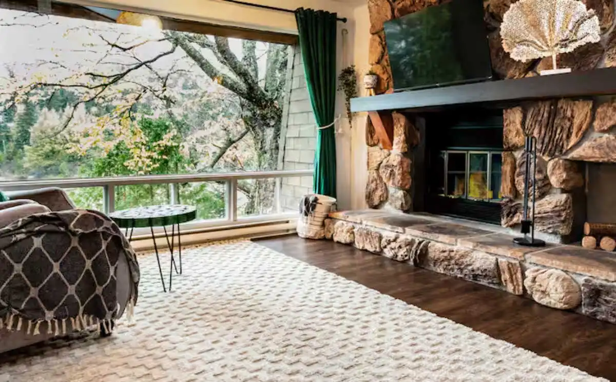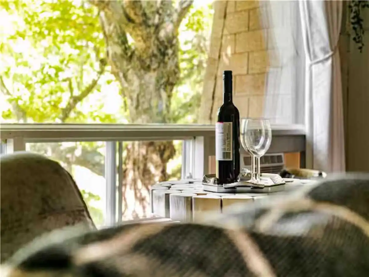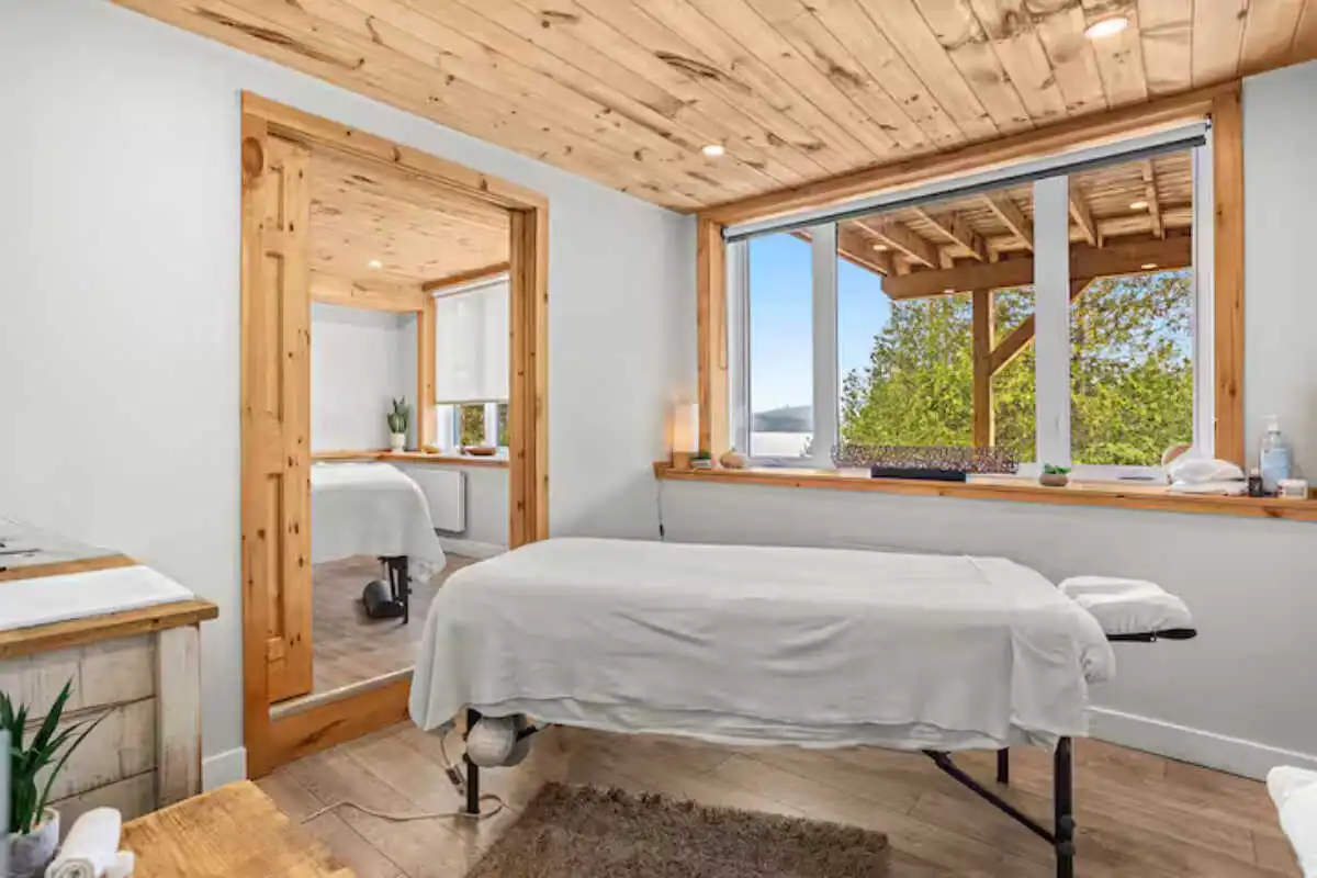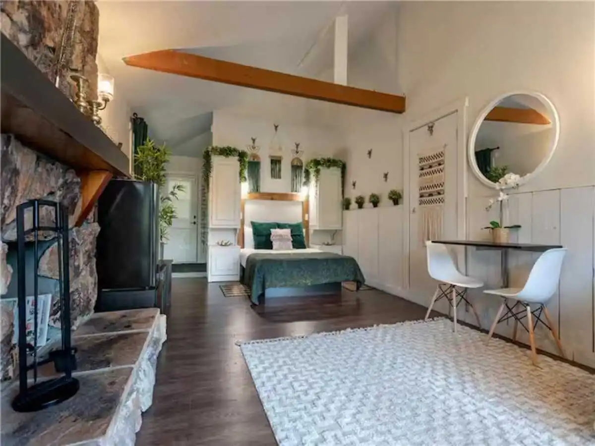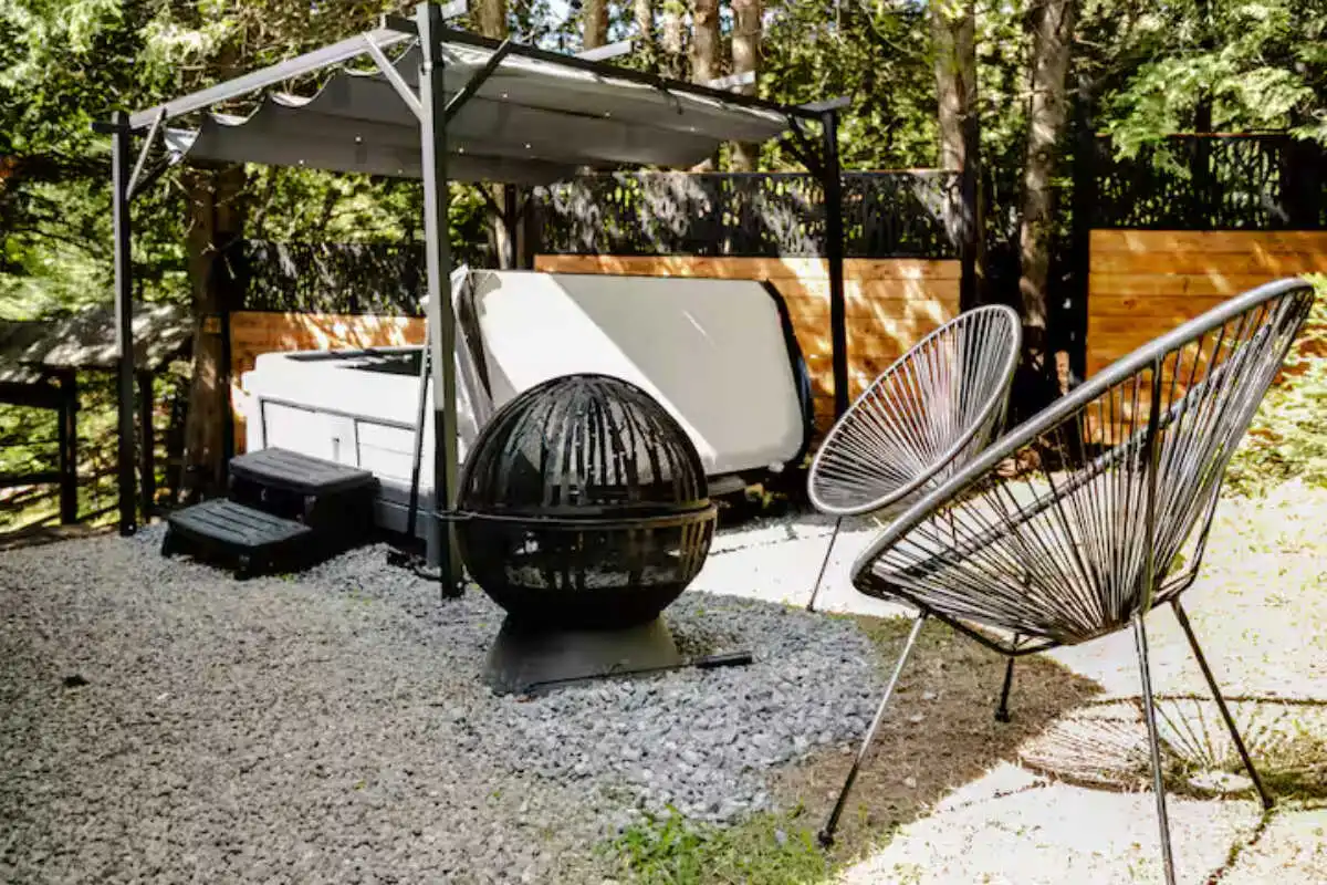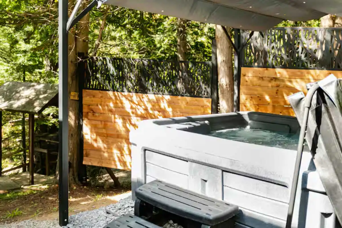 Profitez d’un spa extérieur privé, d’un foyer intérieur en pierre et d’une vue paisible sur le lac, idéal pour se détendre ou partager un moment unique à deux.