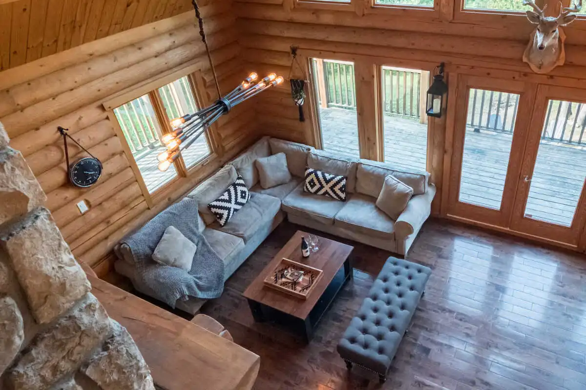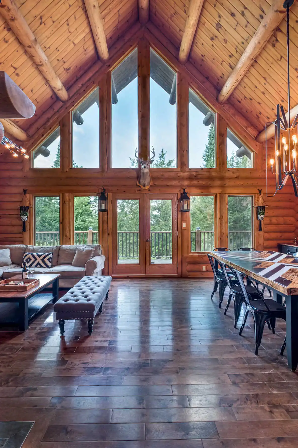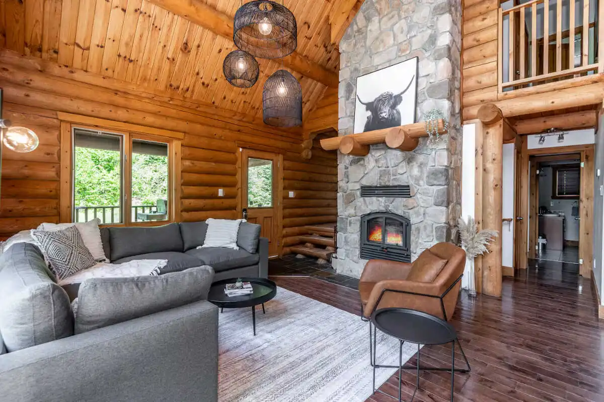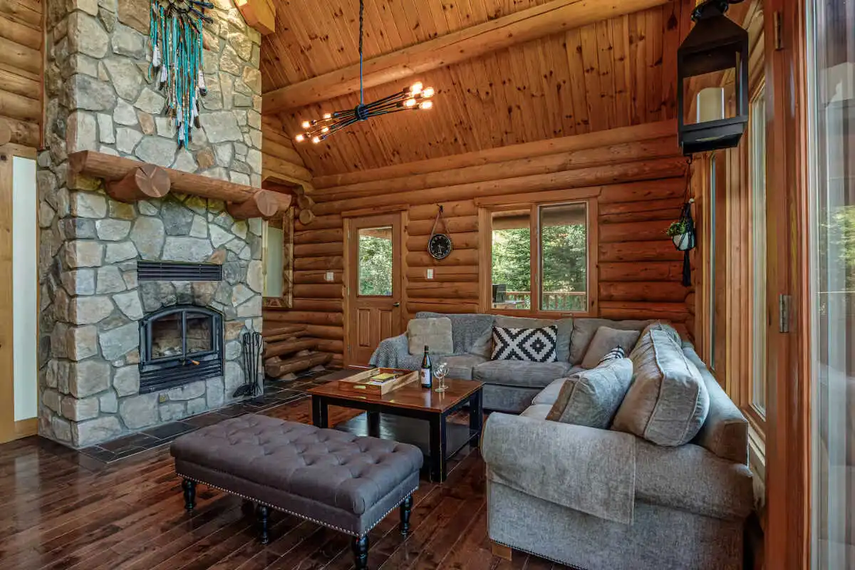 Plafonds cathédrale de 21 pieds et cheminées en pierre