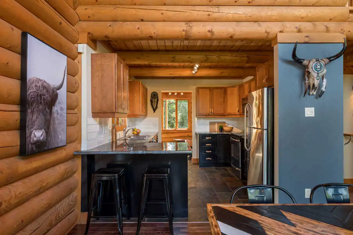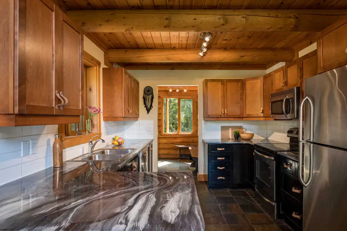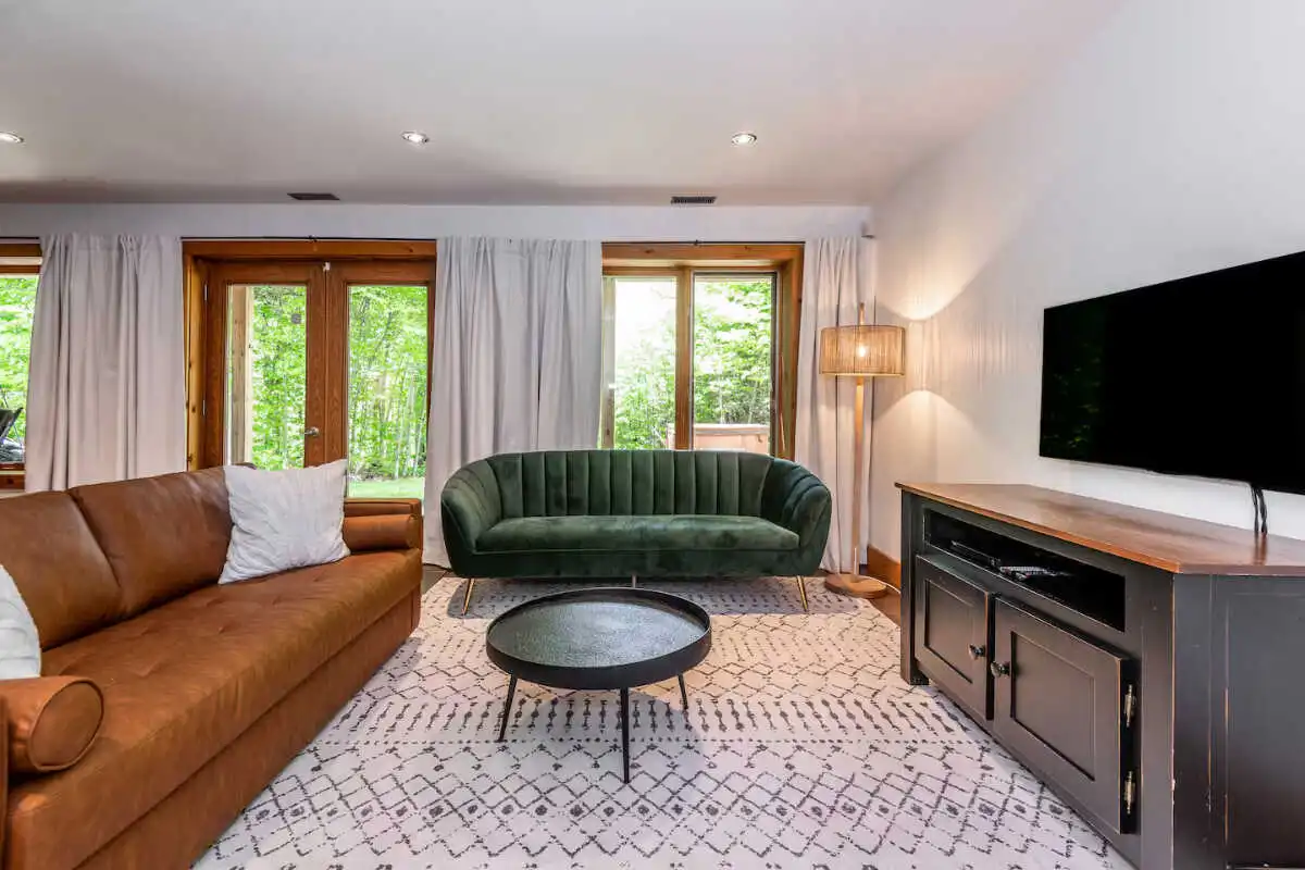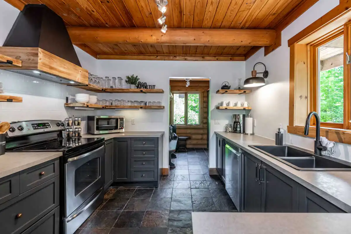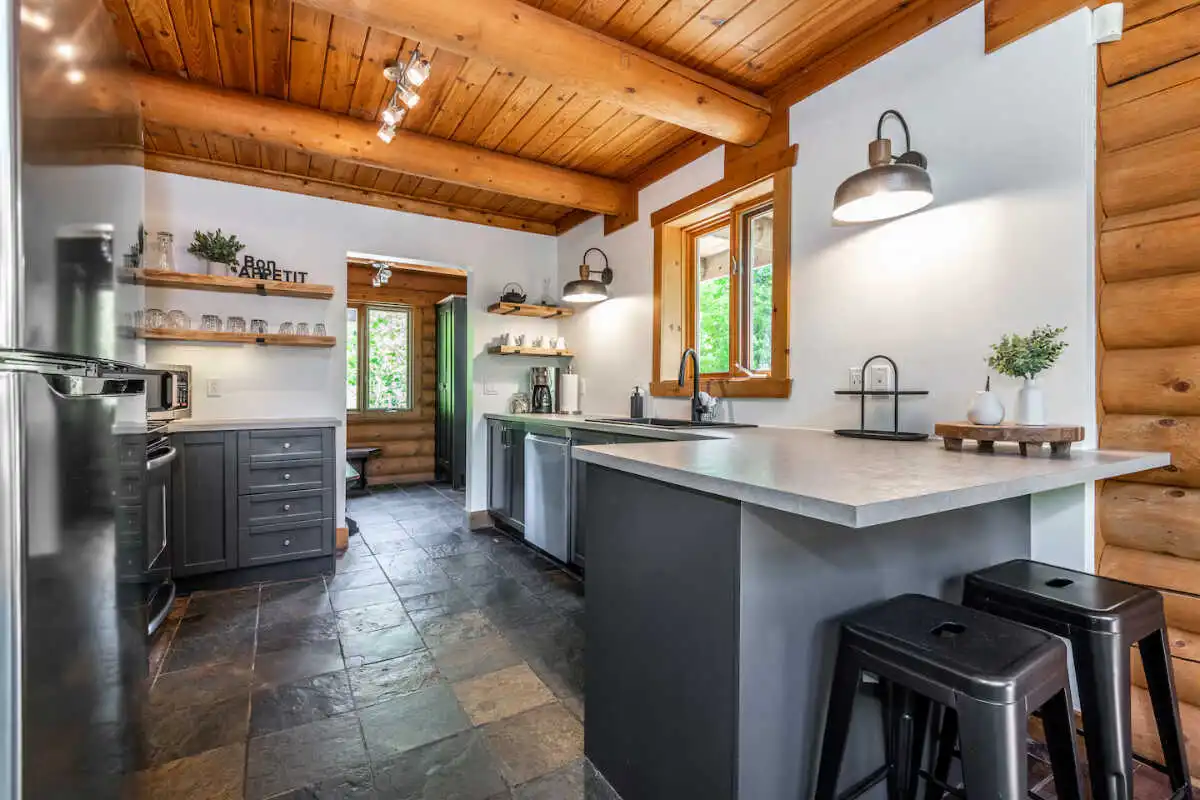 Plafonds cathédrale de 21 pieds et cheminées en pierre