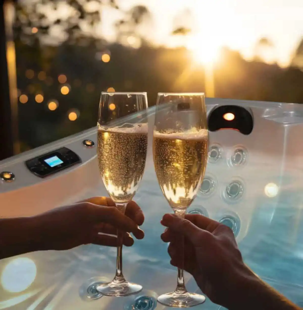 Eau du spa : légère teinte verdâtre due au fer, nettoyée et préparée pour chaque client