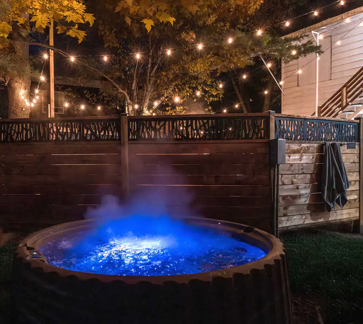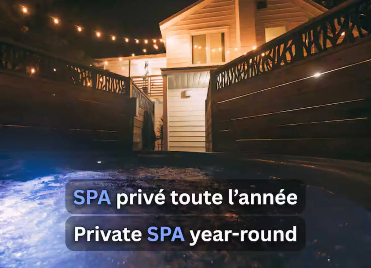 Profitez d’un spa extérieur privé ouvert à l’année, d’un foyer extérieur sous les étoiles et d’un barbecue pour vos soirées à deux.