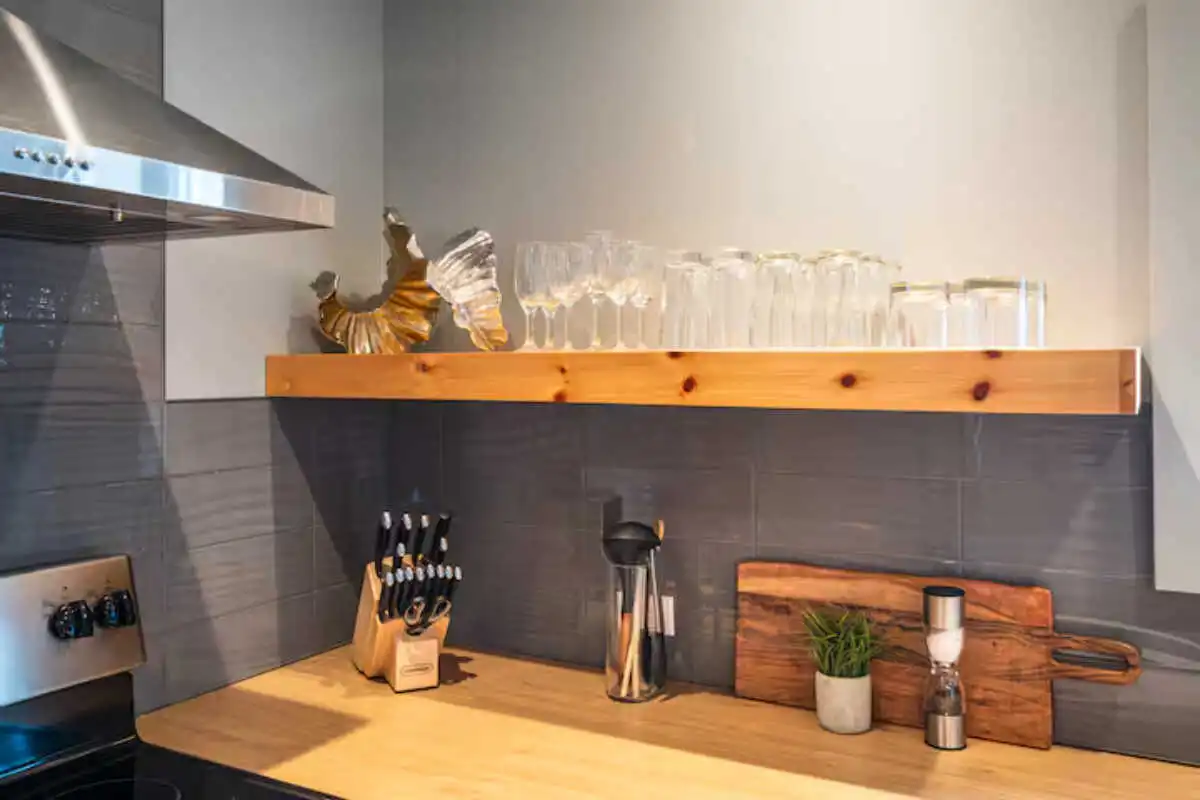 Cuisine complète, salon chaleureux et salle de bain moderne