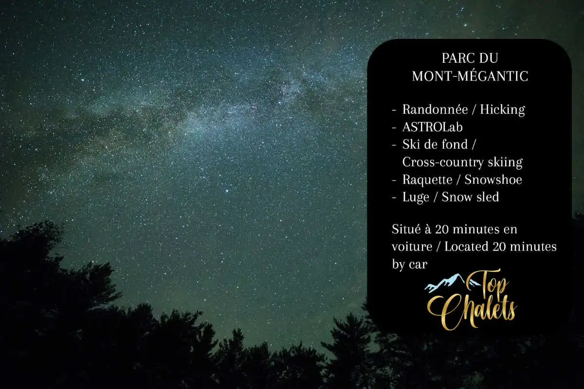 Les clients séjournant au Chalet Le Raton Laveur bénéficient d'un rabais de 15 % sur les activités estivales et automnales régulières du Mont-Mégantic.