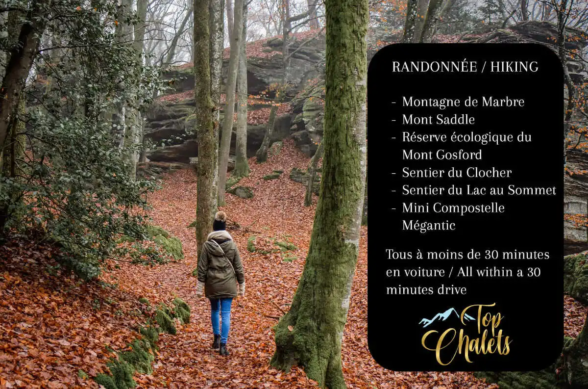 Les passionnés d'histoire apprécieront la Mini-Compostelle Mégantic (11 min), un sentier inspiré du pèlerinage de Saint-Jacques-de-Compostelle.