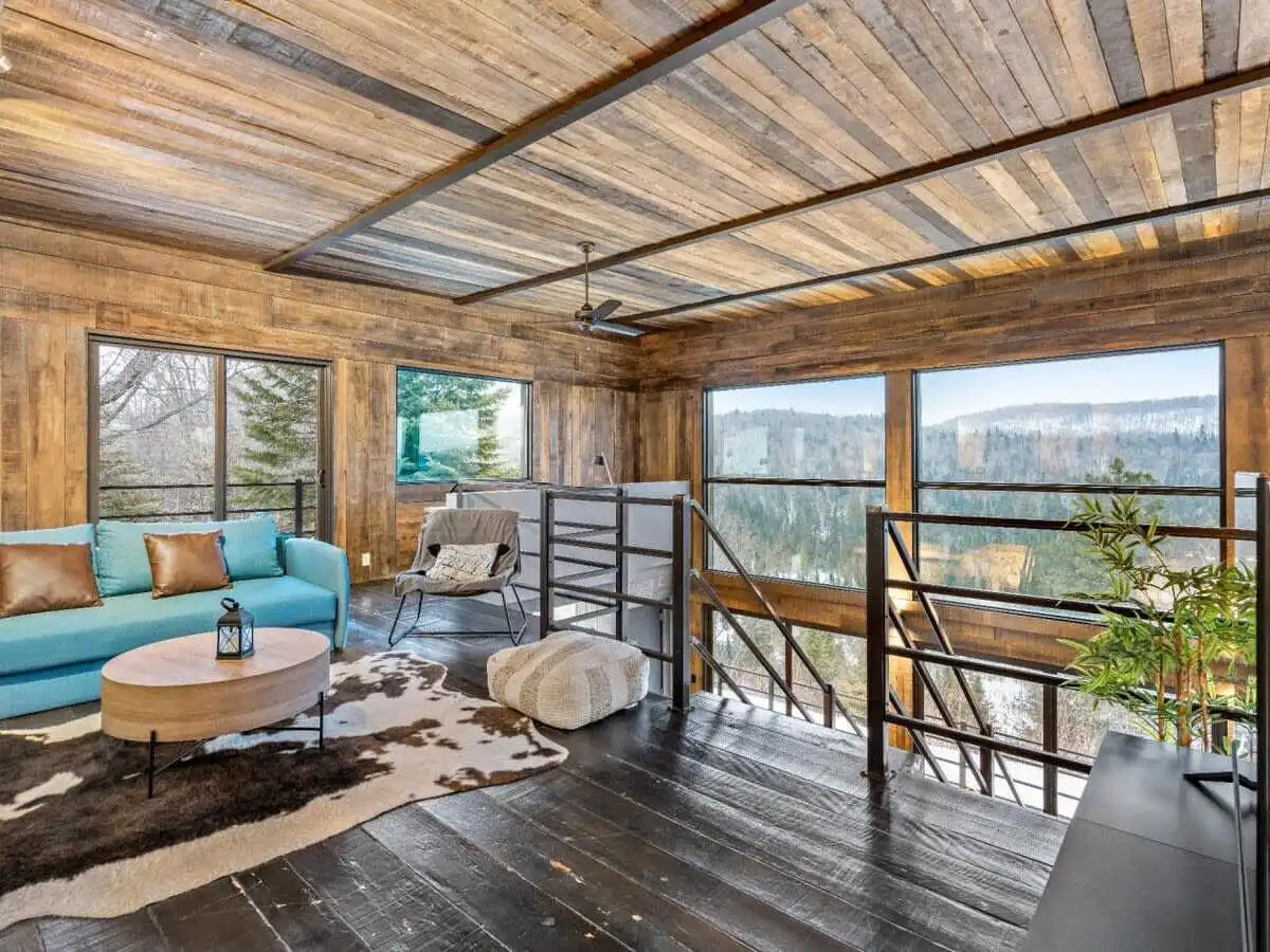 Découvrez ce havre de paix unique, niché au cœur d’un domaine de 100 acres, sans voisins à proximité, offrant des vues imprenables sur les montagnes des Laurentides. À seulement 1 heure de Montréal, ce chalet moderne est l’endroit idéal pour une escapade tranquille. Profitez de la nature avec des sentiers de ski de fond, de raquette et de randonnée à proximité, ainsi qu’un spa privé pour une détente totale. Avec ses 4 chambres pouvant accueillir jusqu’à 10 personnes, une... Lire la suite