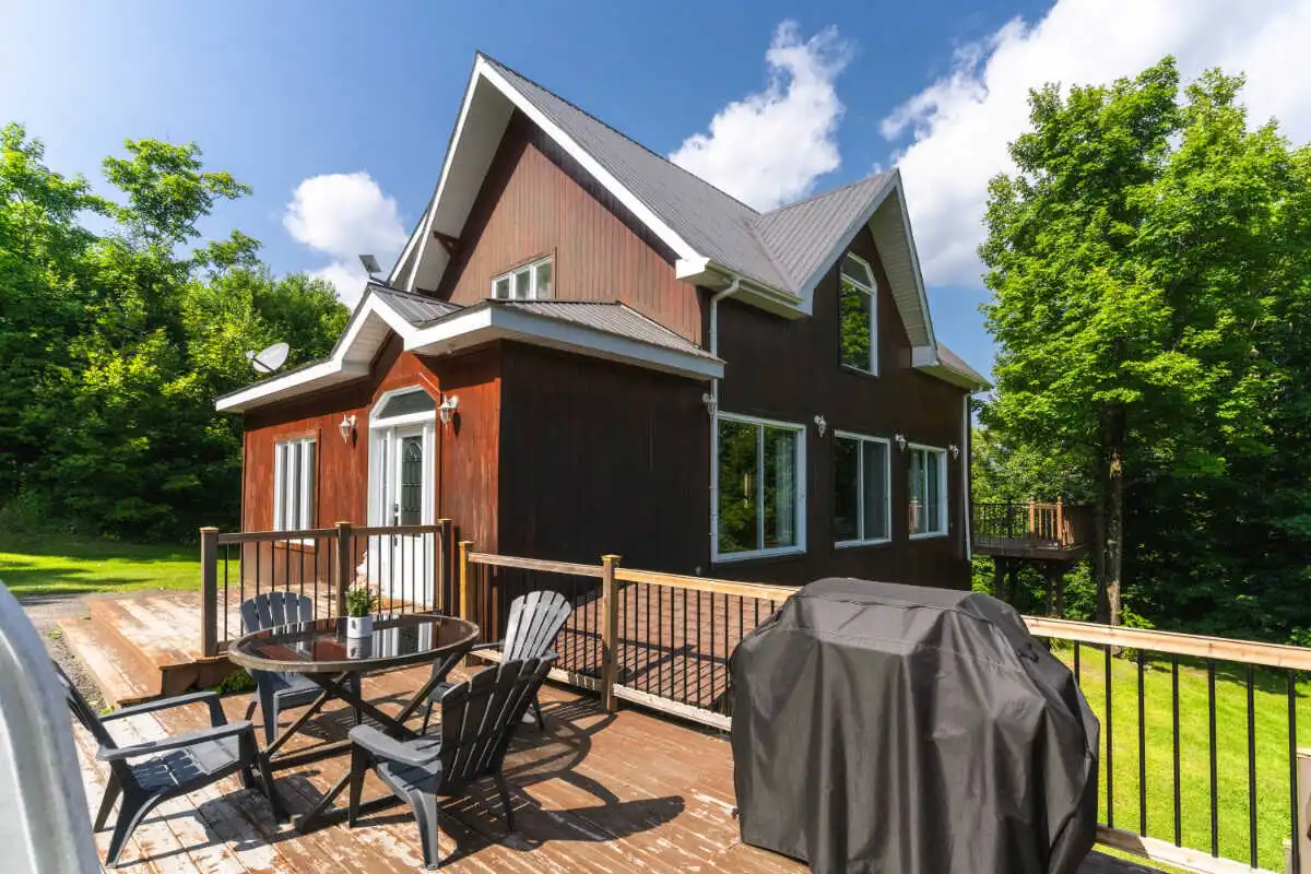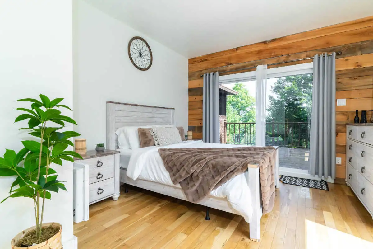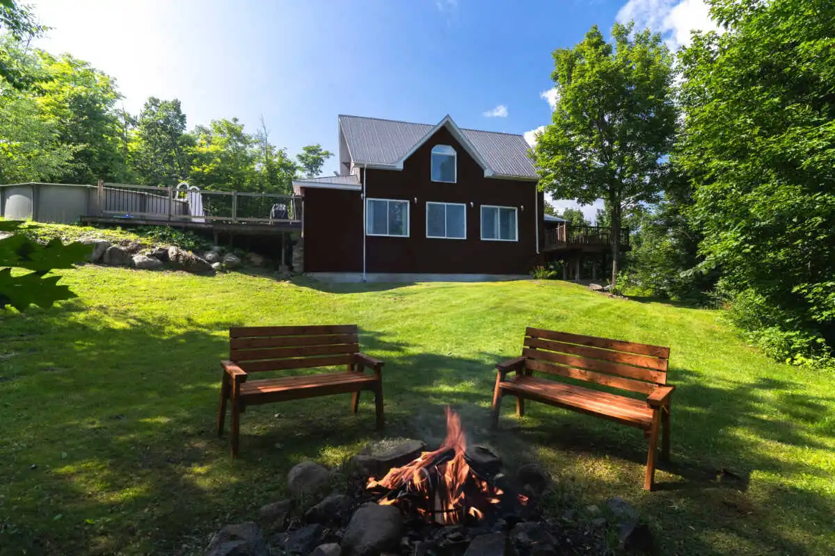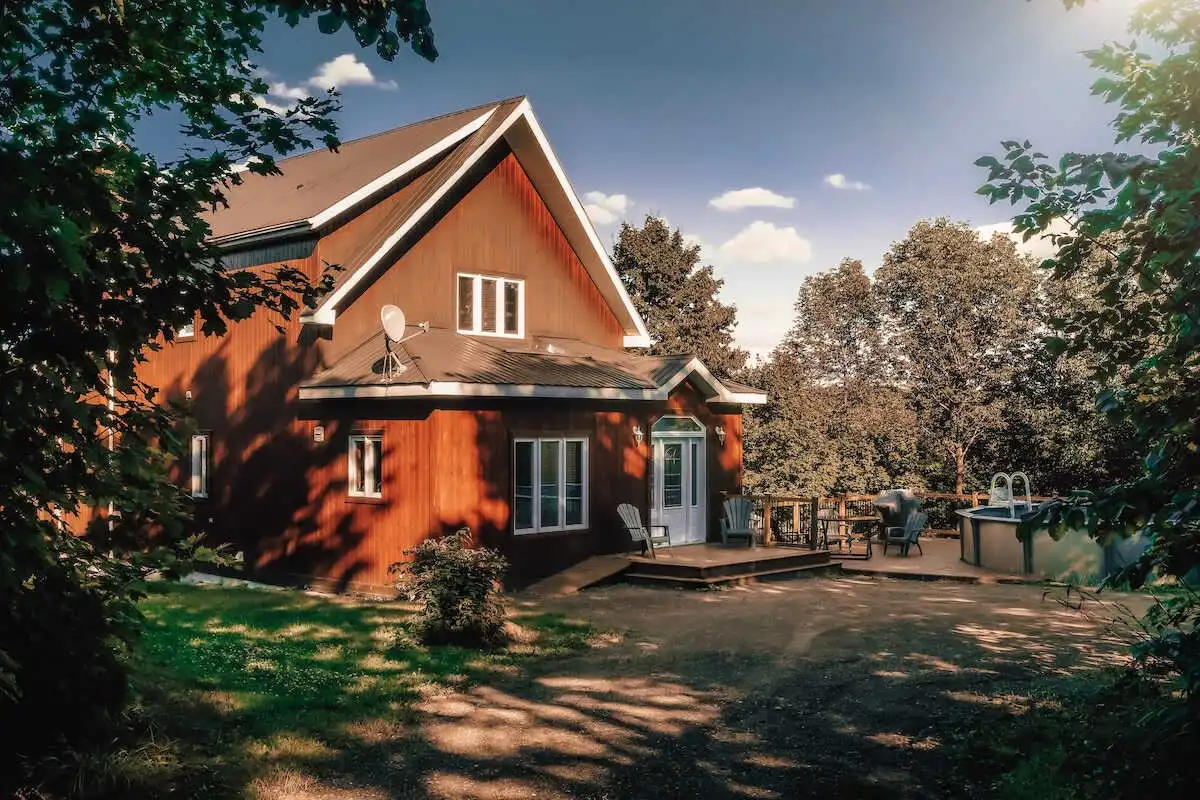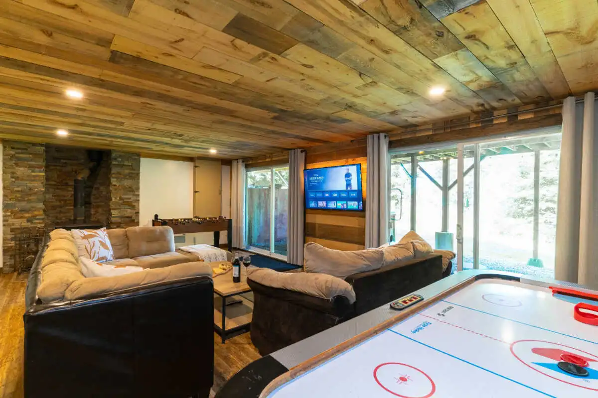 Oubliez vos soucis dans cet espace spacieux et serein. Profitez de votre séjour dans ce magnifique et paisible chalet, qui offre également un spa extérieur privé et une piscine, un BBQ, un foyer extérieur, ainsi qu’une chambre avec lits superposés et un salon avec une table de hockey sur air.