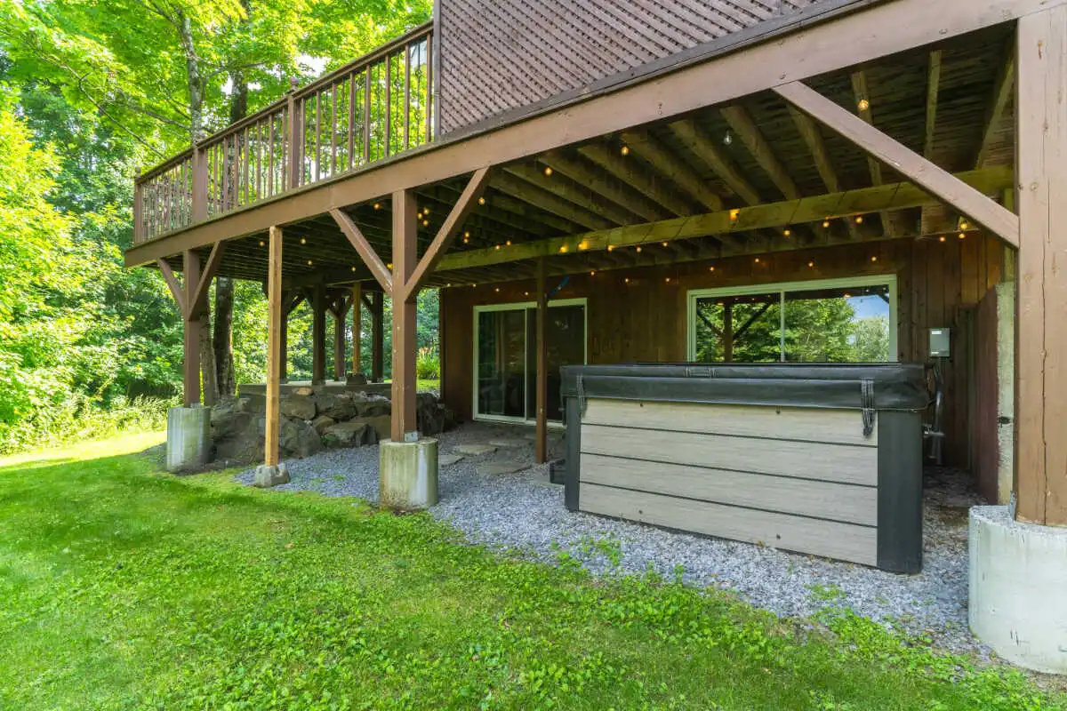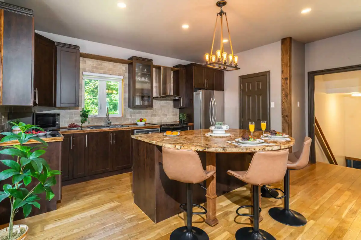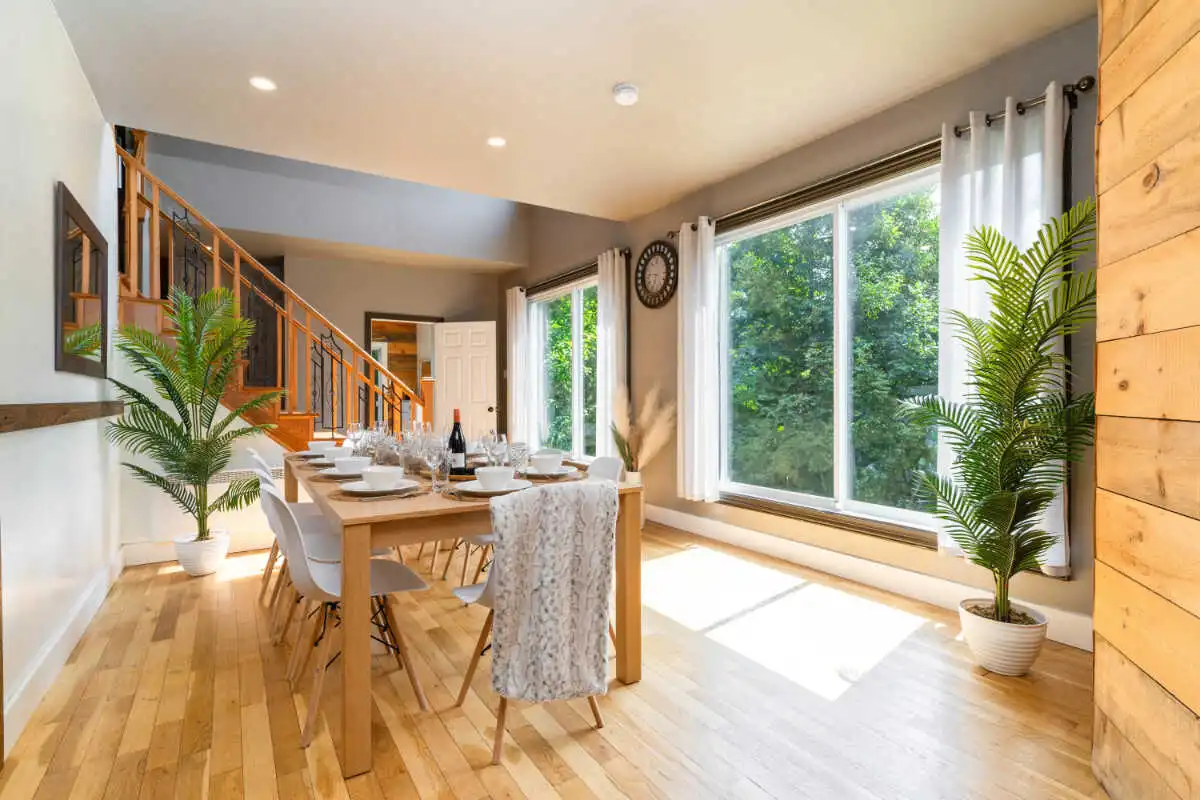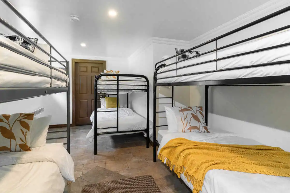 Oubliez vos soucis dans cet espace spacieux et serein. Profitez de votre séjour dans ce magnifique et paisible chalet, qui offre également un spa extérieur privé et une piscine, un BBQ, un foyer extérieur, ainsi qu’une chambre avec lits superposés et un salon avec une table de hockey sur air.