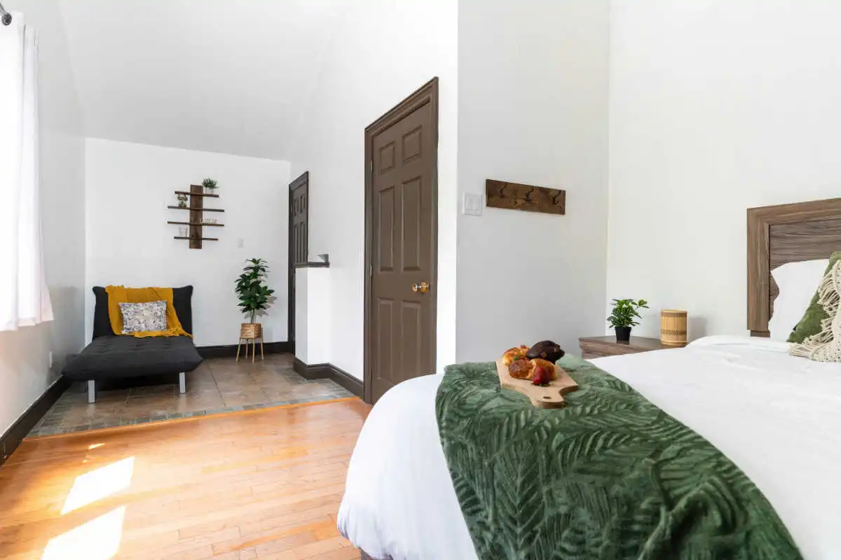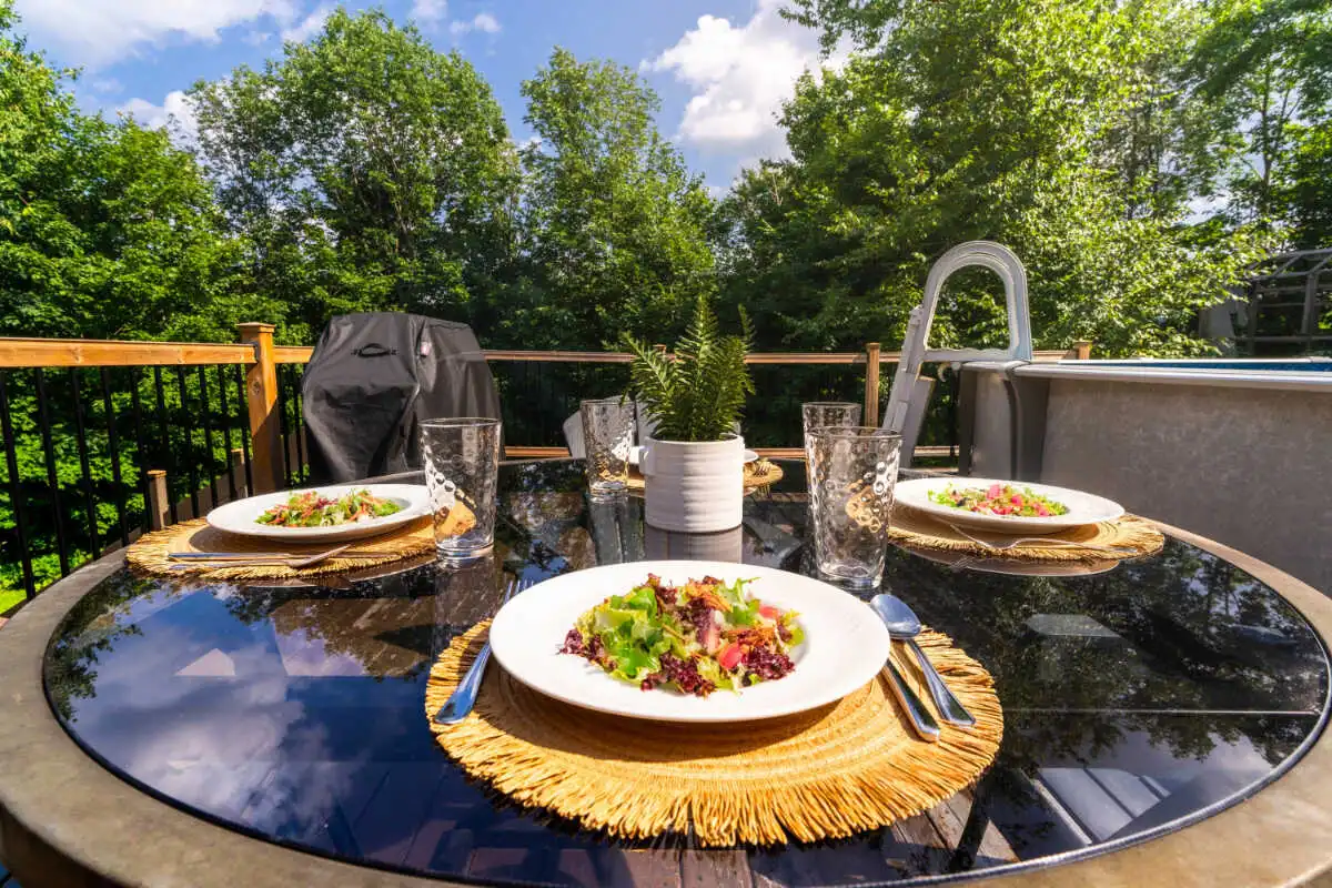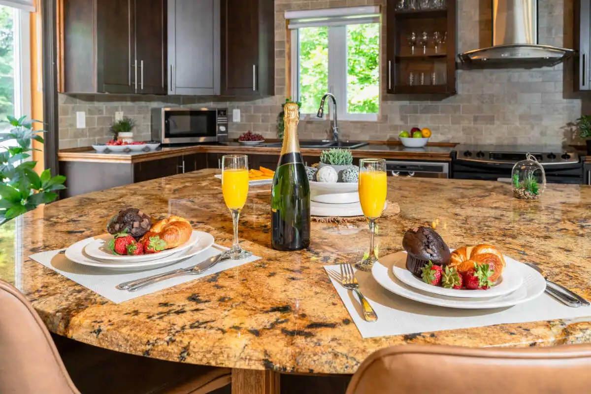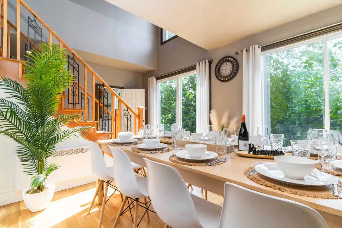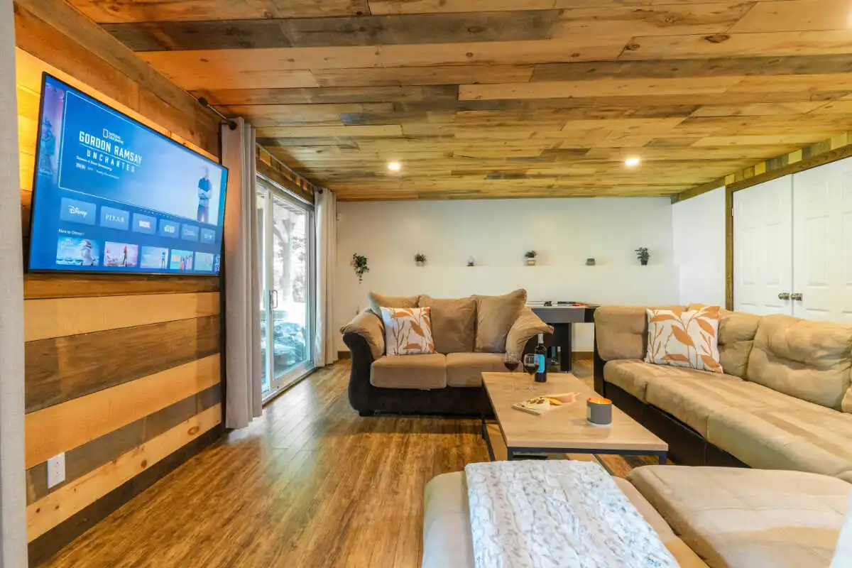 Oubliez vos soucis dans cet espace spacieux et serein. Profitez de votre séjour dans ce magnifique et paisible chalet, qui offre également un spa extérieur privé et une piscine, un BBQ, un foyer extérieur, ainsi qu’une chambre avec lits superposés et un salon avec une table de hockey sur air.